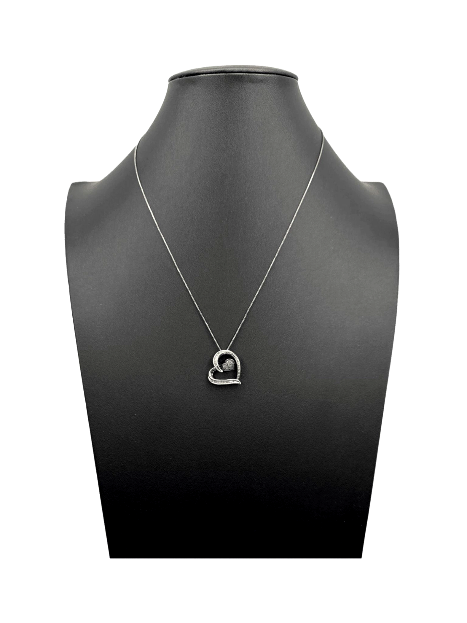 This elegant pre-owned necklace features a delicate silver chain holding a beautiful heart-shaped pendant. Crafted from sterling silver, the pendant is adorned with shimmering accents, adding a touch of sparkle and sophistication to any outfit. Perfect for women, this necklace is a timeless piece that can be worn for both everyday occasions and special events. Its subtle design makes it a versatile addition to your jewelry collection, offering a touch of love and style.