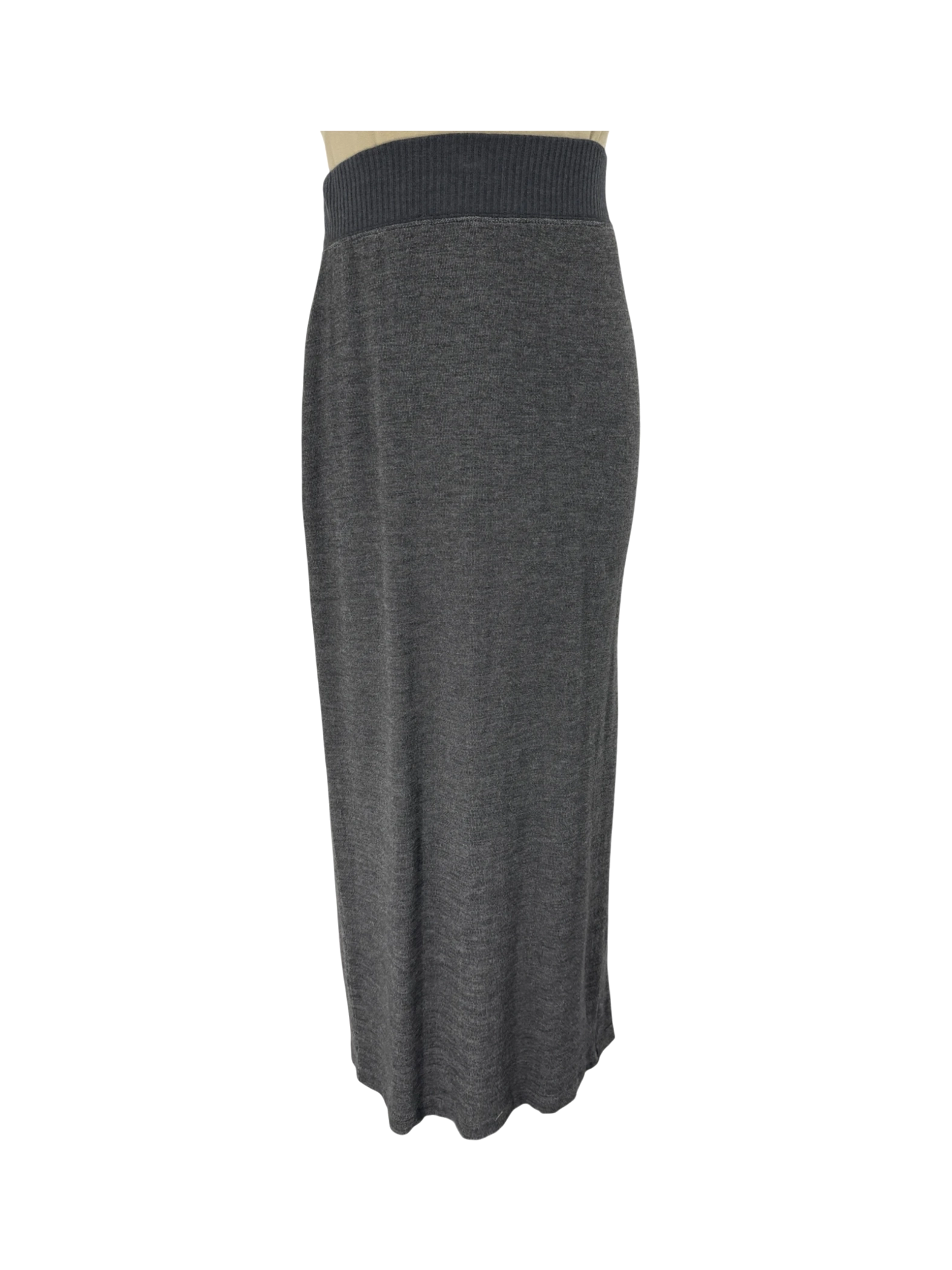 Elevate your wardrobe with this pre-owned Elie Tahari skirt. Crafted from a luxurious blend of viscose, cotton, and spandex, this midi skirt offers both comfort and style. Its classic pencil silhouette and neutral gray hue make it a versatile piece, perfect for dressing up or down. Ideal for the fall and winter seasons, this skirt exudes sophistication and timeless elegance. A sustainable addition to your closet.