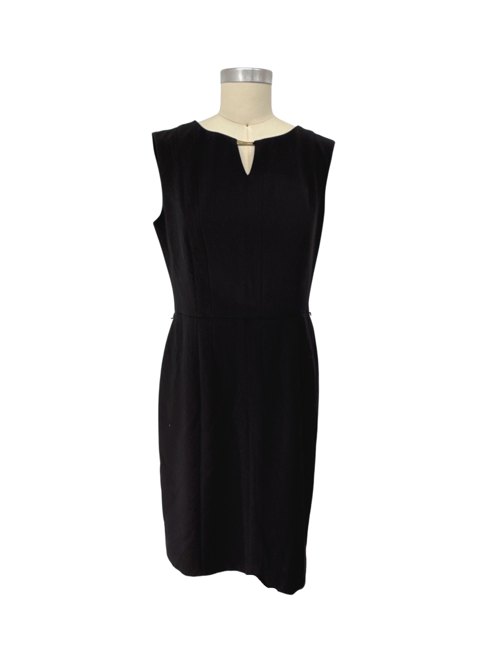 Elevate your wardrobe with this elegant pre-owned Ellen Tracy sheath dress. This sophisticated black dress features a flattering silhouette, perfect for formal events or adding a touch of chic to your everyday style. The sleeveless design and keyhole neckline offer a modern twist, while the midi skirt length provides a polished look. Crafted from a high-quality polyester blend, this dress ensures both comfort and durability. Perfect for fall and winter seasons. A timeless addition to any collection.