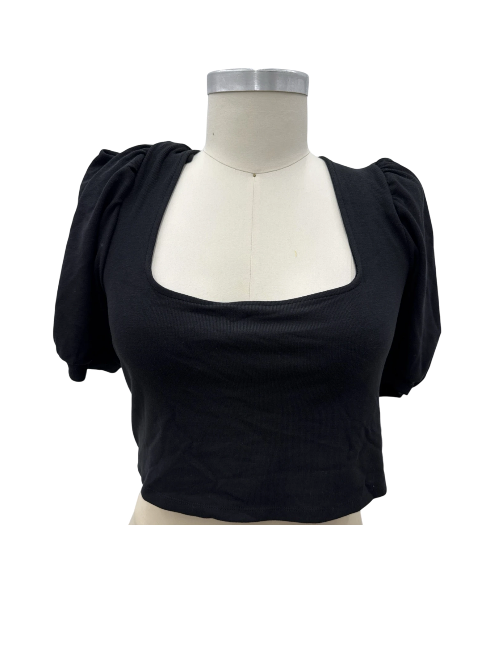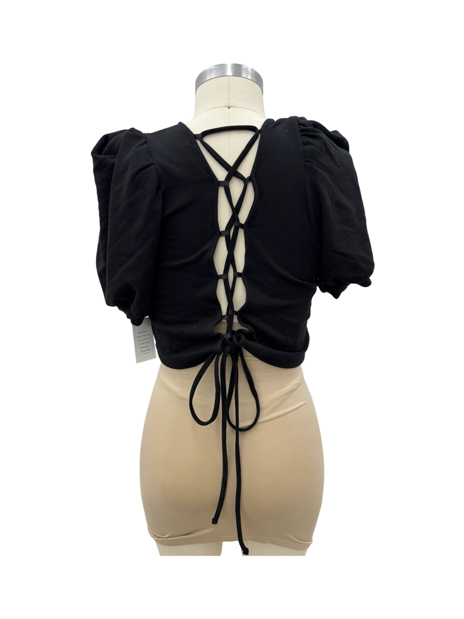 Elevate your wardrobe with this stylish and chic Eloquii top. This pre-owned black top features a flattering square neckline, puff sleeves, and a unique lace-up back design. Perfect for a casual day out or a night on the town, this top is crafted from a soft and comfortable blend of rayon, nylon, and spandex. Ideal for Fall and Summer seasons, pair this top with high-waisted jeans or a skirt for a trendy and confident look. Great preowned condition, ready to add a touch of elegance to any outfit.