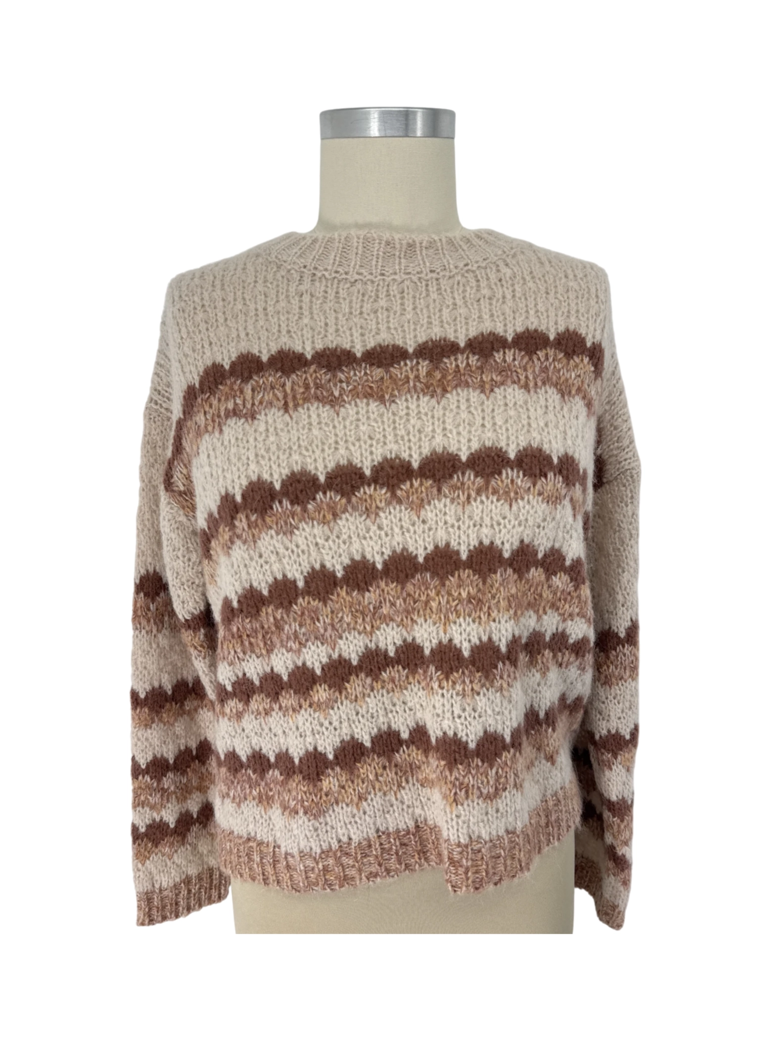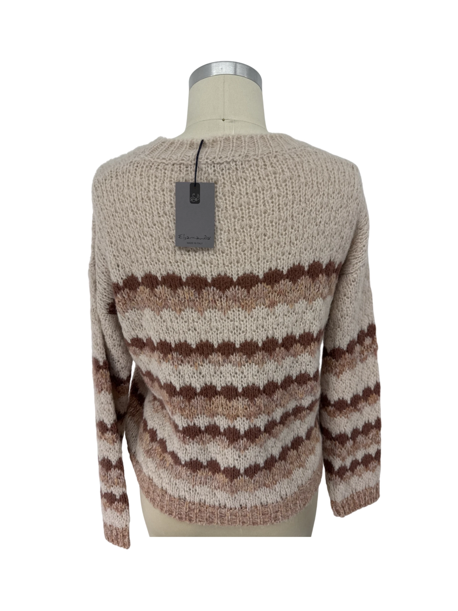 This pre-owned Elsamanda sweater is a cozy addition to any wardrobe. Crafted with a blend of soft materials, this sweater offers a comfortable and stylish look. The horizontal stripes in varying shades of brown and beige create a visually appealing design. Perfect for cooler weather, this sweater can be easily paired with jeans or leggings for a casual yet chic outfit. Experience the quality and style of Elsamanda in this pre-loved find.