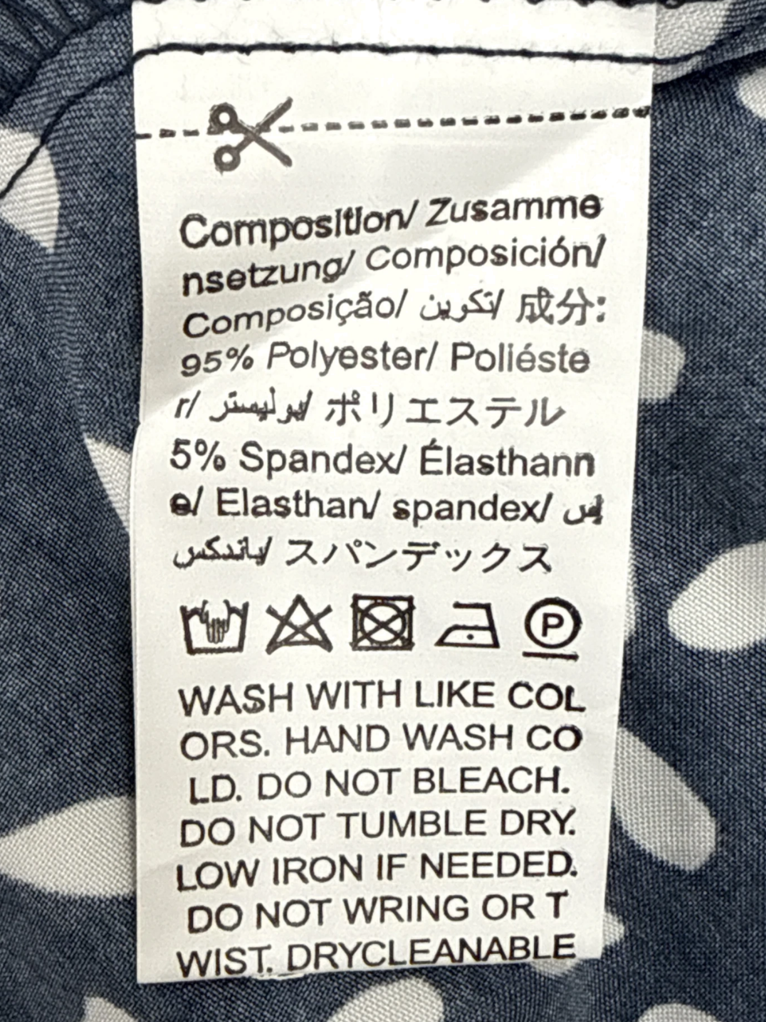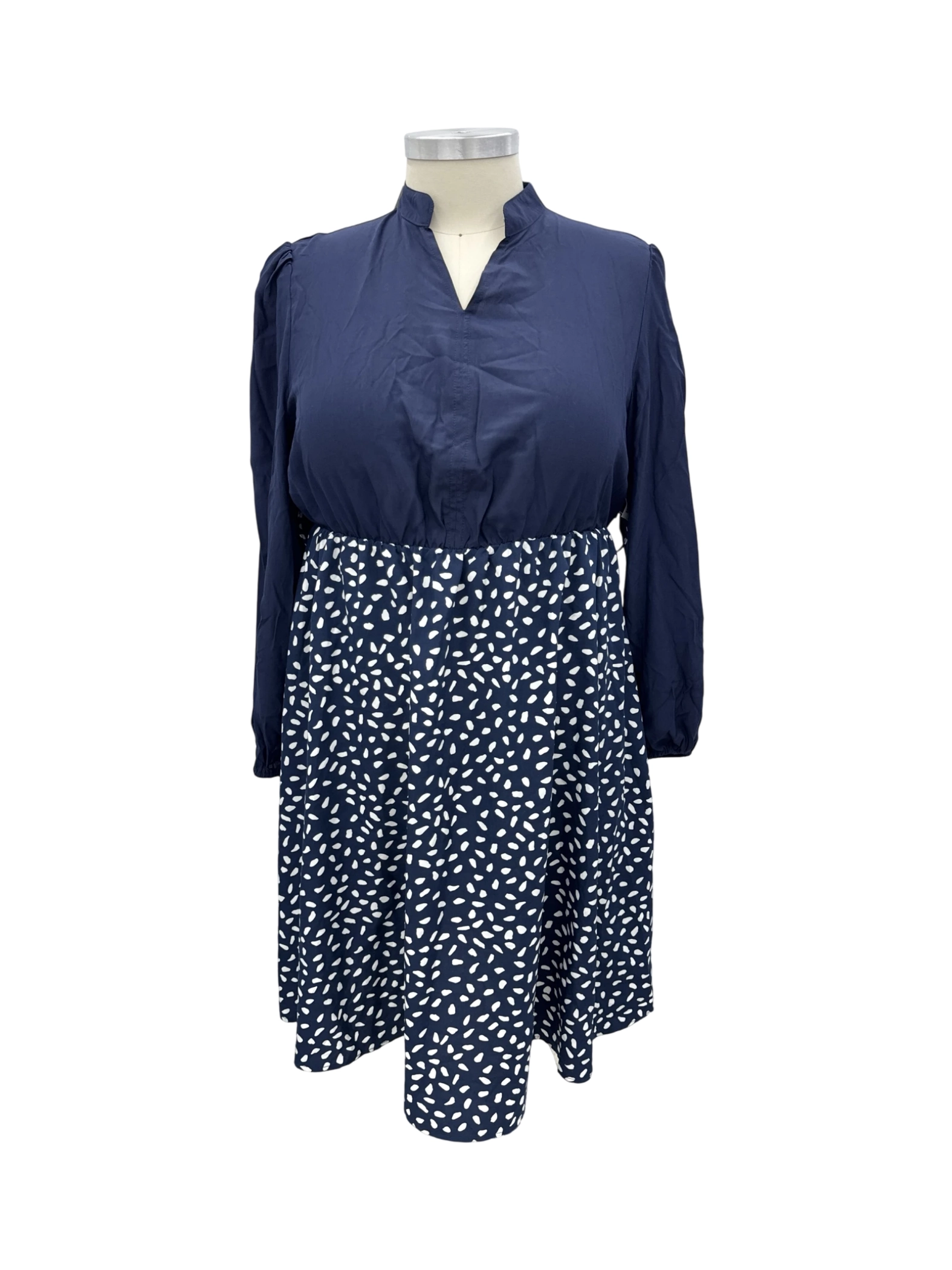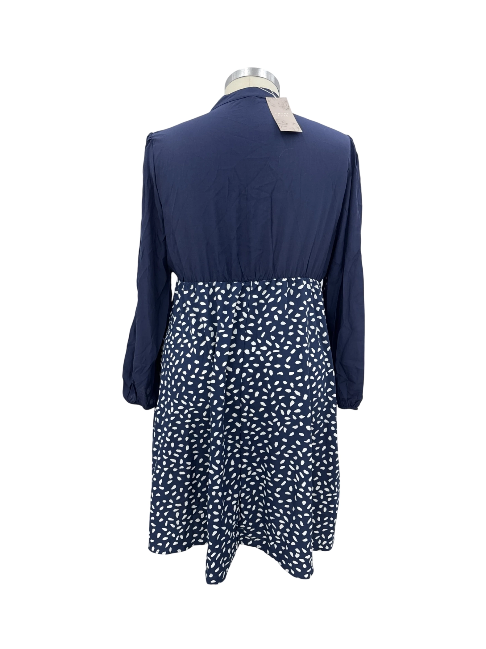 This EMERY ROSE A-line dress is a stylish addition to any wardrobe. The navy blue dress features a fun white dot print and a comfortable, relaxed fit. Perfect for fall, this dress offers a flattering silhouette and a touch of effortless style. Made from a blend of polyester and spandex, it's easy to care for and perfect for everyday wear. This pre-owned dress is in excellent condition and ready to wear.