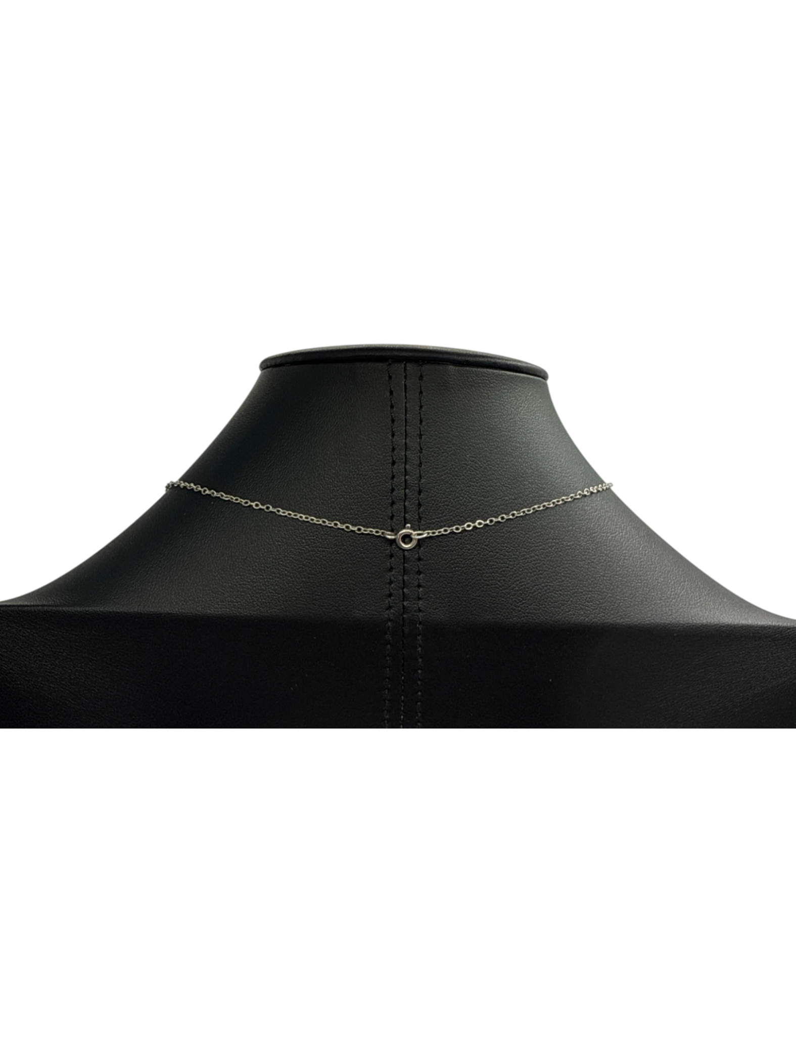 A necklace featuring entwined rings made of sterling silver with a length of 17 inches.