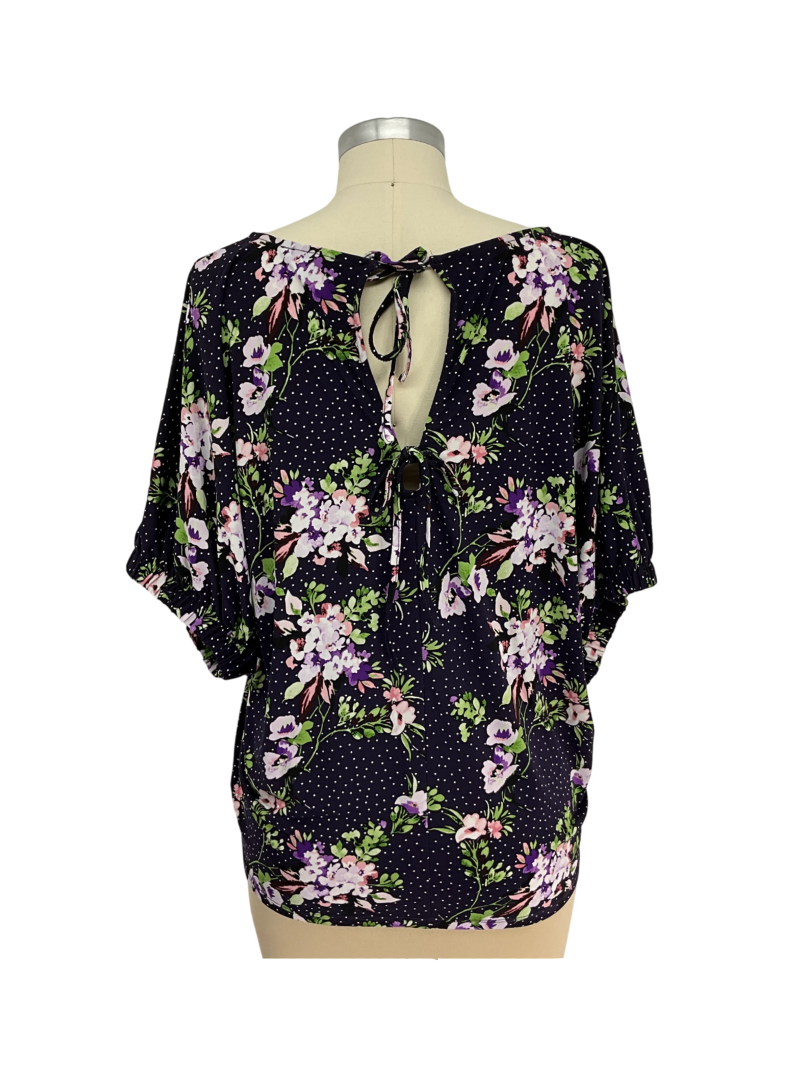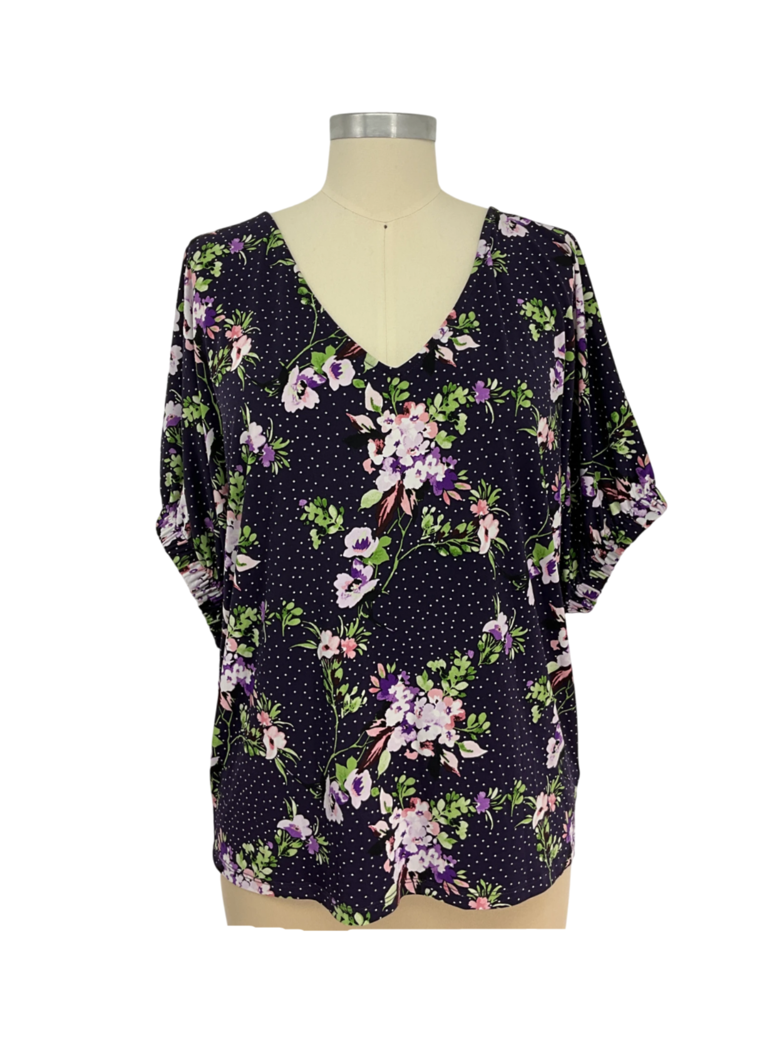 Express Asymmetrical Black Floral V-Neck Tunic Blouse Womens Size M.