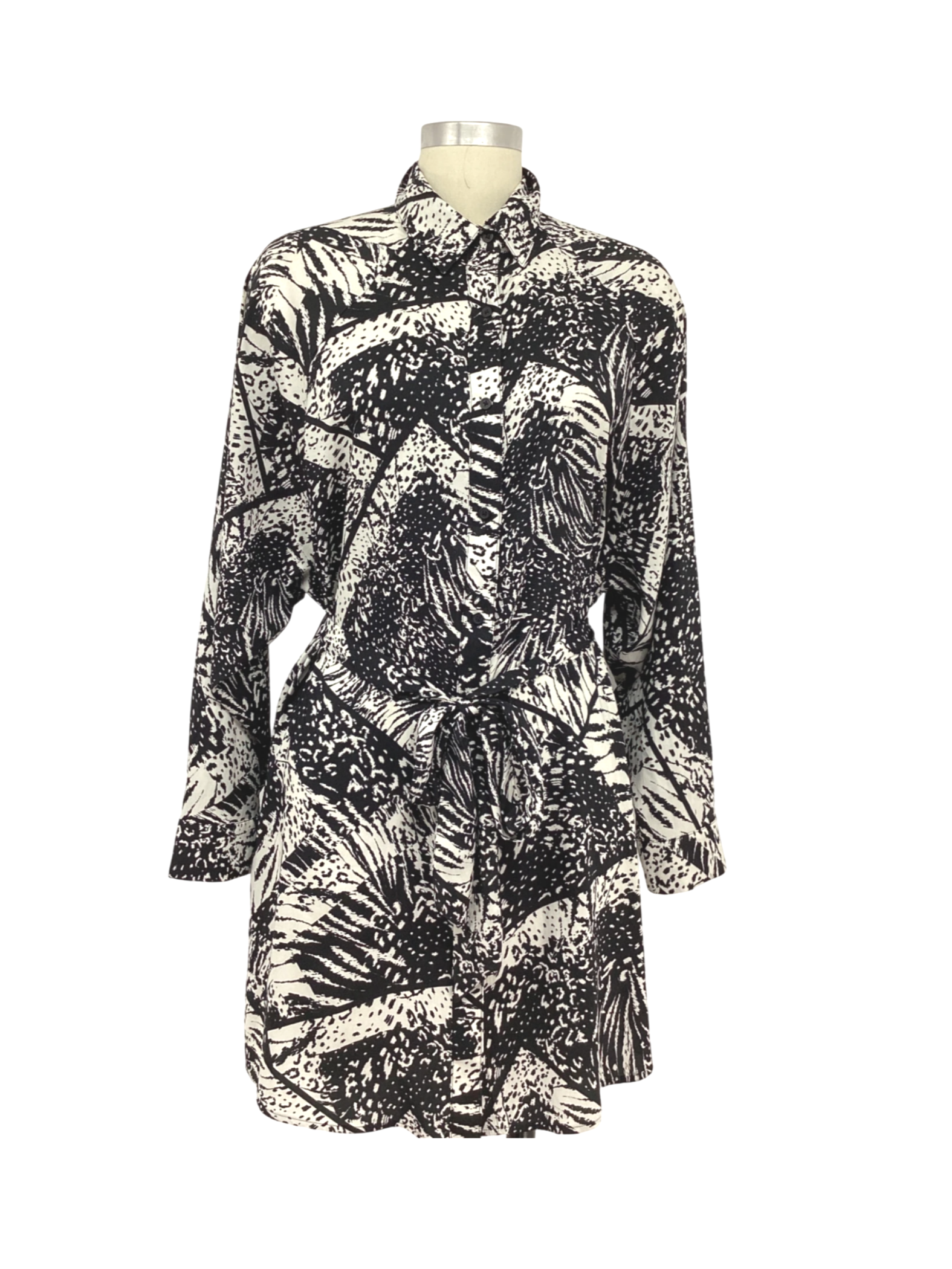 Embrace effortless style with this pre-owned Express Portofino Dress. This chic dress features a striking black and white animal print, perfect for making a statement. Crafted from a blend of recycled polyester and spandex, it offers both comfort and a flattering A-line silhouette. The dress boasts a classic collar, long sleeves, and a versatile mini skirt length, ideal for casual outings or a night out. Complete with a belt to cinch the waist, this dress is a must-have addition to your wardrobe.
