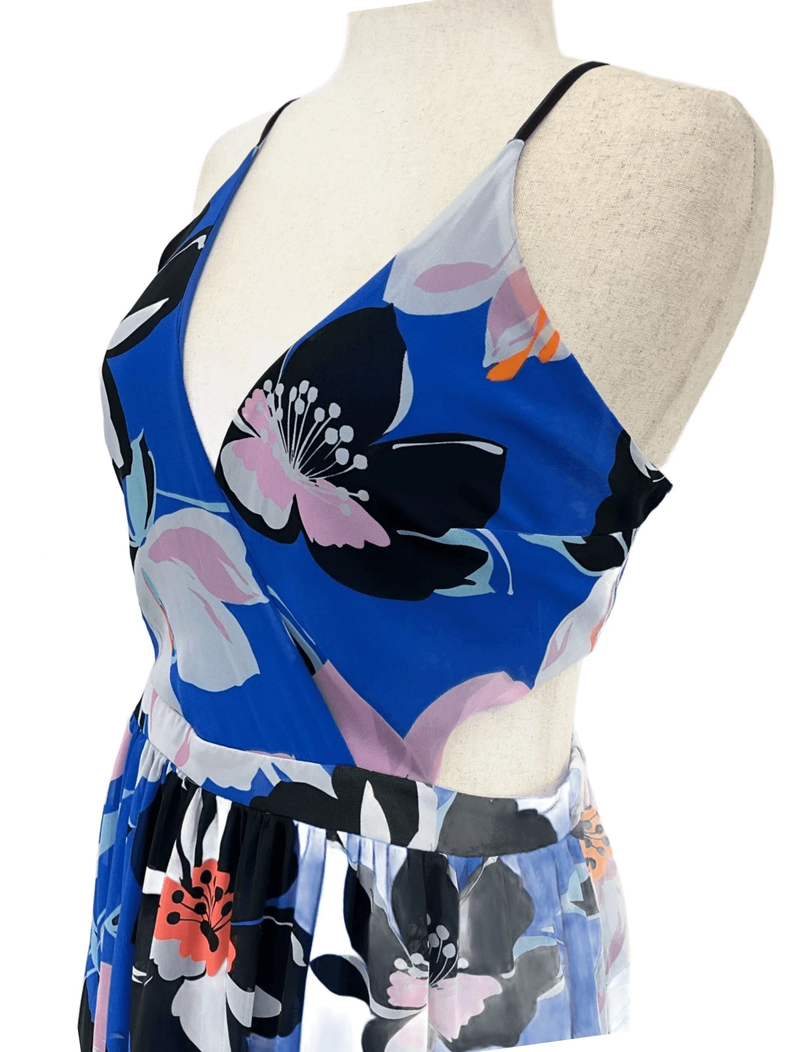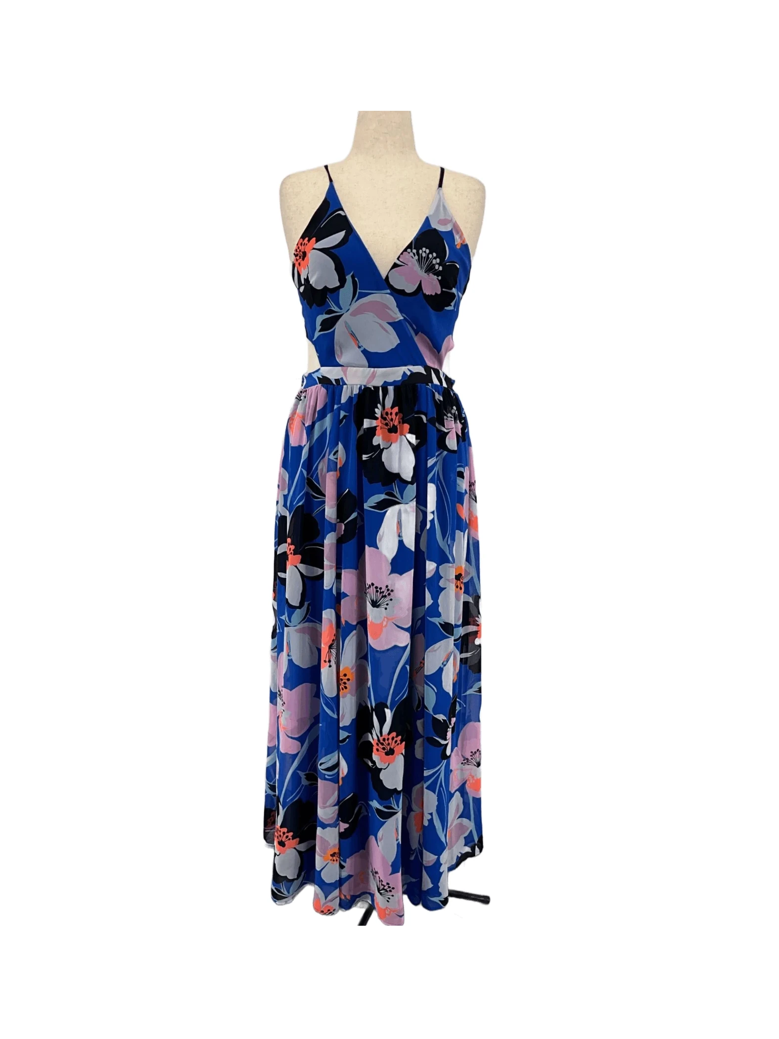 This is an express strappy lace-up cut-out maxi dress in floral print.