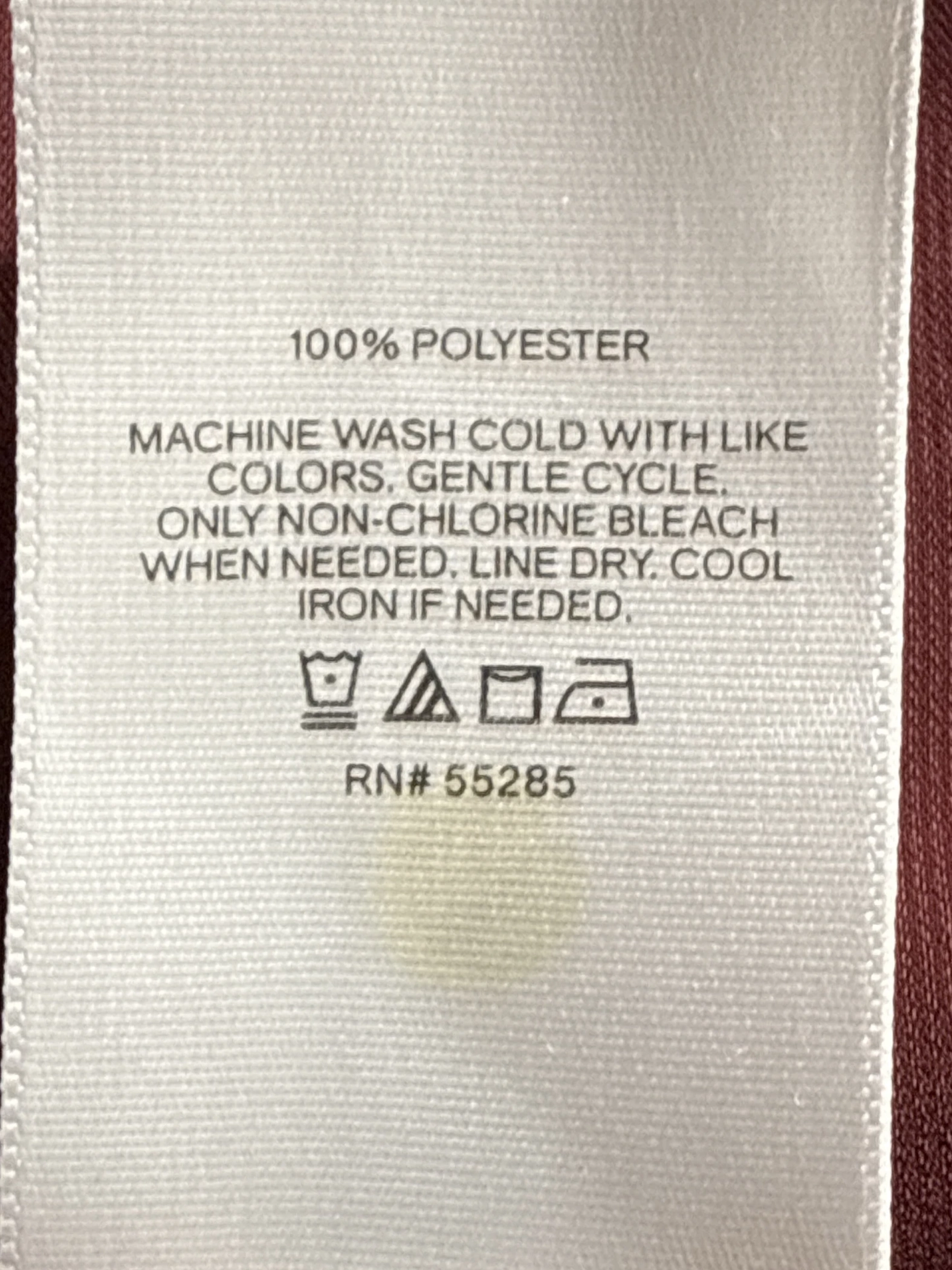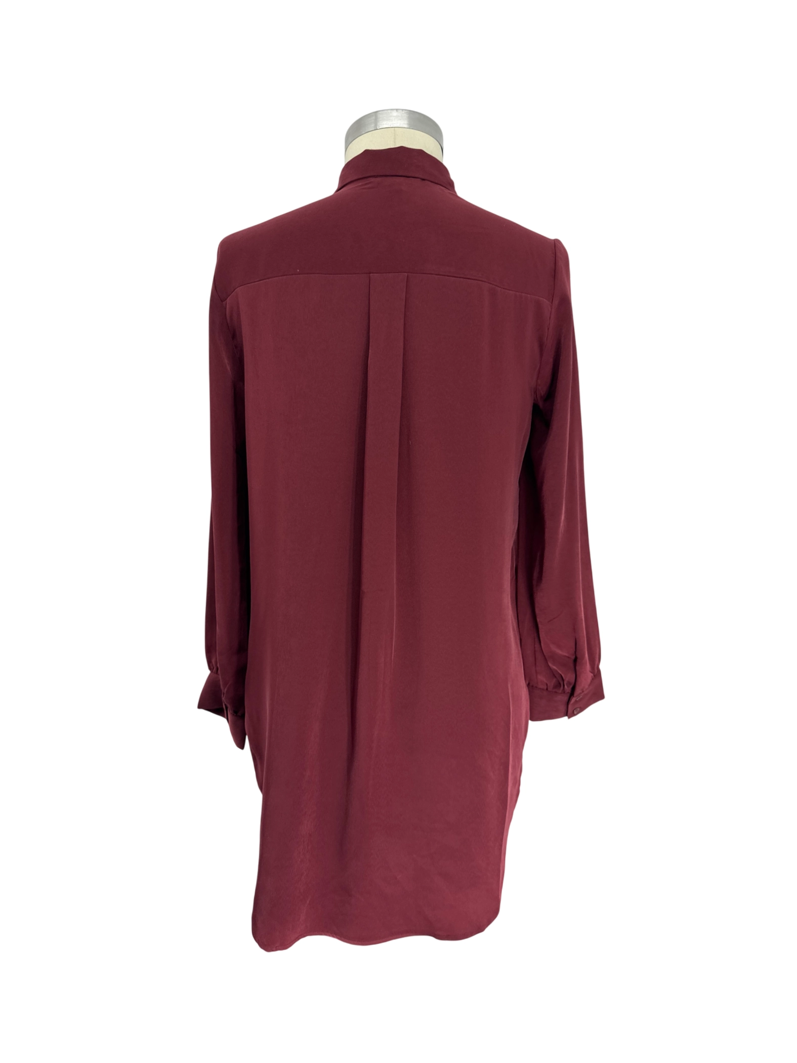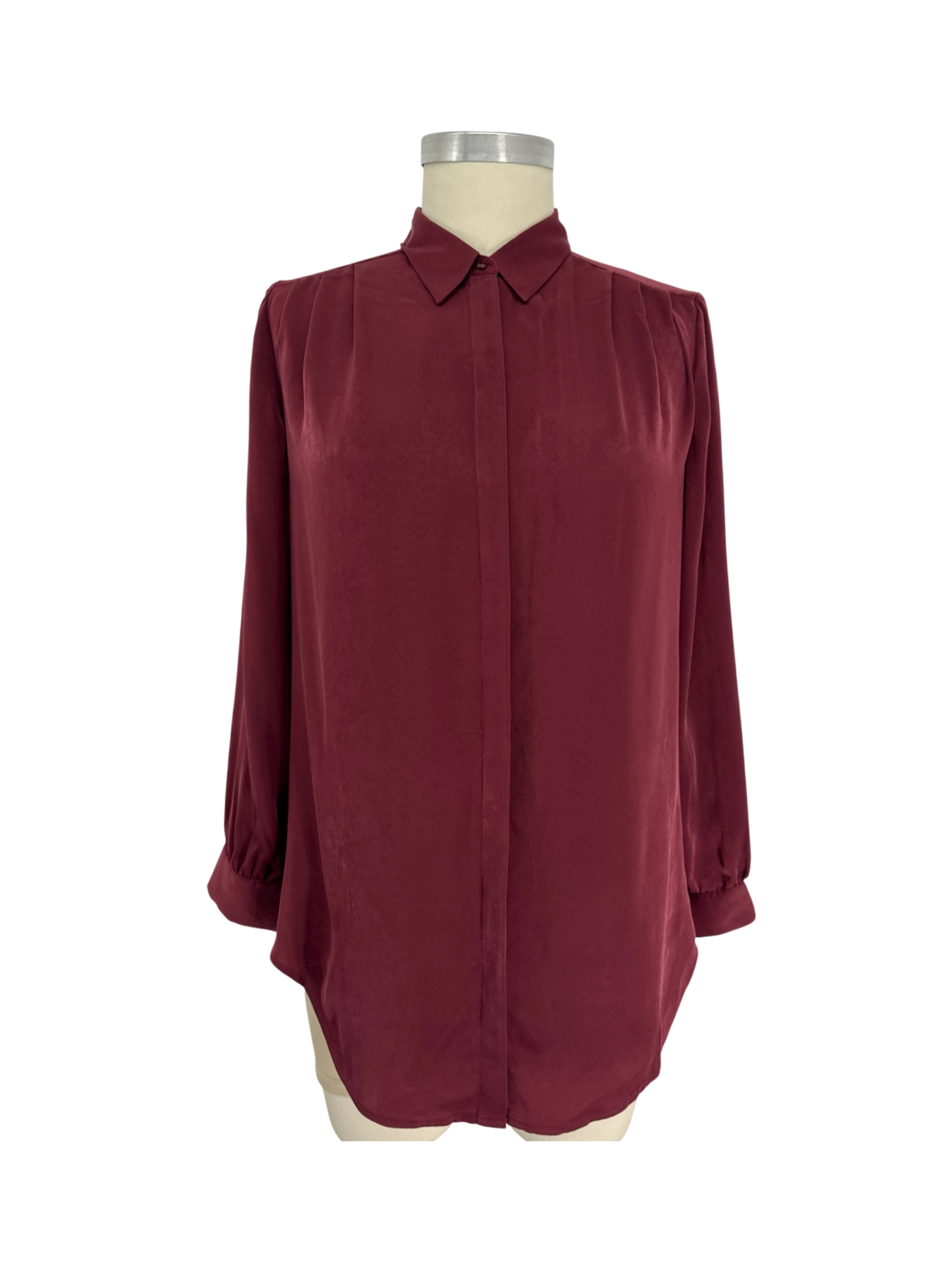 Elevate your wardrobe with this Express blouse, a timeless piece perfect for any occasion. Crafted from a luxurious burgundy polyester, this blouse offers a sleek and sophisticated look. Featuring a classic button-up design, a collared neckline, and long sleeves, it's both stylish and versatile. Ideal for layering or wearing on its own, this blouse is a must-have addition to your collection. Get this pre-owned Express blouse today!