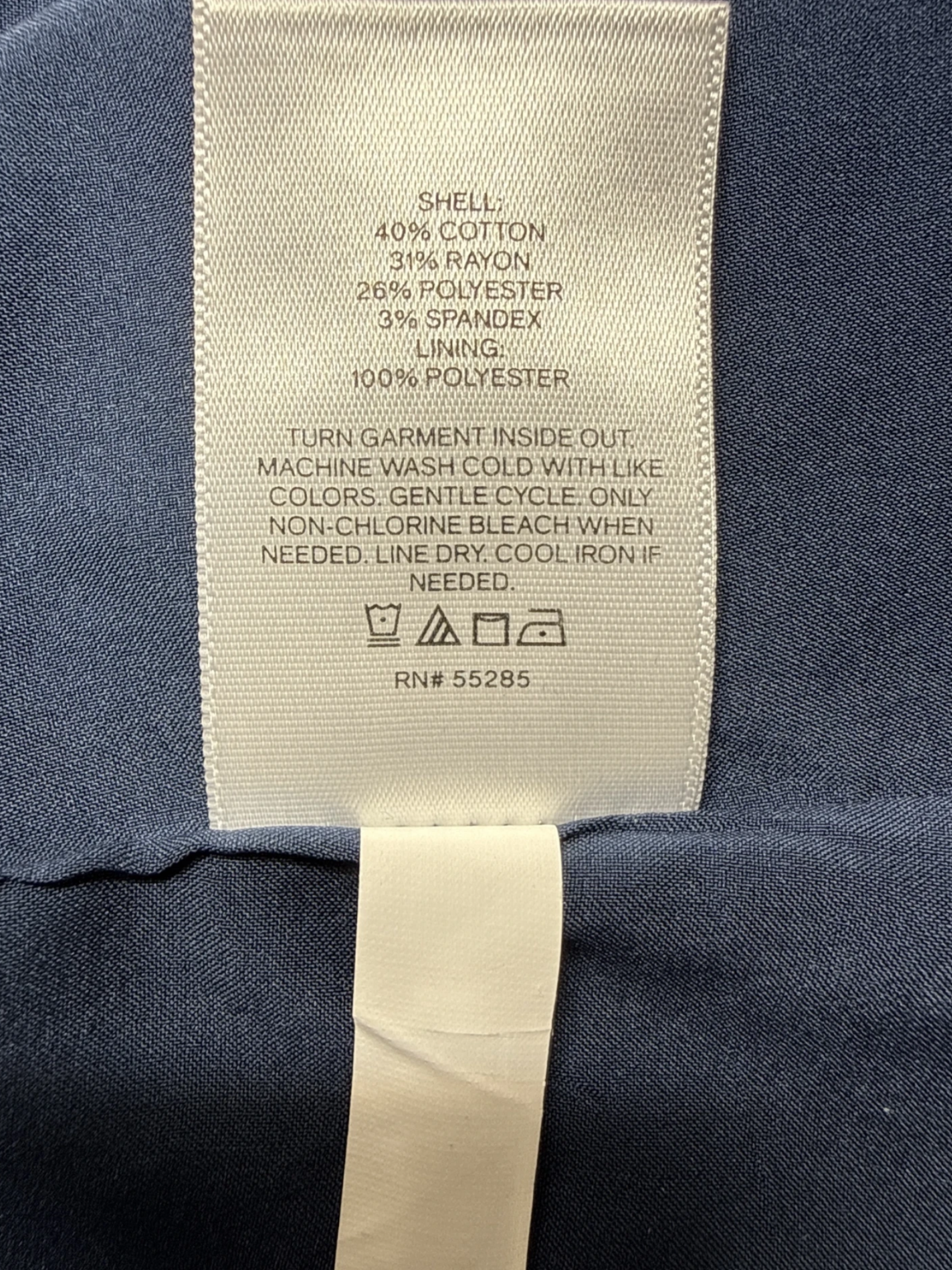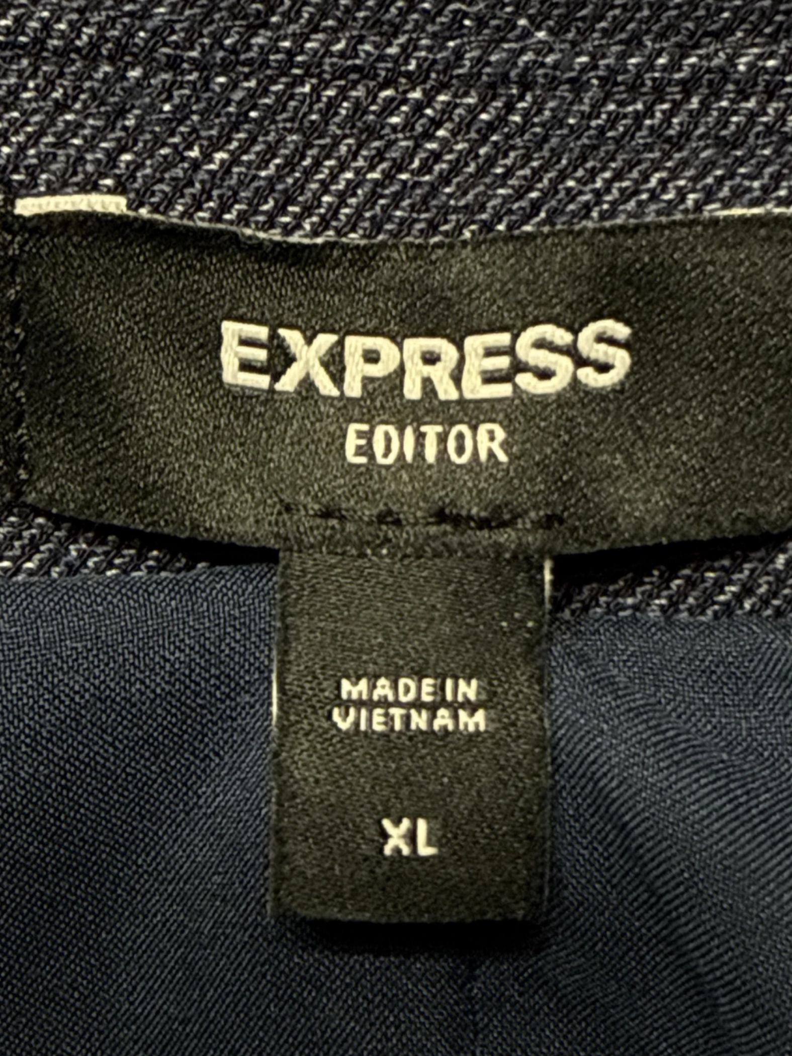 Elevate your wardrobe with this stylish pre-owned Express Editor blazer. Crafted from a blend of cotton, rayon, polyester, and spandex, this blazer features a classic design and a flattering fit. Perfect for layering, this versatile piece can be dressed up or down. The blazer is a beautiful blue color, making it a timeless addition to your closet. Get ready to make a statement with this chic and affordable find.