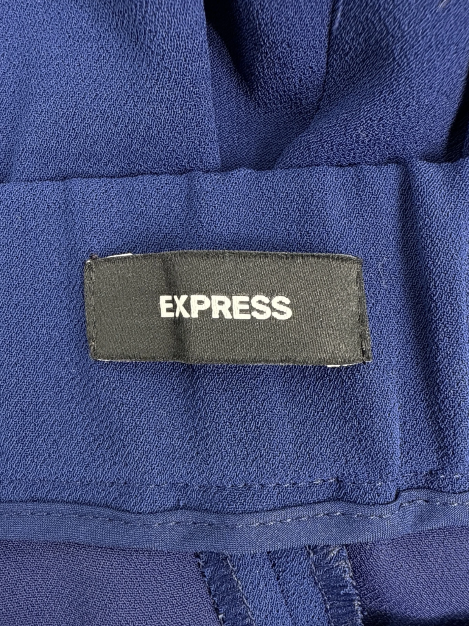 These pre-owned Express wide-leg pants are a stylish and comfortable choice for any wardrobe. They feature a classic blue color, a flattering wide-leg silhouette, and are made of a soft and durable polyester blend. The pants are in excellent condition, with minimal signs of wear. They're perfect for dressing up or down, offering versatility for work, casual outings, or evenings out. Pair them with a blouse and heels for a chic look or a tee and sneakers for a more relaxed vibe.