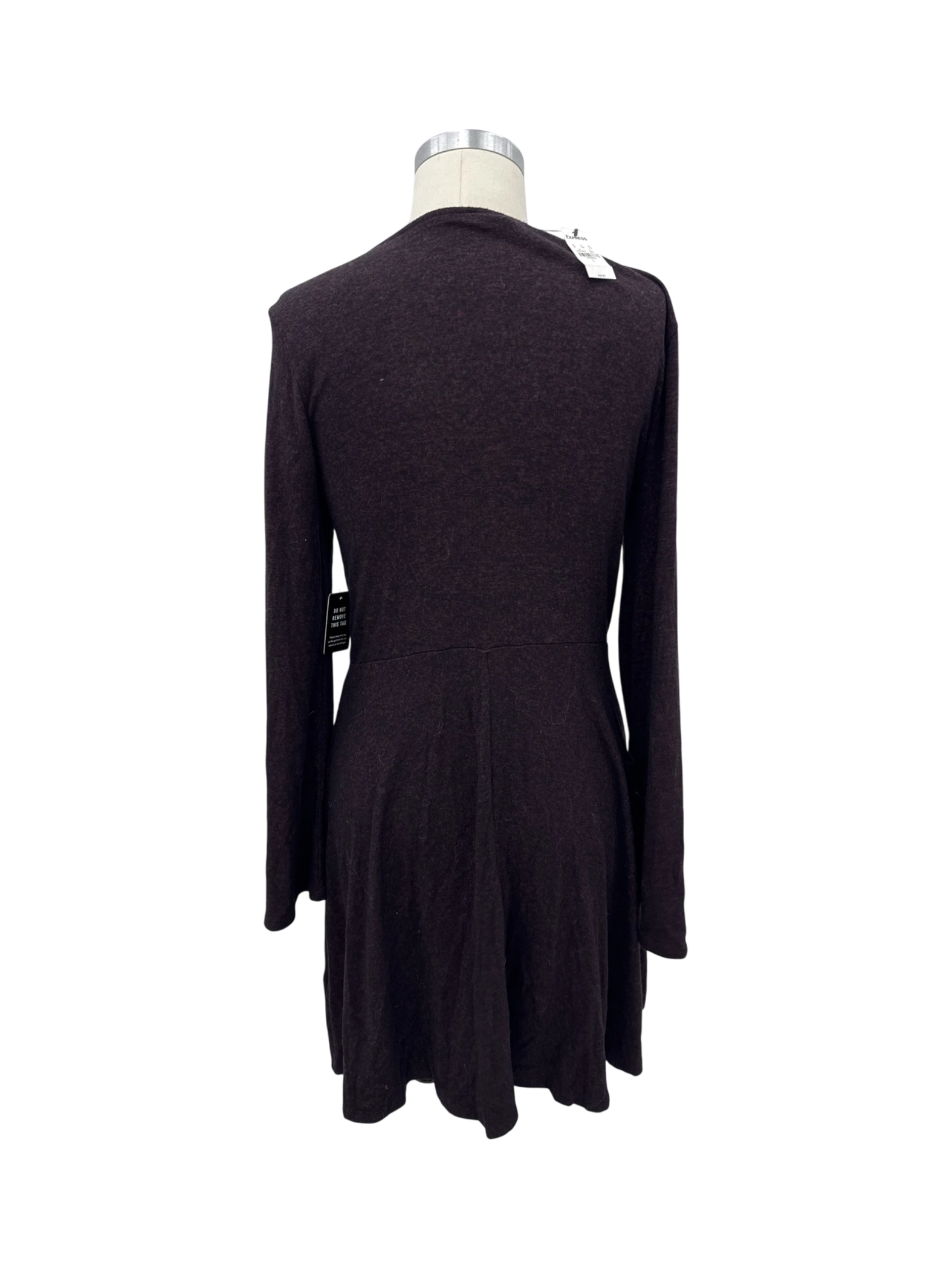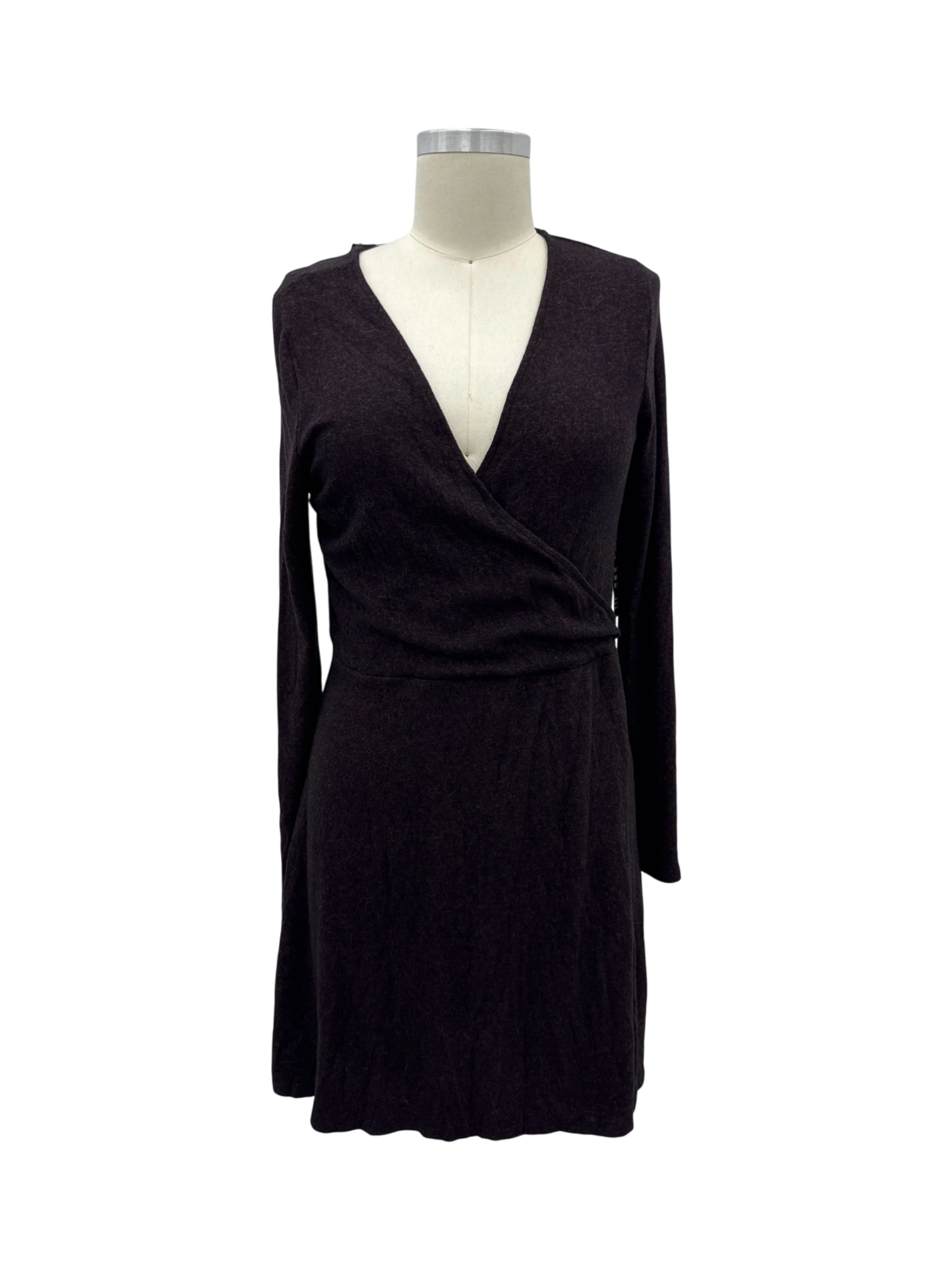 This Express wrap dress is a stylish and versatile addition to any wardrobe. Crafted from a comfortable blend of rayon, polyester, and spandex, it features a flattering A-line silhouette, a chic V-neckline, and long sleeves perfect for cooler weather. The dress is in excellent, pre-owned condition, making it a sustainable and affordable choice for various occasions, from casual outings to cocktail parties.