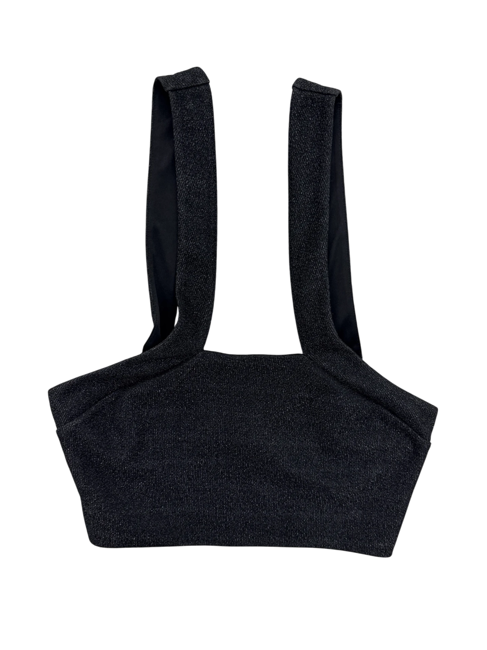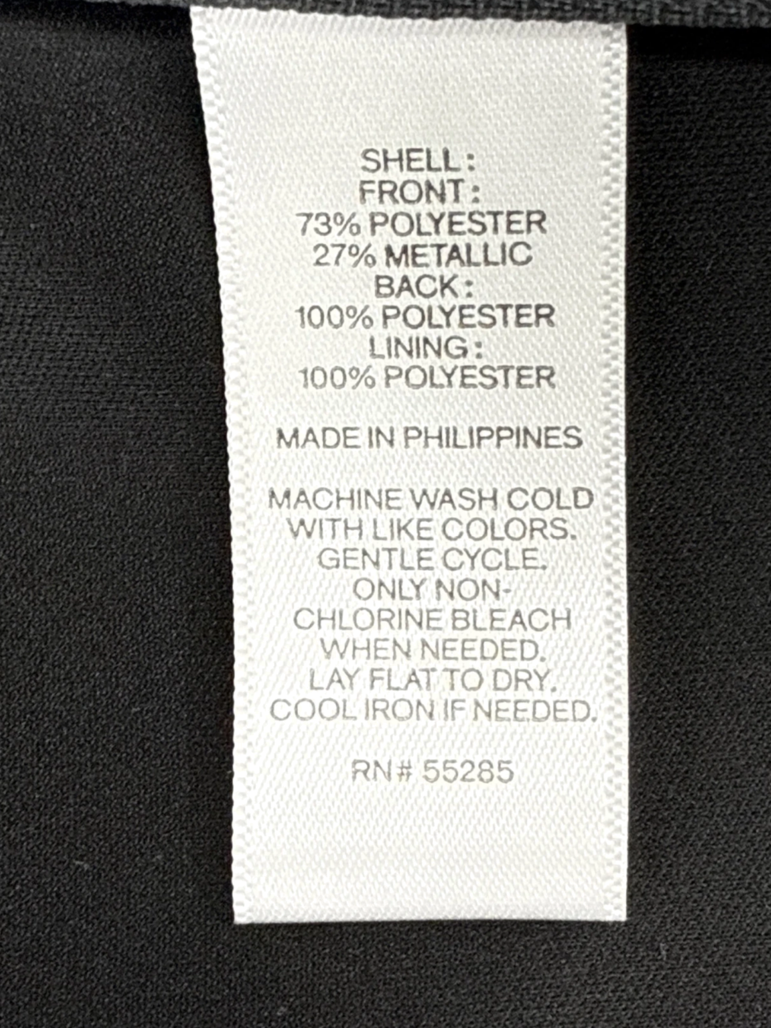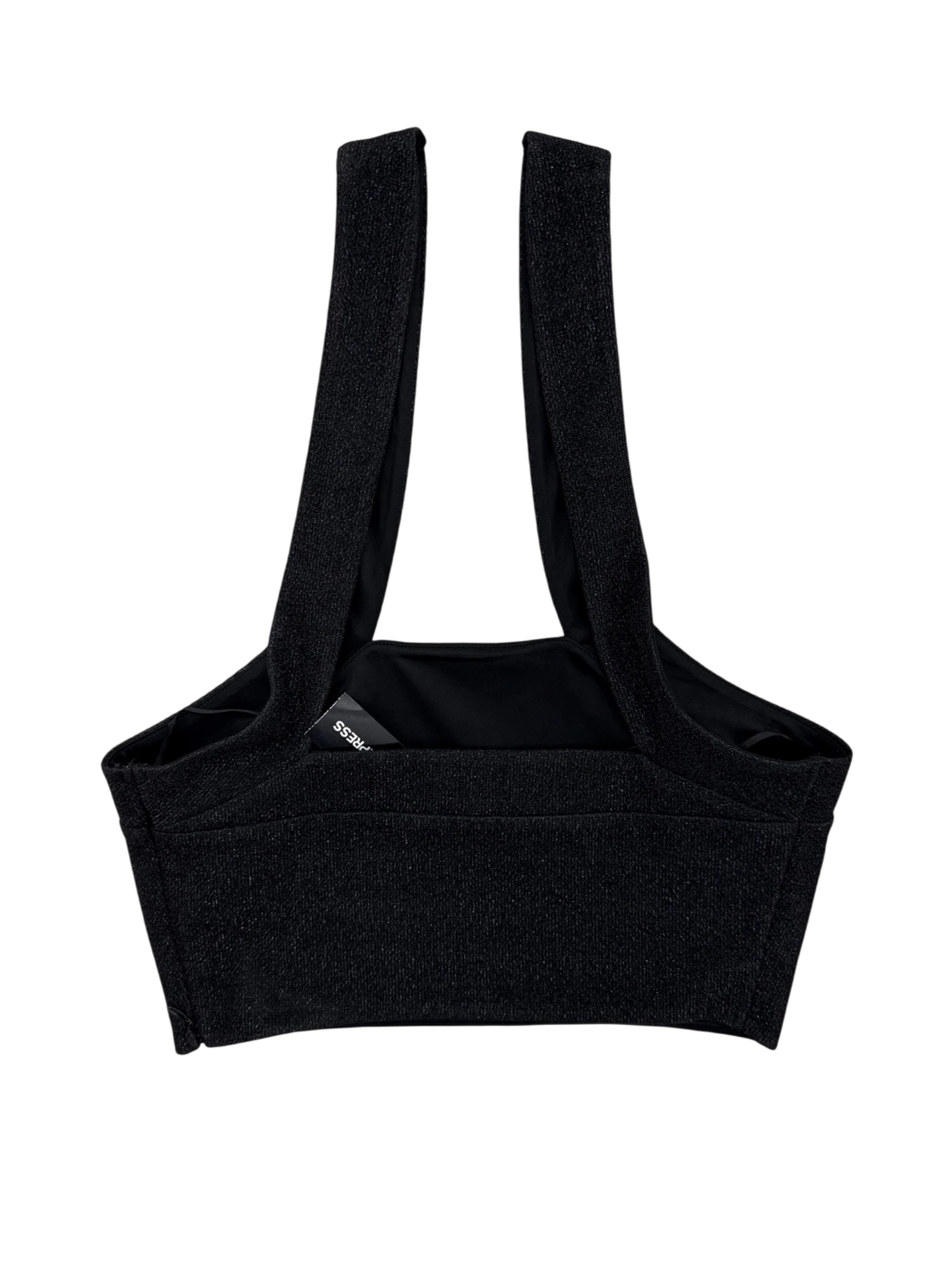 Elevate your wardrobe with this stylish Express black crop top. This top is perfect for a night out or a casual day. The strapless design offers a modern and chic look. Made from a blend of polyester and metallic fabric, this top offers a comfortable fit with a touch of shimmer. A great addition to any fashion-forward closet.