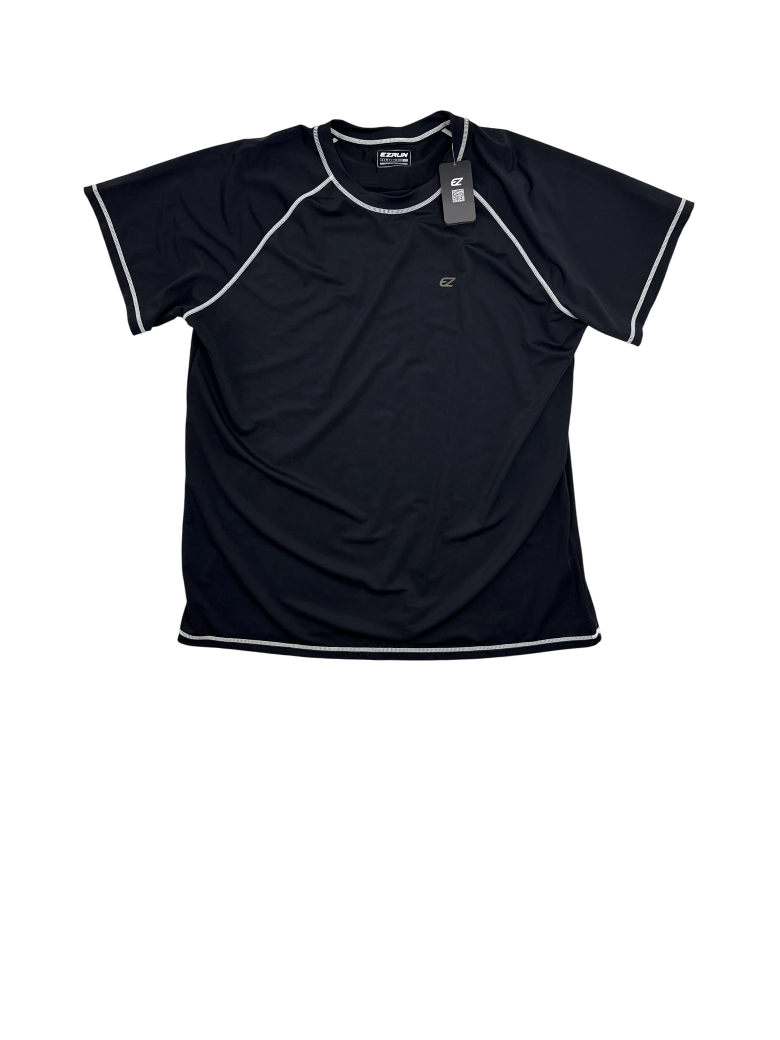 Elevate your activewear collection with this pre-owned EZRUN men's athletic shirt. This stylish shirt, perfect for various activities, comes in a sleek black color with contrasting white accents and is crafted from a comfortable nylon and spandex blend. Ideal for casual wear or workouts, offering both style and functionality. It's available in XL, XXL, and XXXL sizes and ready to enhance your sporty wardrobe.