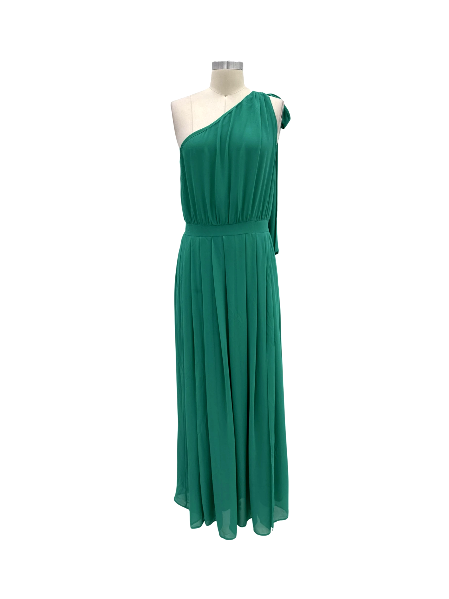 This elegant pre-owned eva. mendes maxi dress is perfect for a special occasion. Featuring a flattering one-shoulder neckline and a flowy A-line silhouette, this dress is made from lightweight polyester in a beautiful shade of green. Ideal for cocktail parties, weddings, or any formal event, this dress offers both style and comfort. It's a chic and versatile choice for your wardrobe, offering a touch of sophistication and grace.