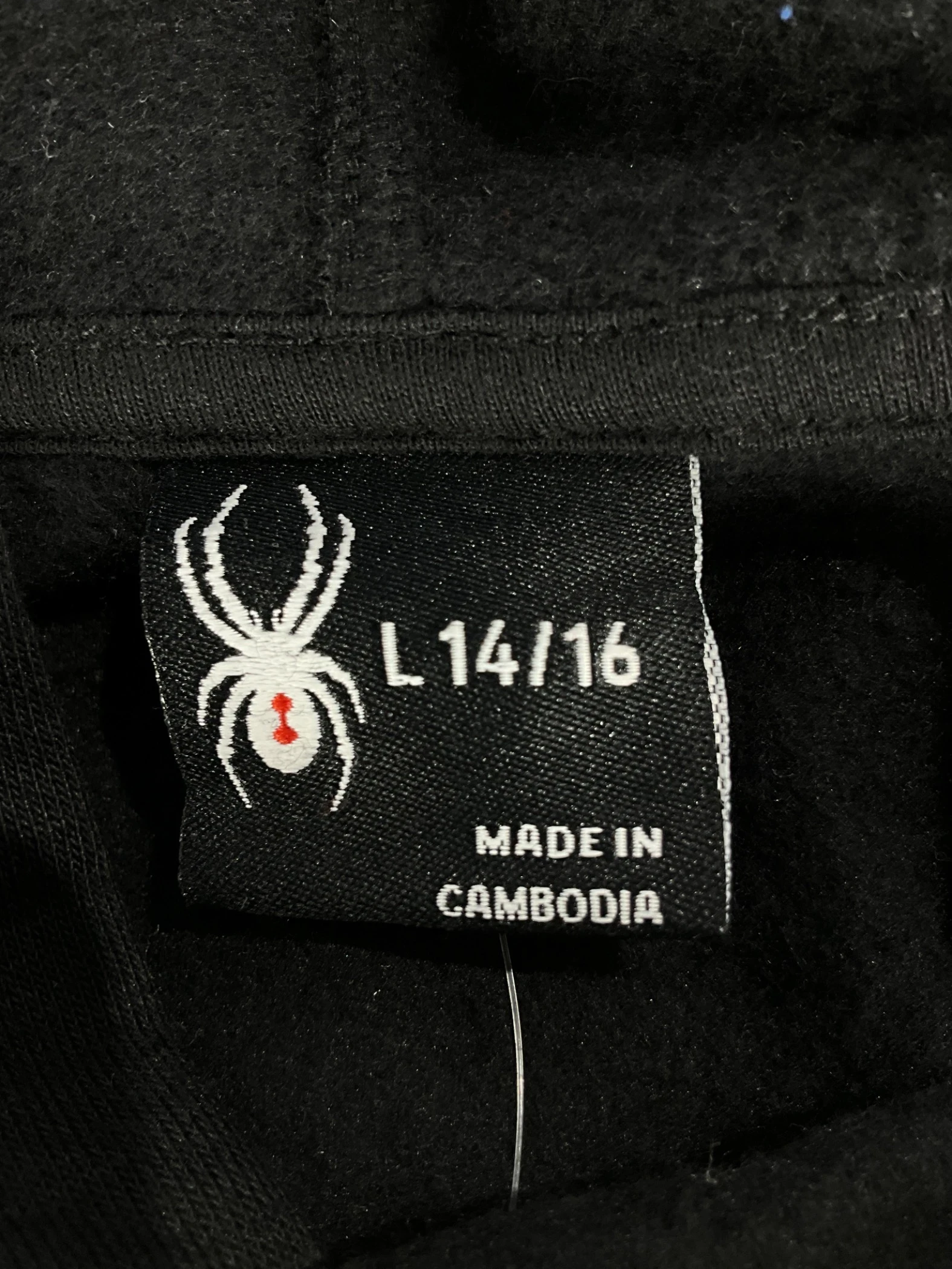 This pre-owned Spyder hooded sweatshirt for boys is a perfect blend of style and comfort. Featuring a classic black design with the brand's iconic logo, this hoodie is ideal for casual wear. Crafted with a blend of cotton and polyester, it offers a soft feel and durability. The hooded design provides extra warmth, while the size 14/16 ensures a great fit. A fantastic addition to any boy's wardrobe, it's perfect for everyday activities or layering during colder months.