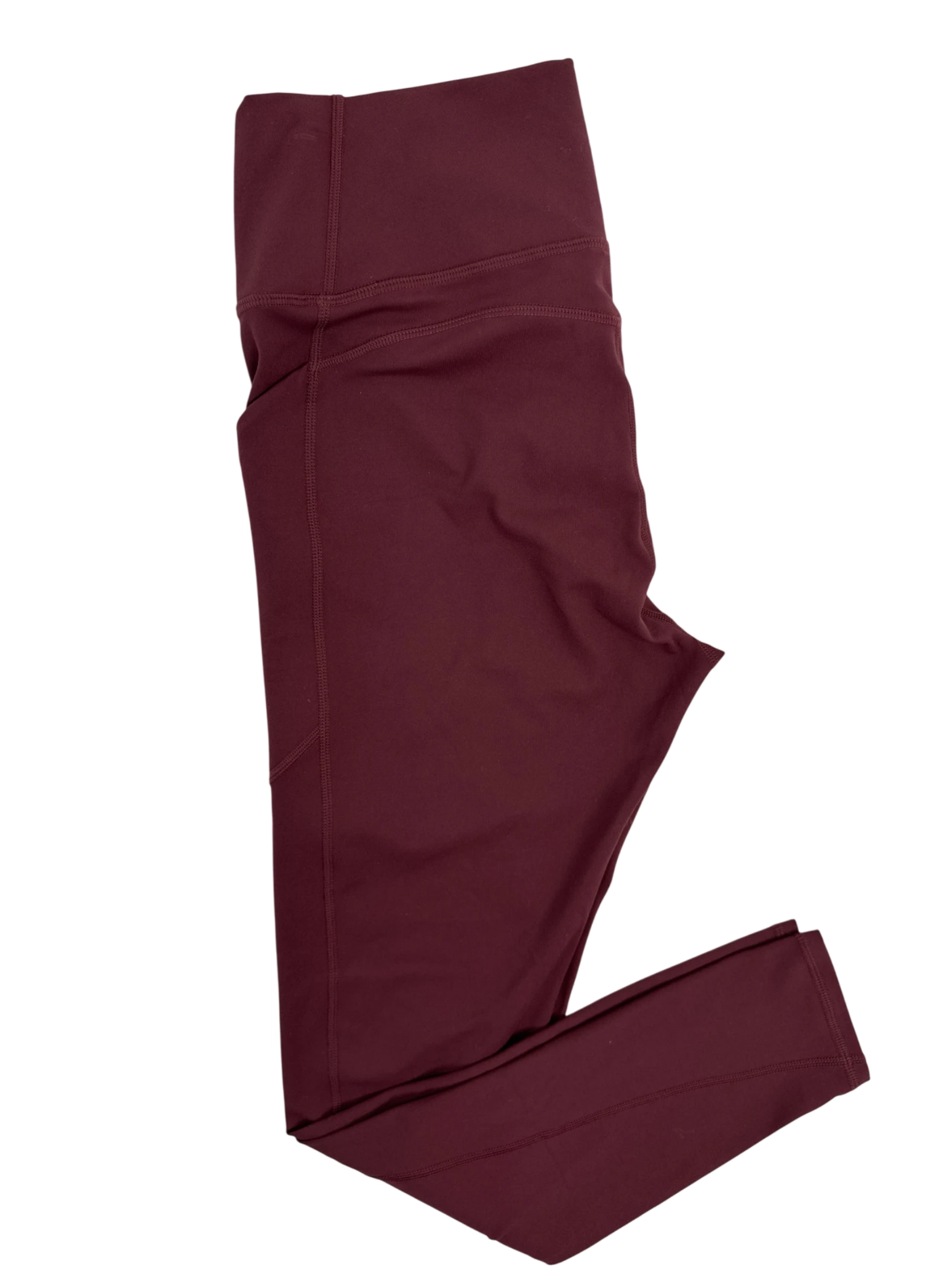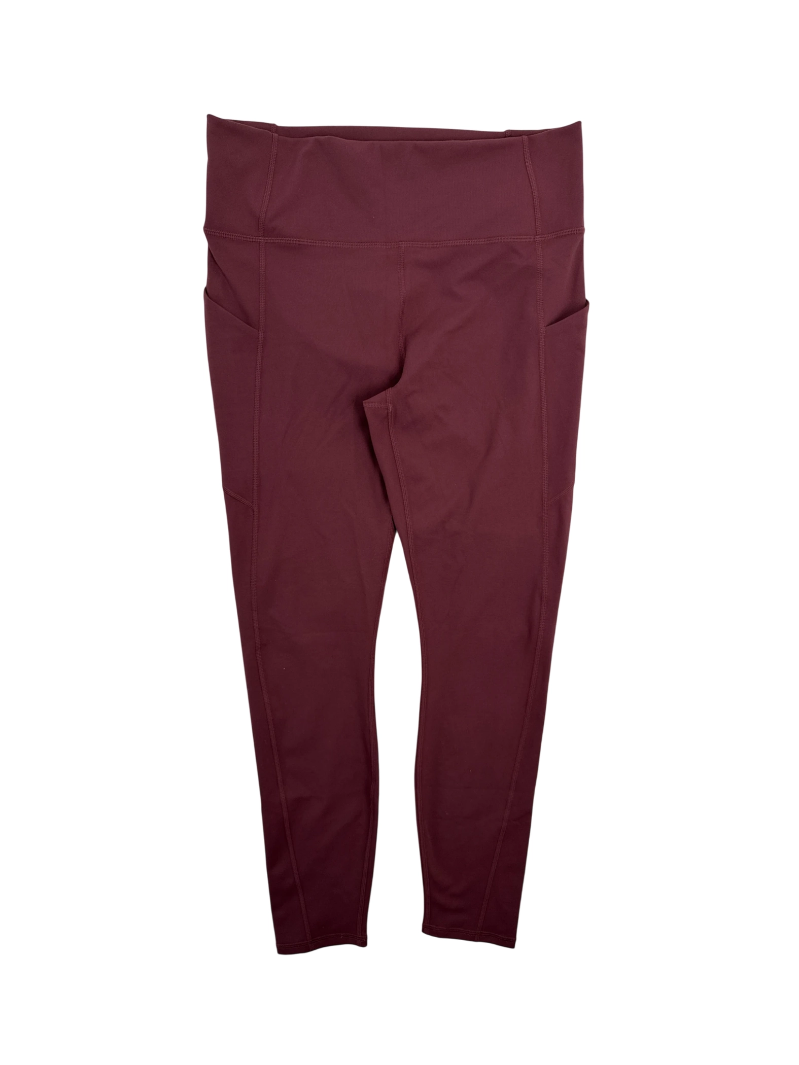 Elevate your workout wardrobe with this pre-owned Fabletics set, featuring a stylish sports bra and leggings in a rich wine color. The set is crafted with high-quality materials for optimal comfort and support during any activity. The leggings offer a flattering fit with practical pocket details, while the sports bra provides a secure and comfortable fit. This versatile set is ideal for yoga, running, or everyday wear, and it's in great condition.