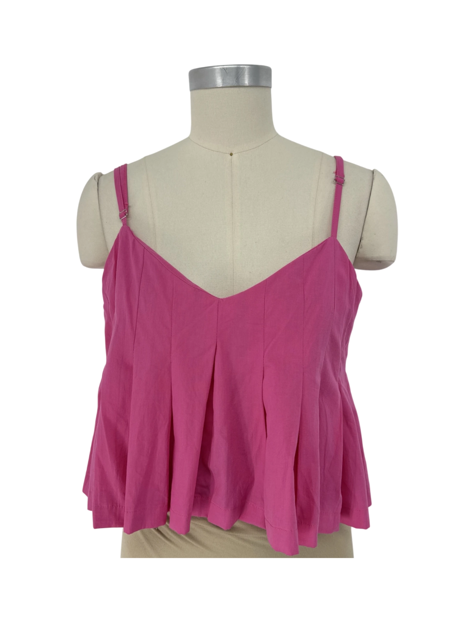 This pre-owned Fab'rik tank top is the perfect addition to any summer wardrobe. Made from soft 100% Viscose, this top features a flattering V-neck and a vibrant pink hue. It's ideal for warm weather, offering a stylish and comfortable fit. Whether you're heading to a casual brunch or a day out, this tank top will add a pop of color to your outfit. The versatile design makes it easy to pair with shorts, skirts, or jeans. This top is a size S and is in excellent condition.