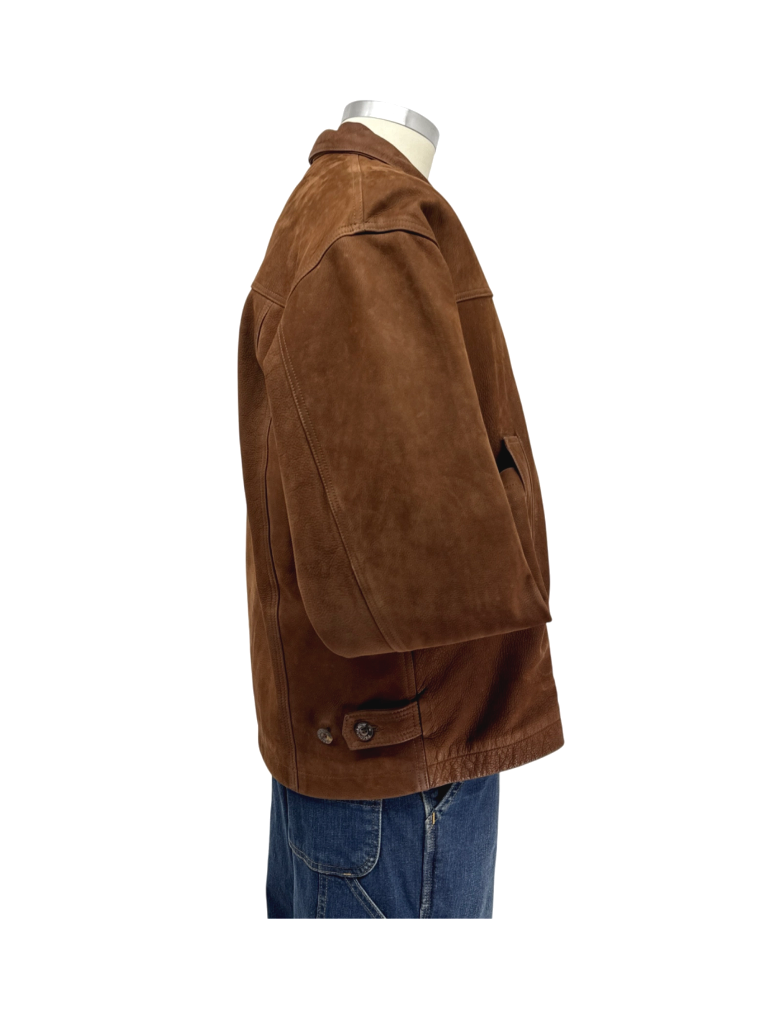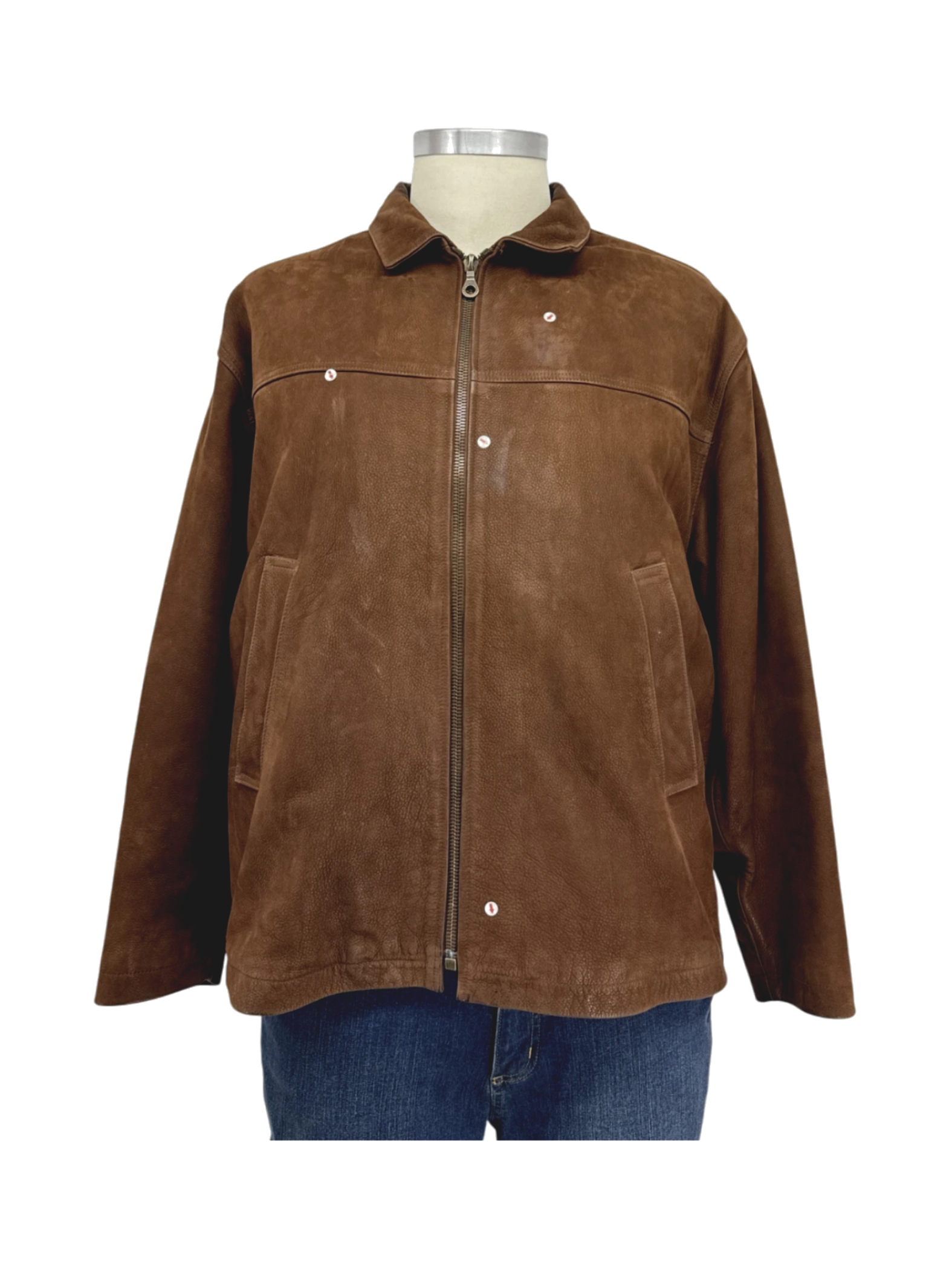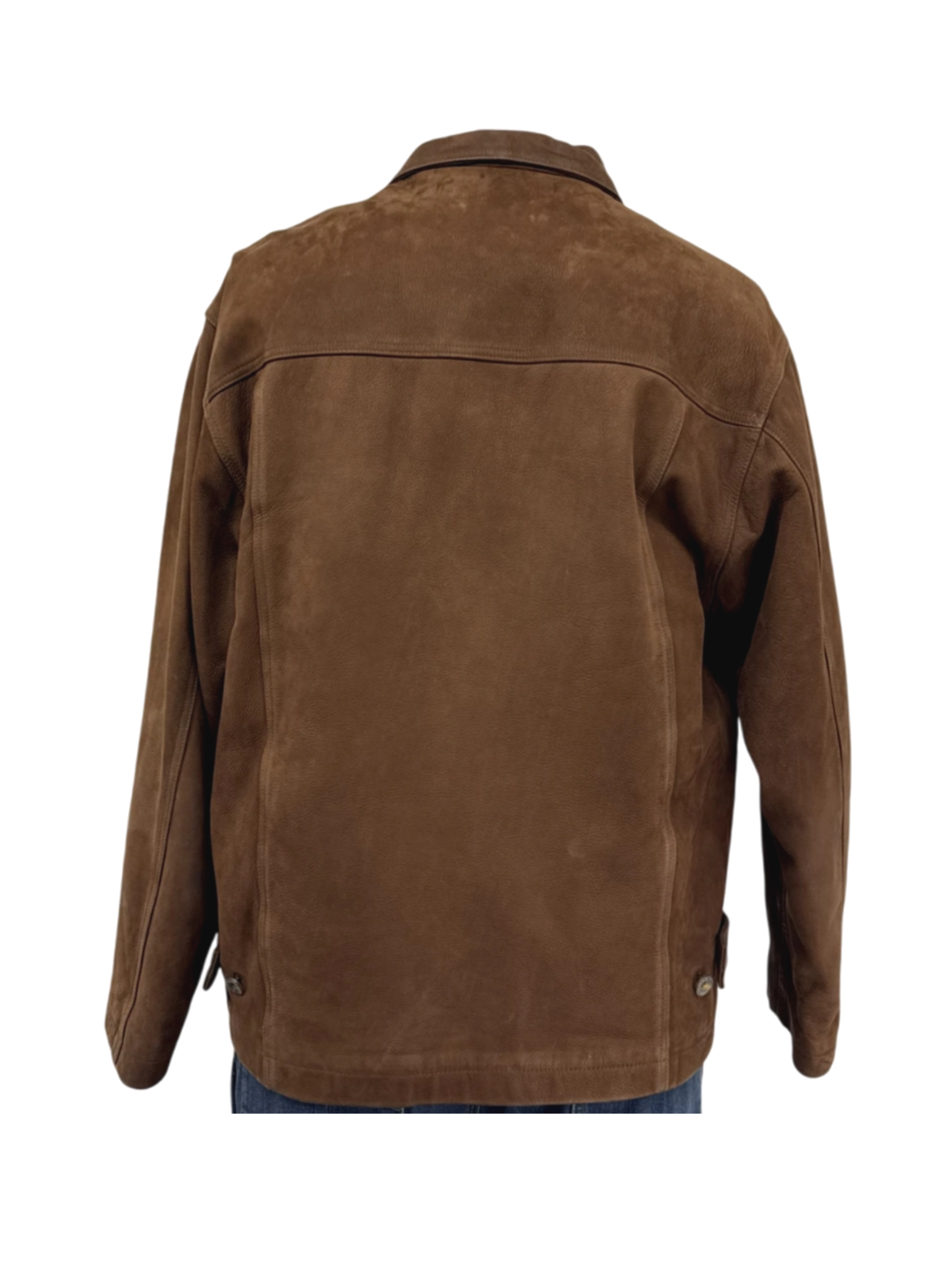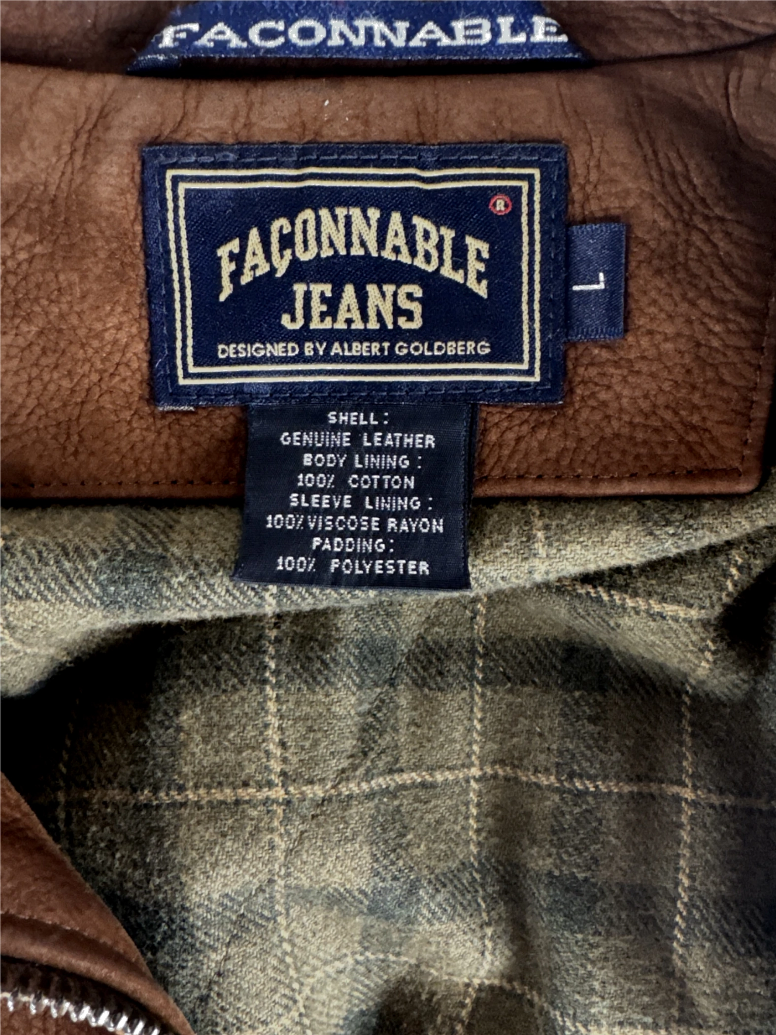 This pre-owned Faconnable leather jacket is a stylish and durable outerwear piece. Made from genuine leather, it features a classic design with a full zip closure, and button details. Its lined with 100% cotton and 100% viscose rayon, perfect for cooler weather. The jacket showcases a rich brown color, adding a touch of sophistication to any outfit. Ideal for a smart-casual look, this jacket provides both comfort and style, making it a timeless addition to any wardrobe. A perfect choice for fall and winter.