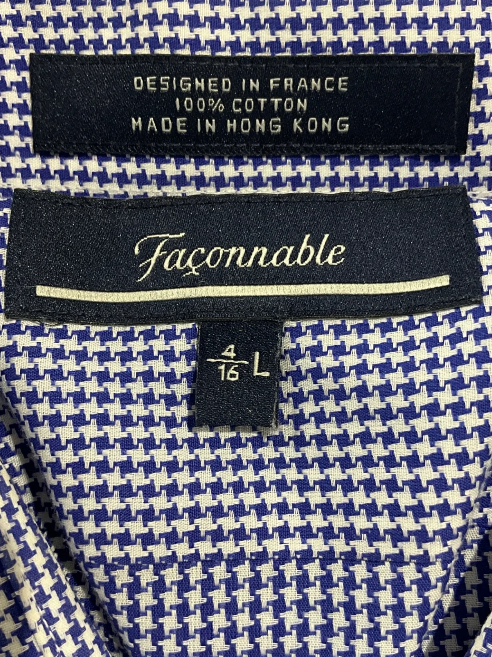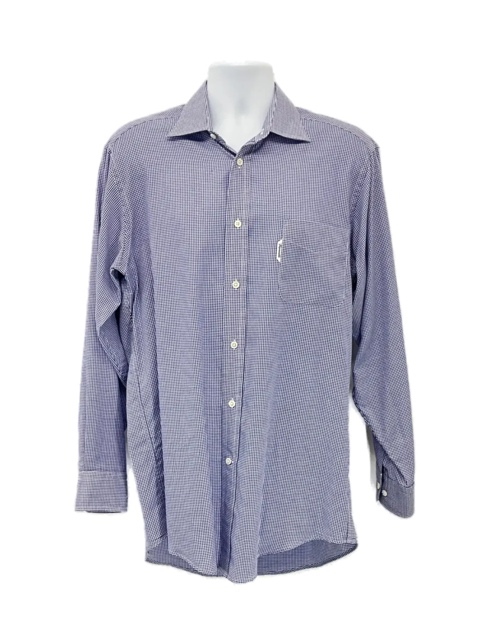 Elevate your wardrobe with this Façonnable men's long sleeve shirt. Crafted from 100% cotton, this button-down shirt offers a comfortable fit and timeless style. Featuring a classic collar and checkered pattern in blue, it's perfect for both casual and smart-casual occasions. Made in Hong Kong, this pre-owned shirt combines quality craftsmanship with a versatile design, ideal for layering or wearing on its own. A perfect addition to any men's top collection. A perfect fit.