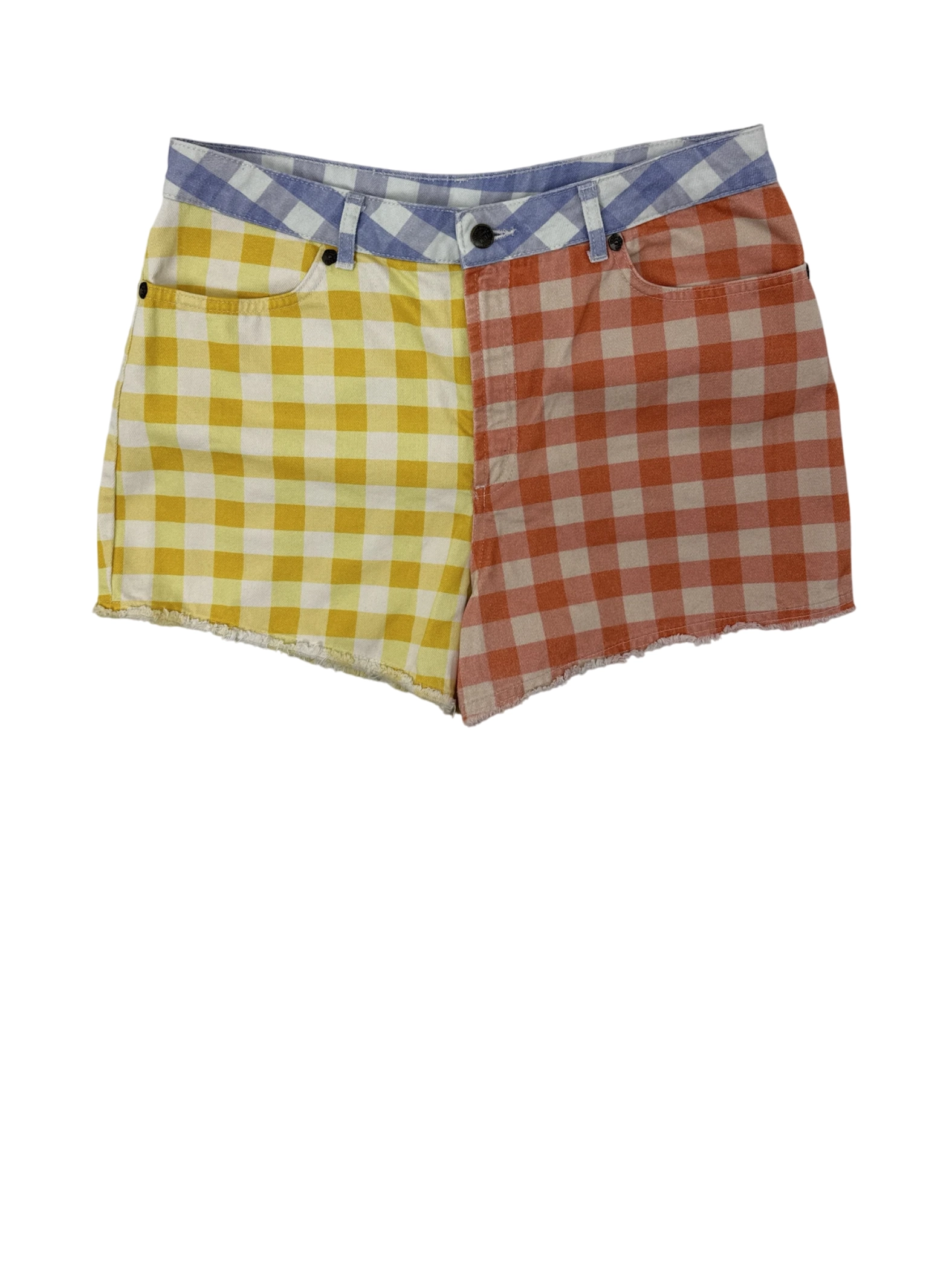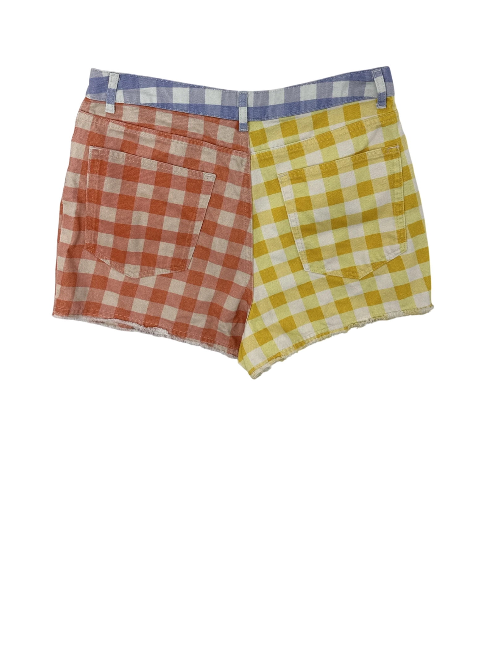 Must have - These unique, pre-owned FARM for ANTHROPOLOGIE shorts are a vibrant addition to any summer wardrobe. Featuring a playful, patchwork design in yellow, orange, and blue gingham, these high-waisted shorts are a stylish statement piece. Made from comfortable cotton, they offer a flattering fit and a touch of vintage charm. Perfect for warm weather, they're ideal for casual outings and adding a pop of color to your look. These shorts are a fun and fashionable find, ready to be loved again!