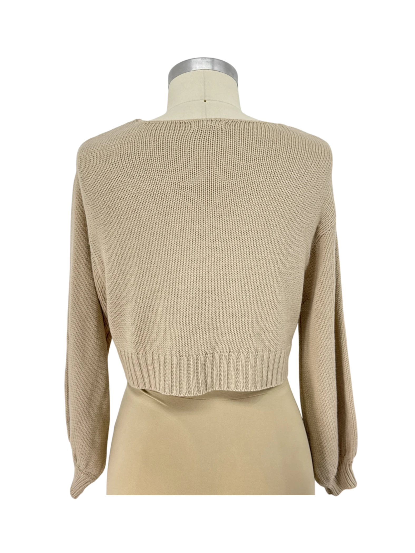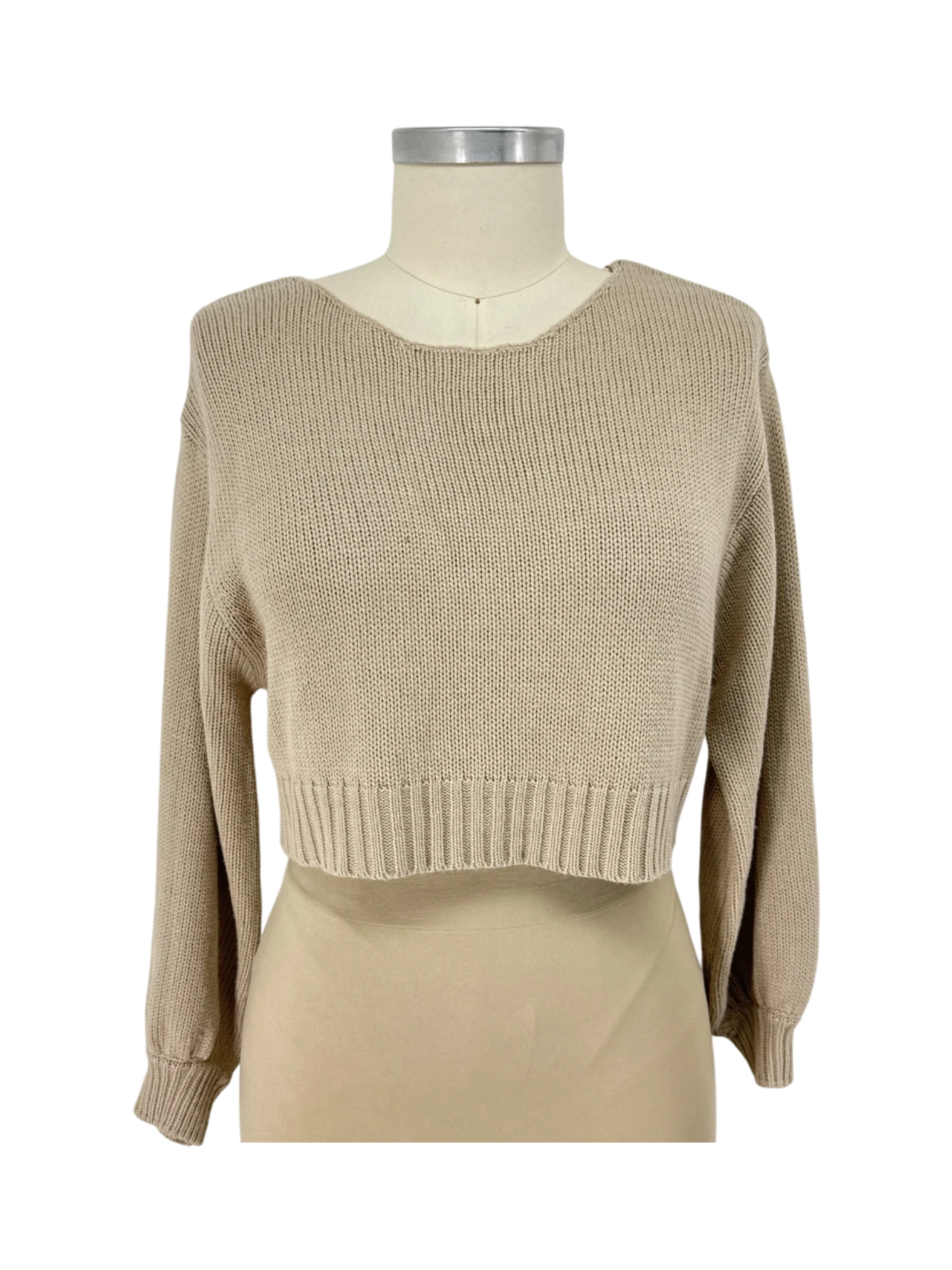 Elevate your wardrobe with this stylish Fashion Nova cropped sweater. Crafted from soft, comfortable acrylic, this pre-owned sweater offers a trendy and versatile look. The neutral beige color makes it easy to pair with any outfit, while the cropped style adds a touch of modern flair. Perfect for layering or wearing on its own, this sweater is a must-have for any fashion-forward individual looking for a chic and affordable piece. Embrace the cozy feel and effortless style.