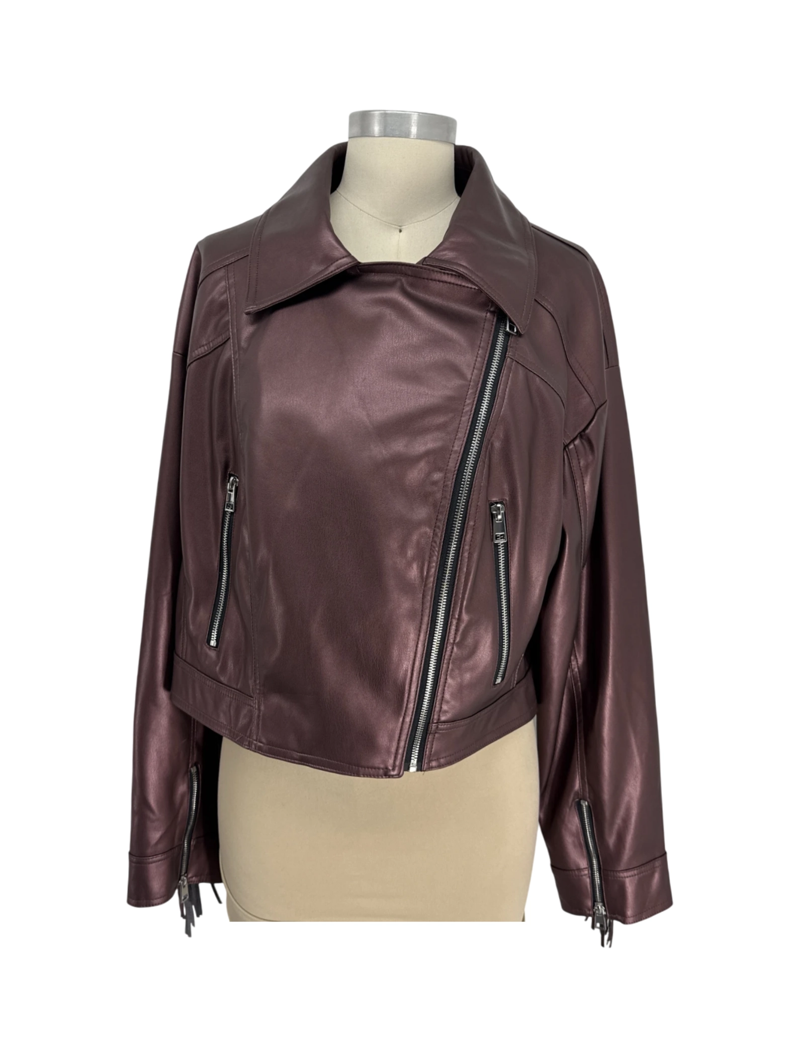 Rev up your style with this Fashion Nova motorcycle jacket. This pre-owned jacket features a sleek design and a bold color. Made from high-quality materials, it offers both style and durability. The jacket is perfect for adding an edge to any outfit. Whether you're hitting the town or going for a ride, this jacket will keep you looking chic and feeling confident.