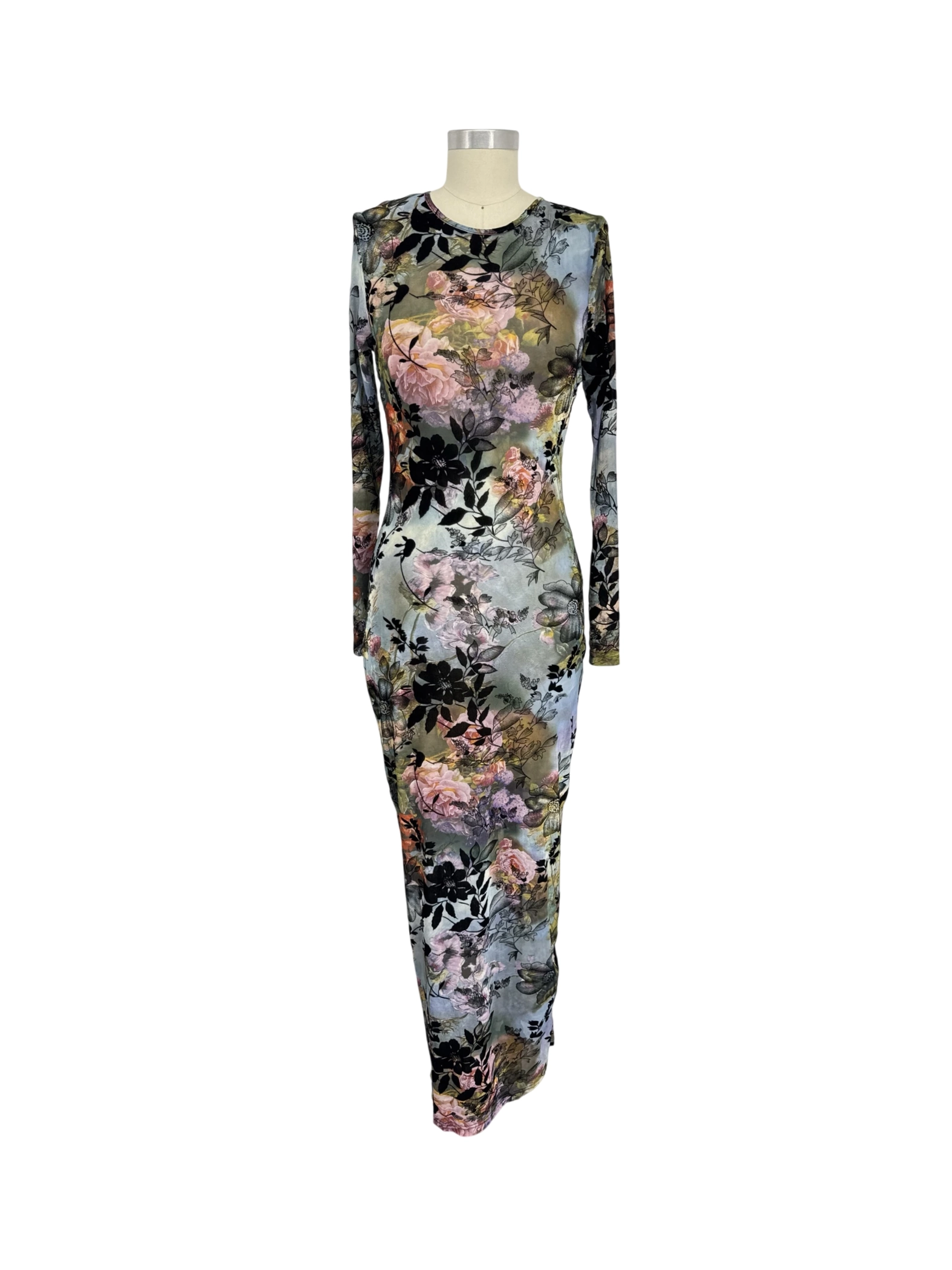 This pre-owned Fashion Nova maxi dress is a stunning addition to any wardrobe. Featuring a beautiful floral pattern in a range of colors, this bodycon dress offers a flattering fit. The long sleeves and maxi length make it perfect for spring and fall occasions. Made from a blend of polyester and spandex, it offers both comfort and style. This dress is perfect for a casual outing or a special event. Get ready to turn heads with this gorgeous piece!