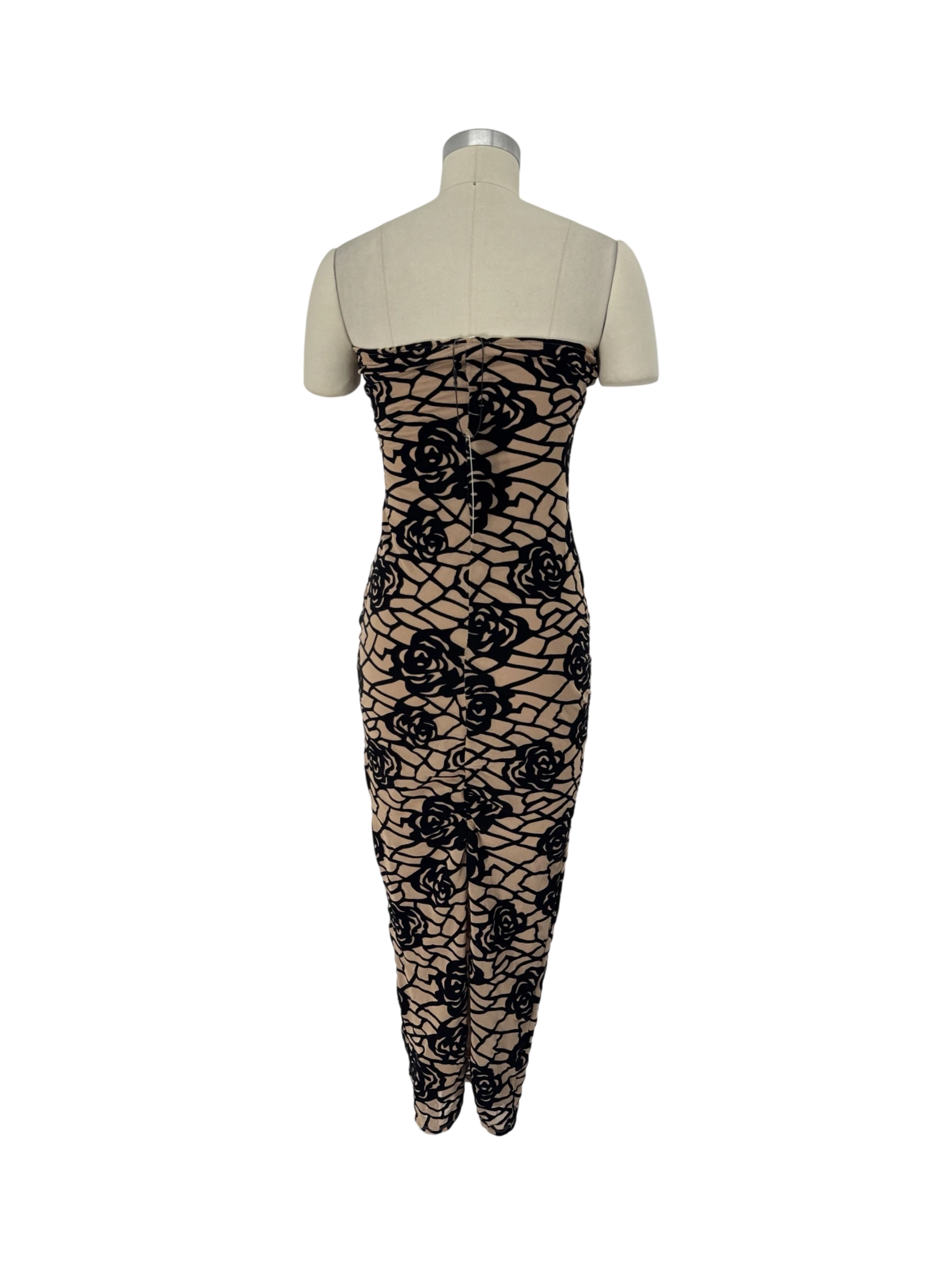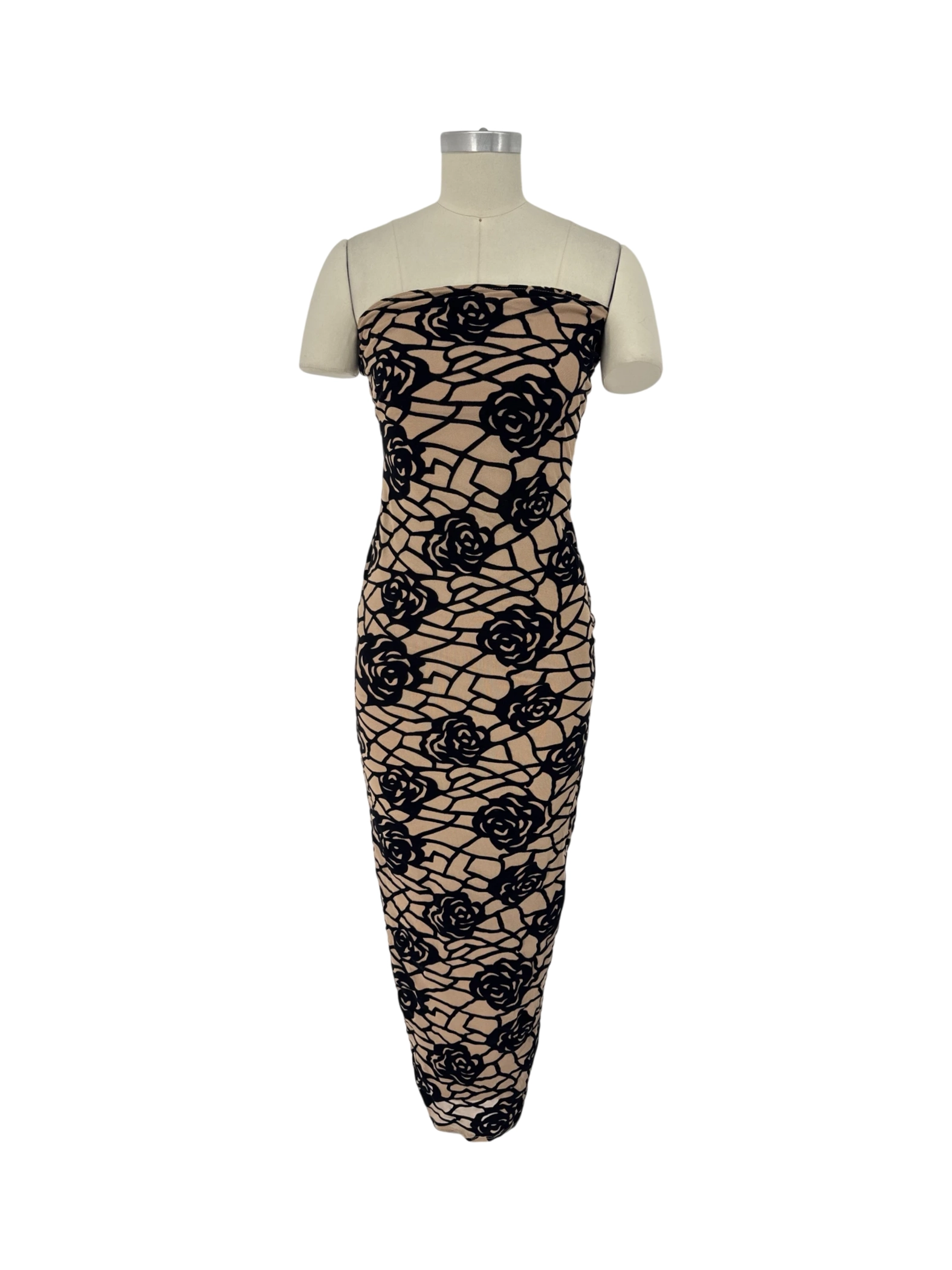 Elevate your night out with this stunning Fashion Nova bodycon dress. This pre-owned dress features a strapless design with a beautiful rose pattern, perfect for a cocktail party or a special occasion. Crafted from a blend of polyester and spandex, it offers a comfortable and flattering fit. The maxi length adds a touch of elegance, making it an ideal choice for the summer season. Available in size XS.