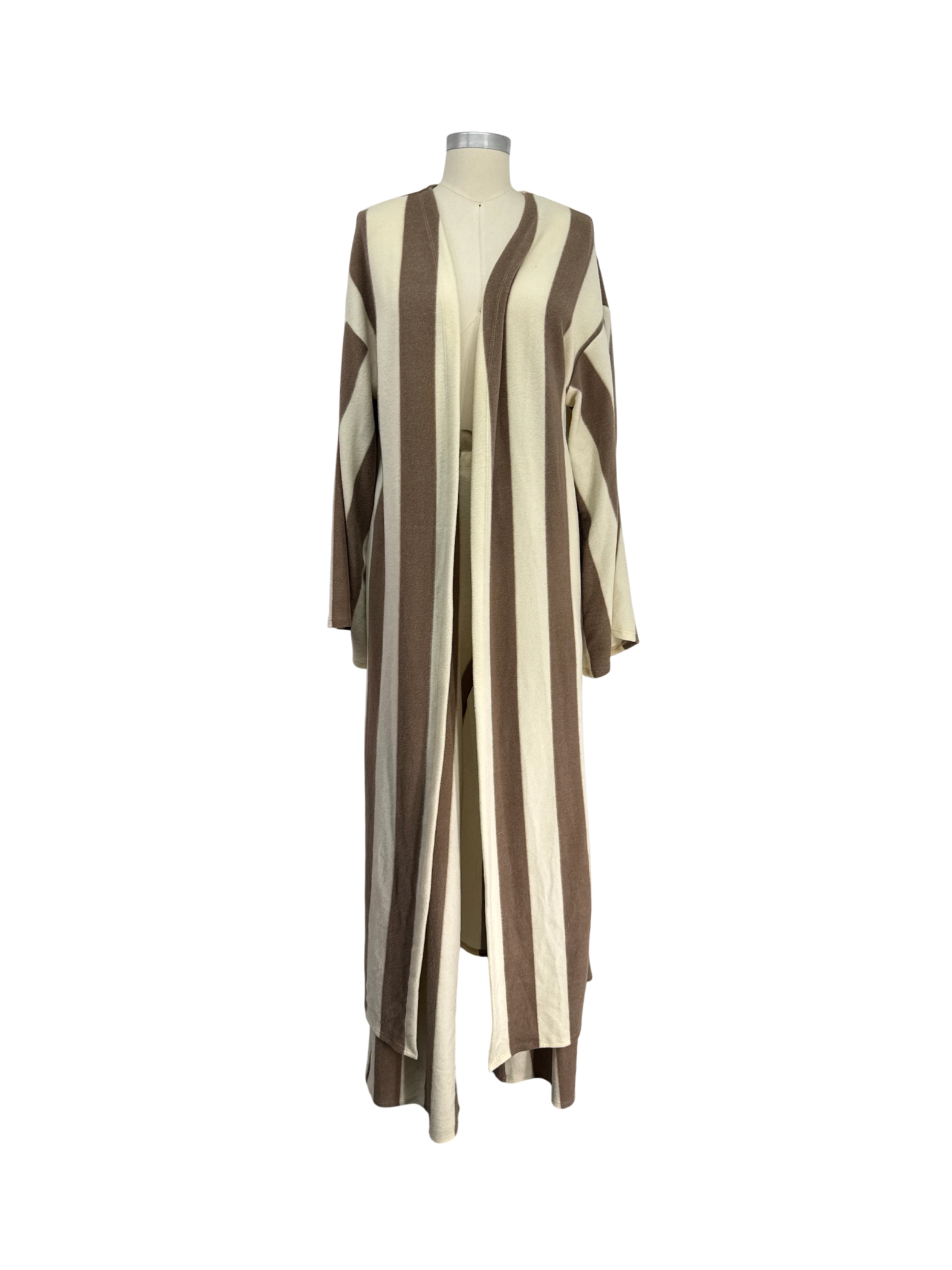 Elevate your loungewear game with this chic, pre-owned Fashion Nova striped set. This stylish ensemble includes a long cardigan and matching pants, perfect for cozy days. The set features a classic striped pattern in brown and ivory, crafted from a comfortable blend of polyester and spandex. Ideal for spring, fall, or winter, it offers a relaxed fit without compromising on style. This set is a versatile addition to any wardrobe, providing both comfort and a touch of contemporary flair.