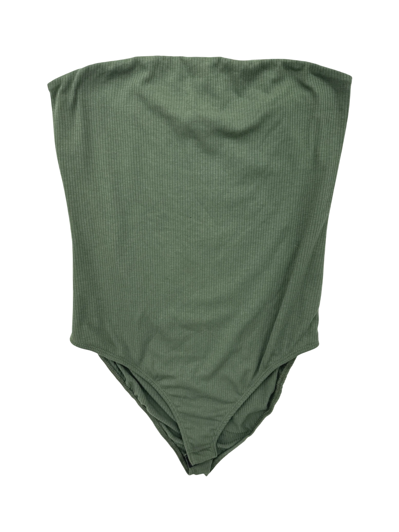 This Fashion Nova bodysuit is a stylish and versatile addition to any wardrobe. Featuring a strapless design and a flattering silhouette, this bodysuit is perfect for layering or wearing on its own. Crafted from a comfortable blend of polyester, rayon, and spandex, this piece offers a smooth and figure-hugging fit. Ideal for spring, summer, or fall, this secondhand Fashion Nova bodysuit is a must-have for the fashion-forward woman.