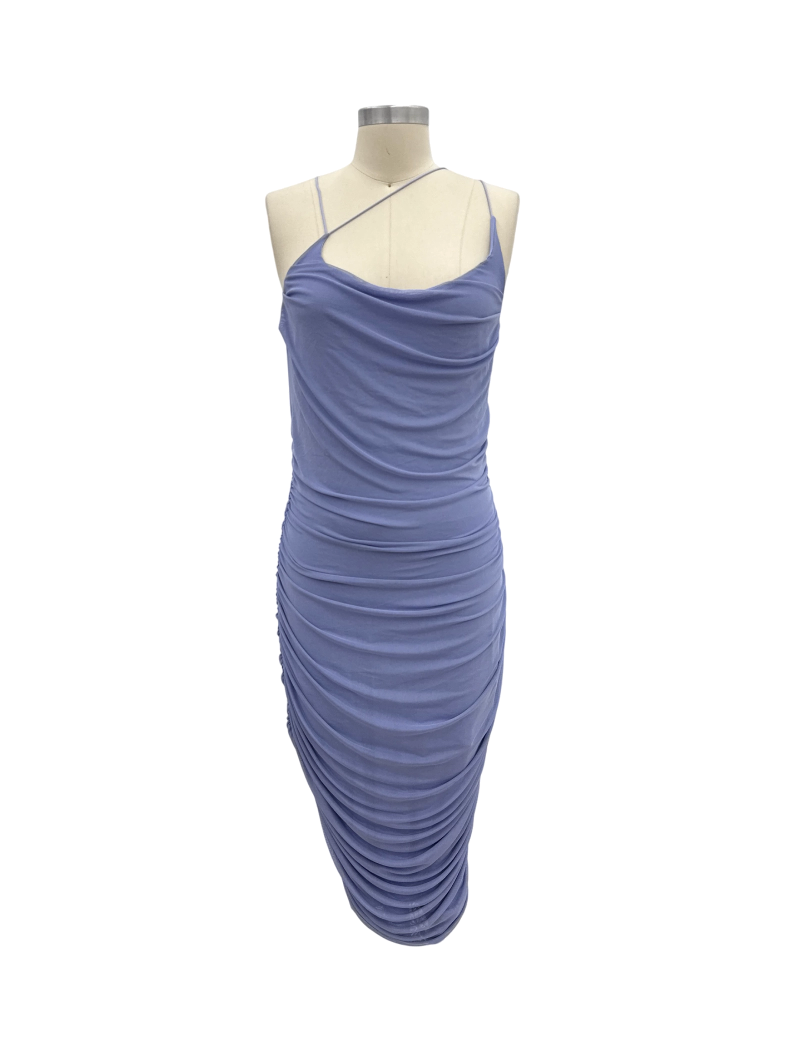 This Fashion Nova bodycon midi dress is perfect for a night out or a special occasion. The dress features a flattering one-shoulder design, ruching, and a body-hugging fit. Made from a comfortable blend of polyester and spandex, this dress offers a stylish and figure-flattering silhouette. It is ideal for warmer weather and easy to dress up or down.
