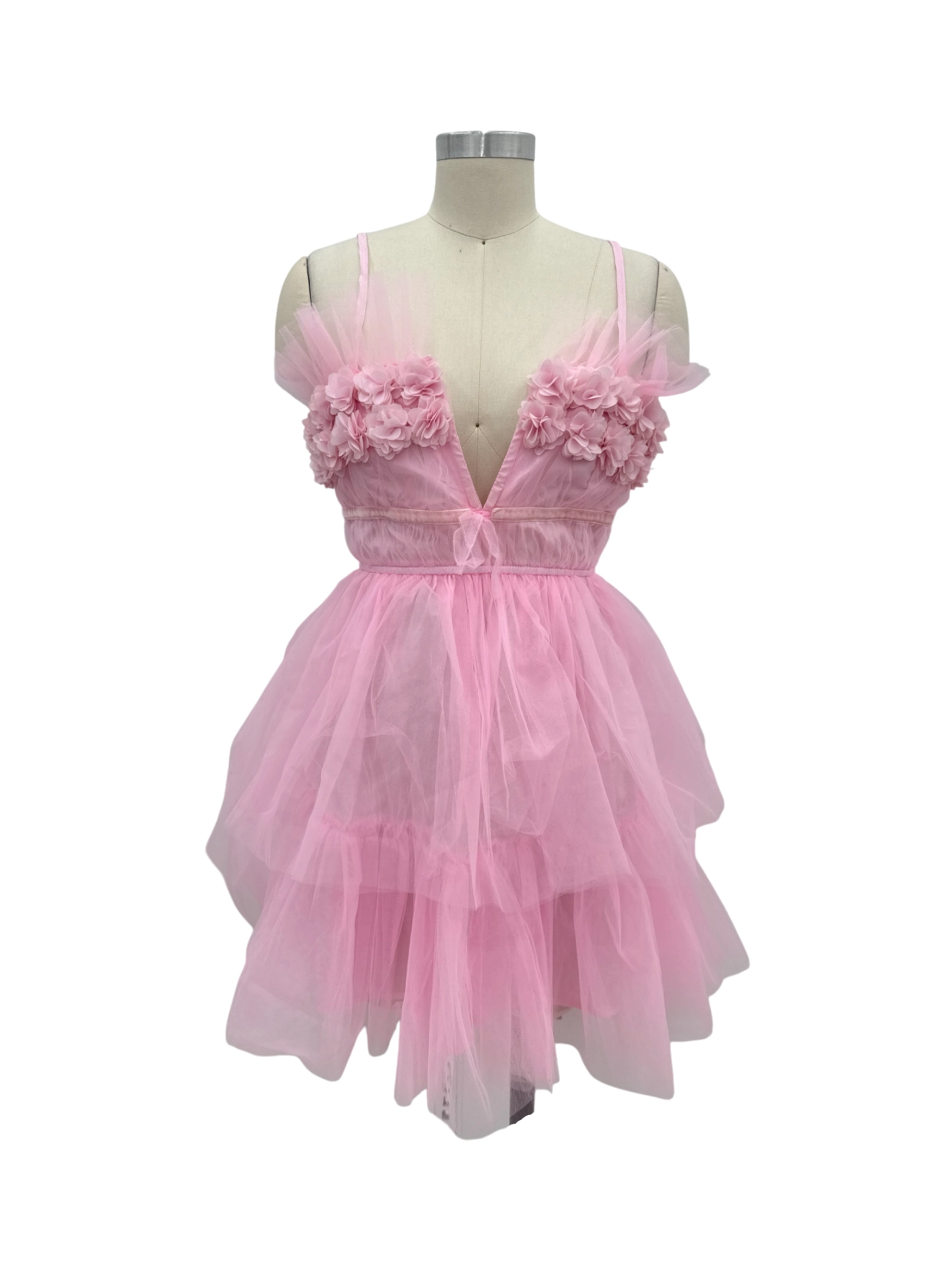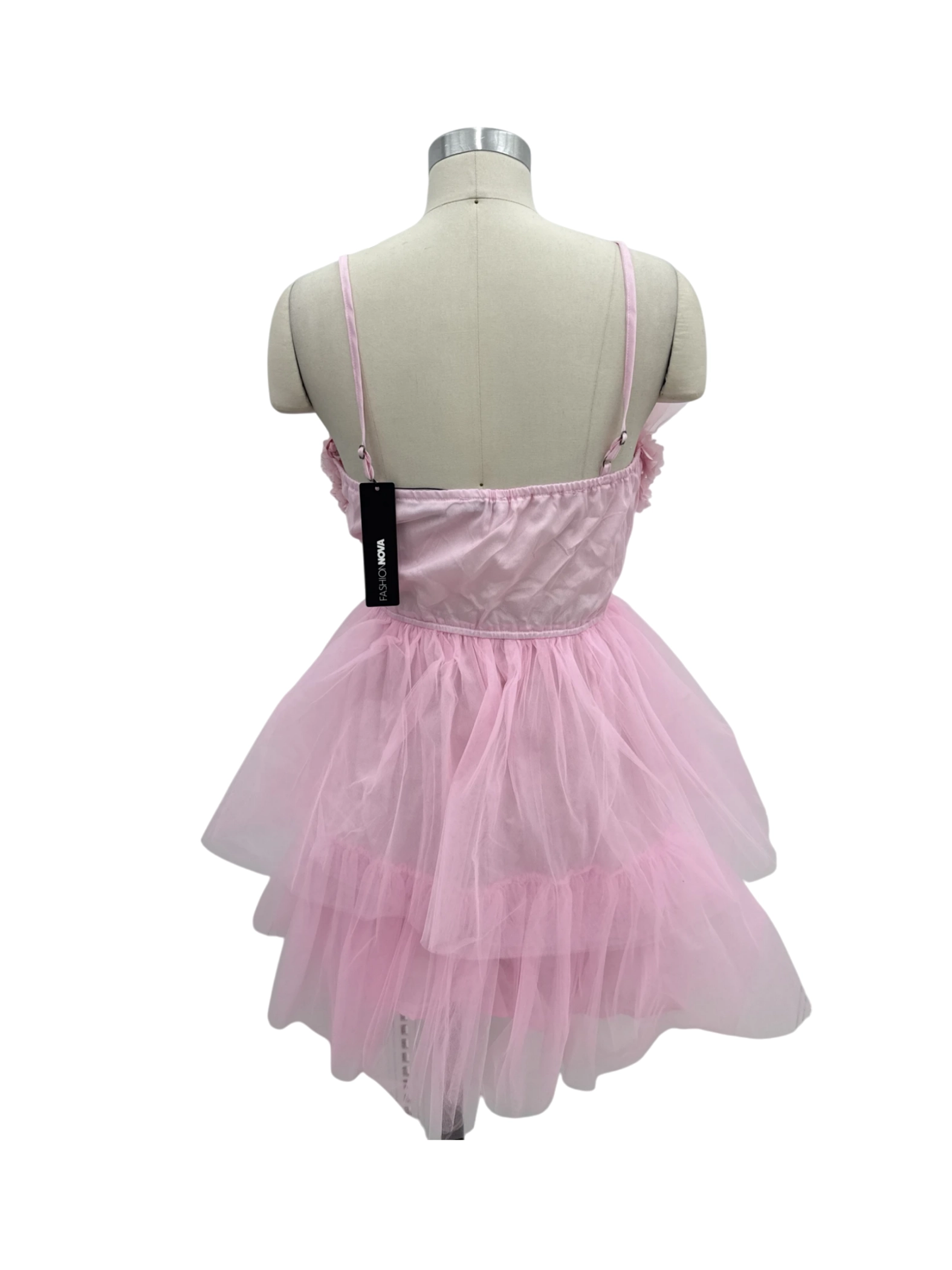This Fashion Nova mini dress is perfect for a special occasion. It features a flattering A-line silhouette, delicate floral details, and a flirty babydoll design. The soft pink color and tulle skirt make it ideal for spring and summer events. Made from high-quality polyester, this pre-owned dress is in excellent condition and ready to make a statement. Perfect for a cocktail party or a garden gathering.