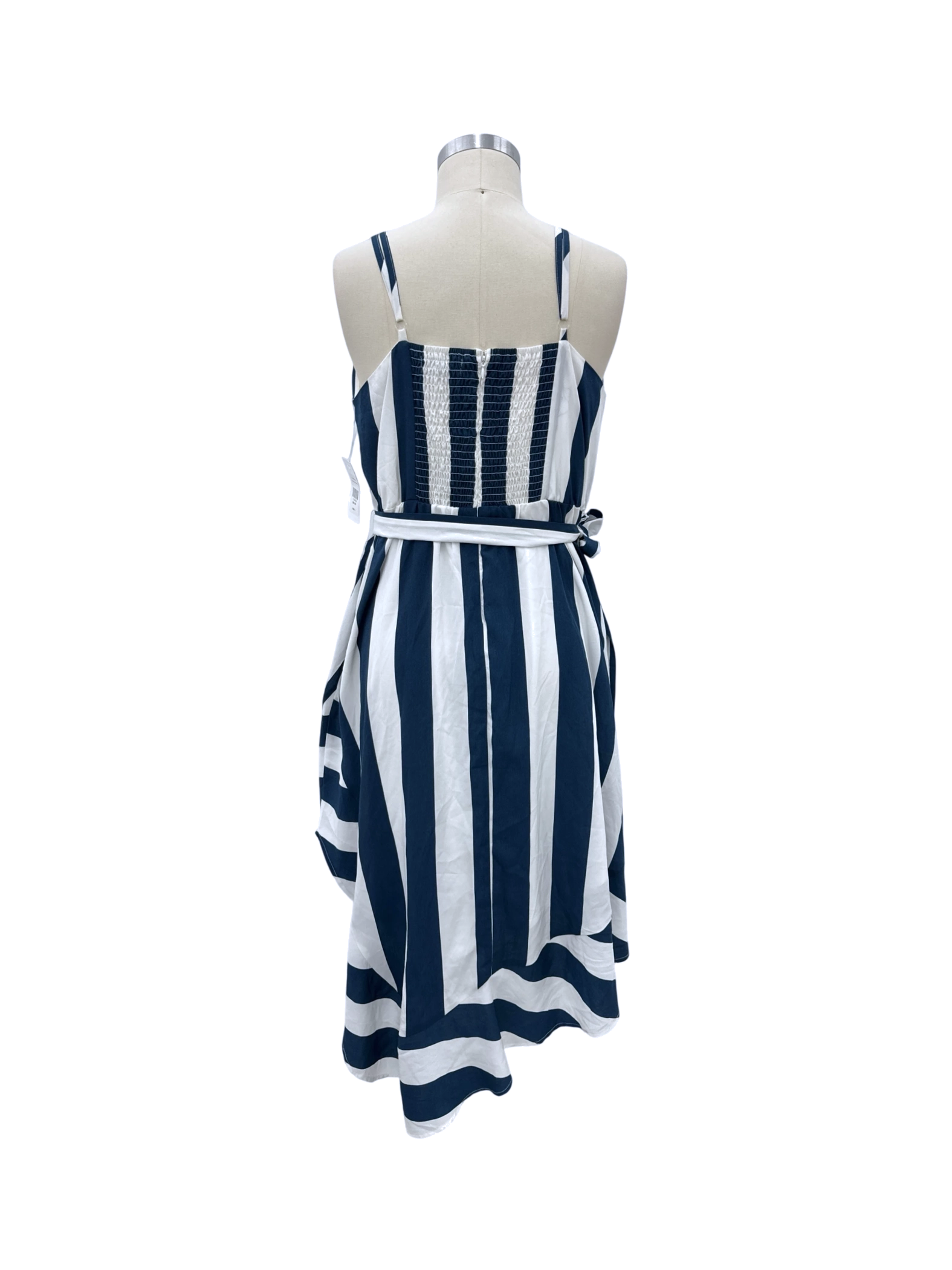 This beautiful Fashion to Figure dress is perfect for a summer day. Featuring a flattering A-line silhouette, this dress has a stunning vertical stripes pattern with a V-neckline. Made from 100% polyester fabric, it is comfortable, lightweight, and easy to care for. Ideal for casual outings, this dress offers a stylish and feminine look. This dress is a great addition to your wardrobe.