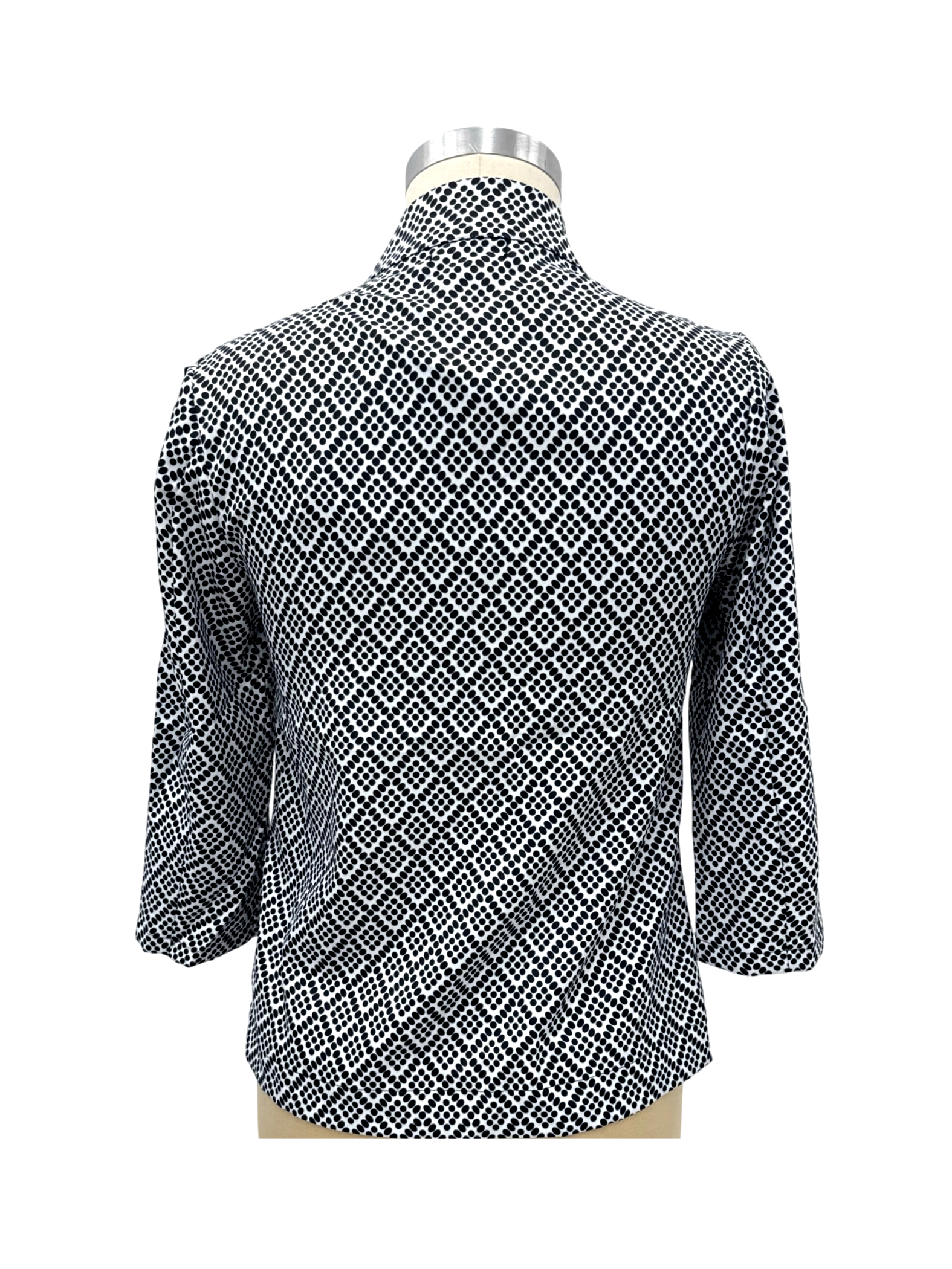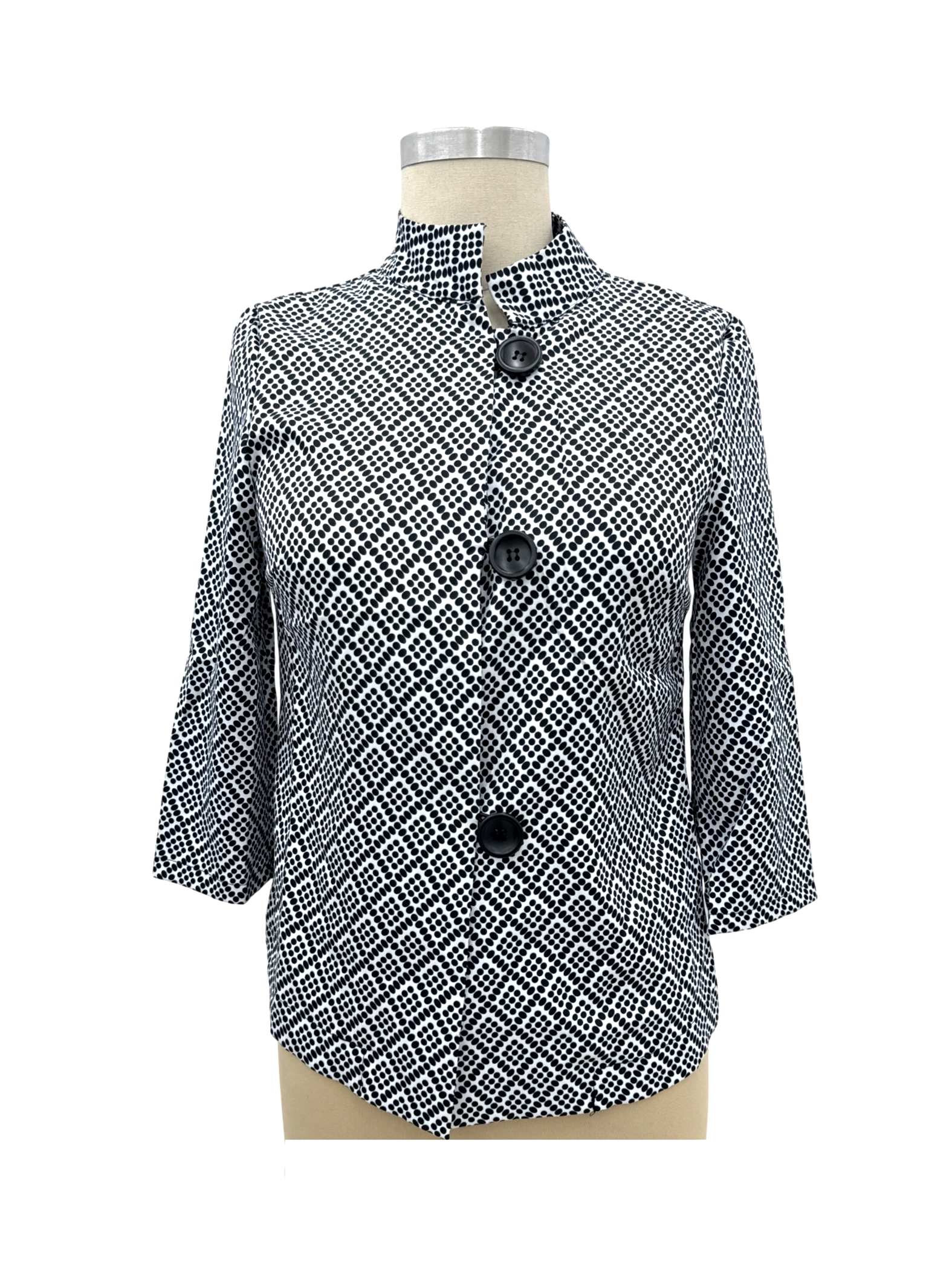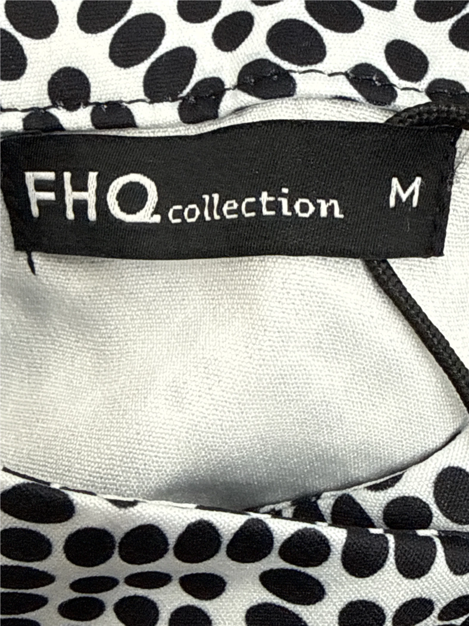 Elevate your wardrobe with this stylish FHQ Collection blazer. This pre-owned jacket features a chic black and white geometric pattern, perfect for adding a touch of sophistication to any outfit. Made from durable polyester, it's designed for comfort and long-lasting wear. The blazer comes in a Medium size and is ideal for spring and fall. A versatile piece that can be dressed up or down.