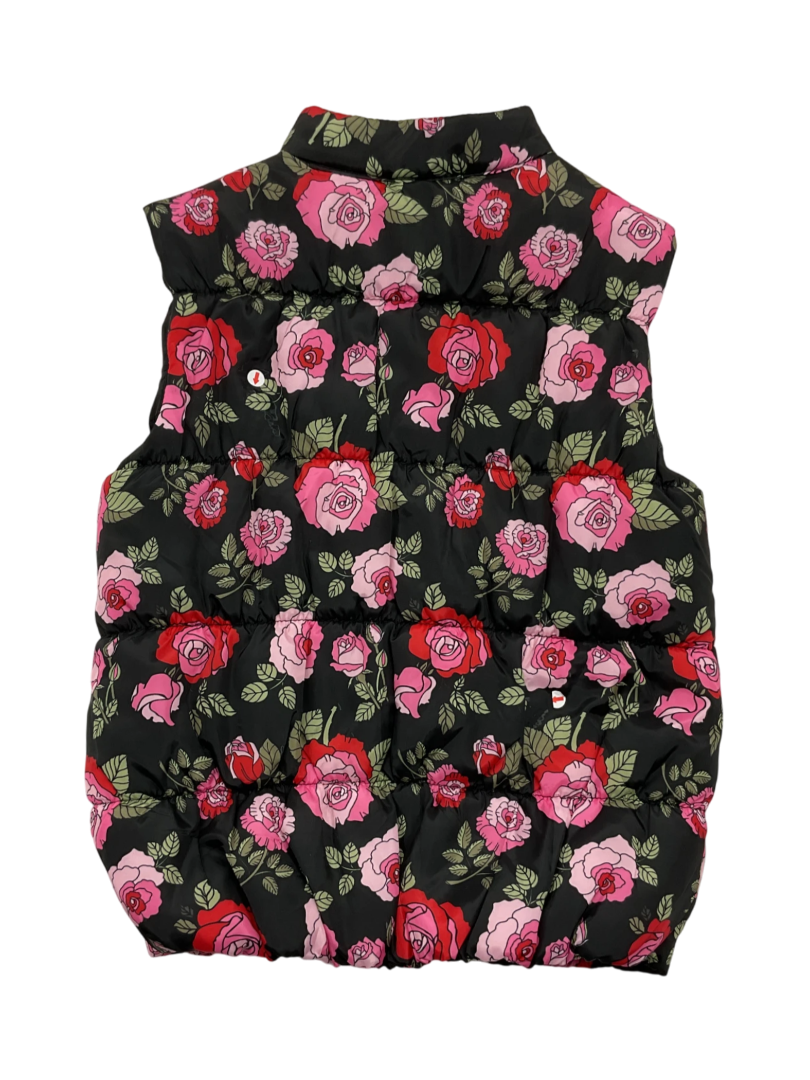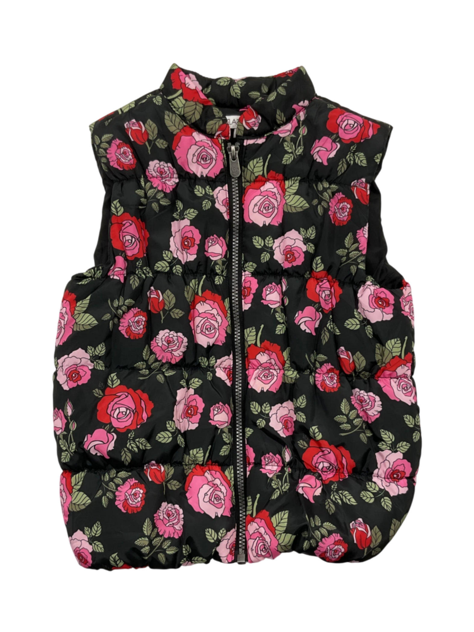 FlapDoodle black and pink floral puffer vest for girls in size 6x.