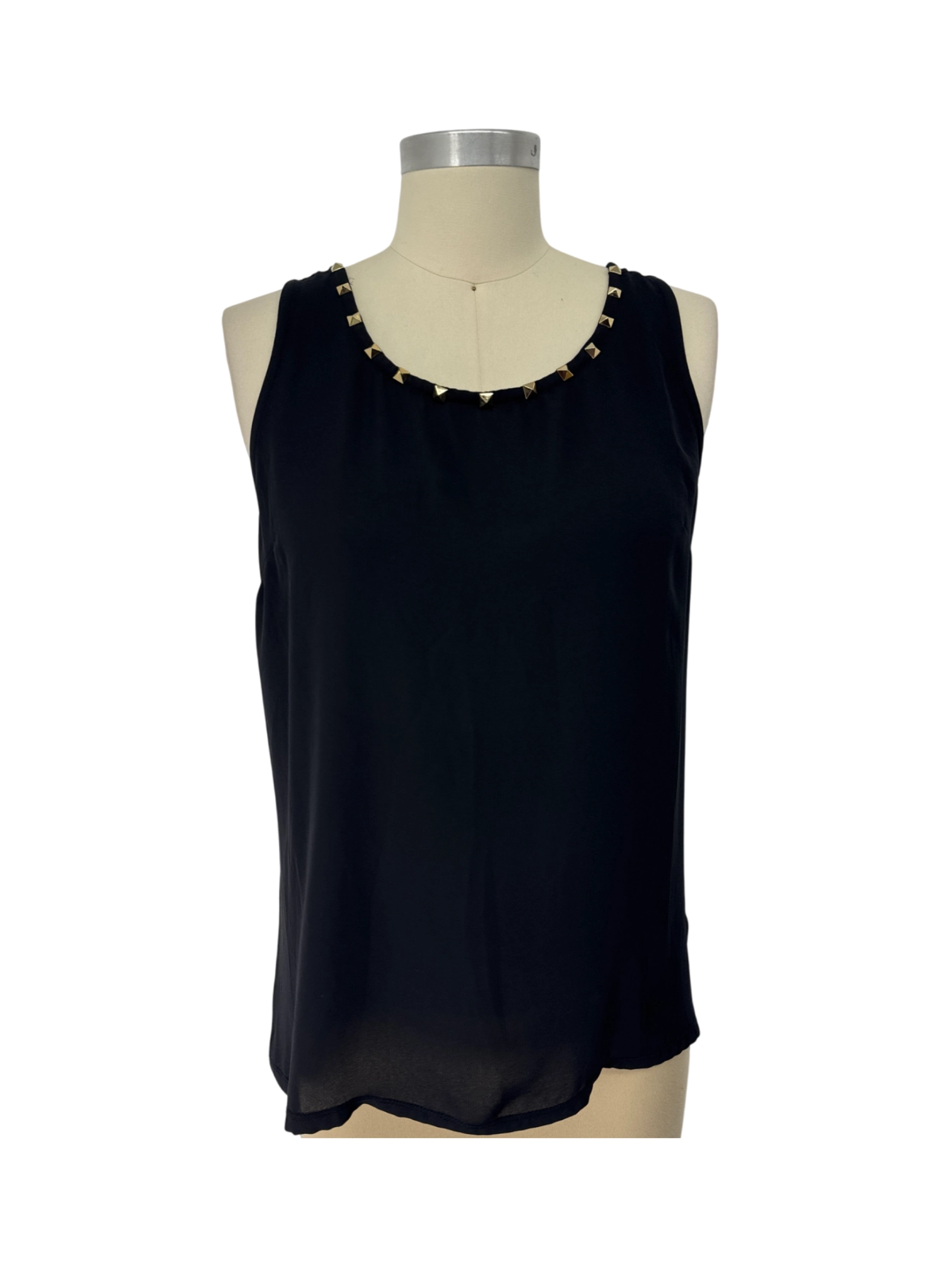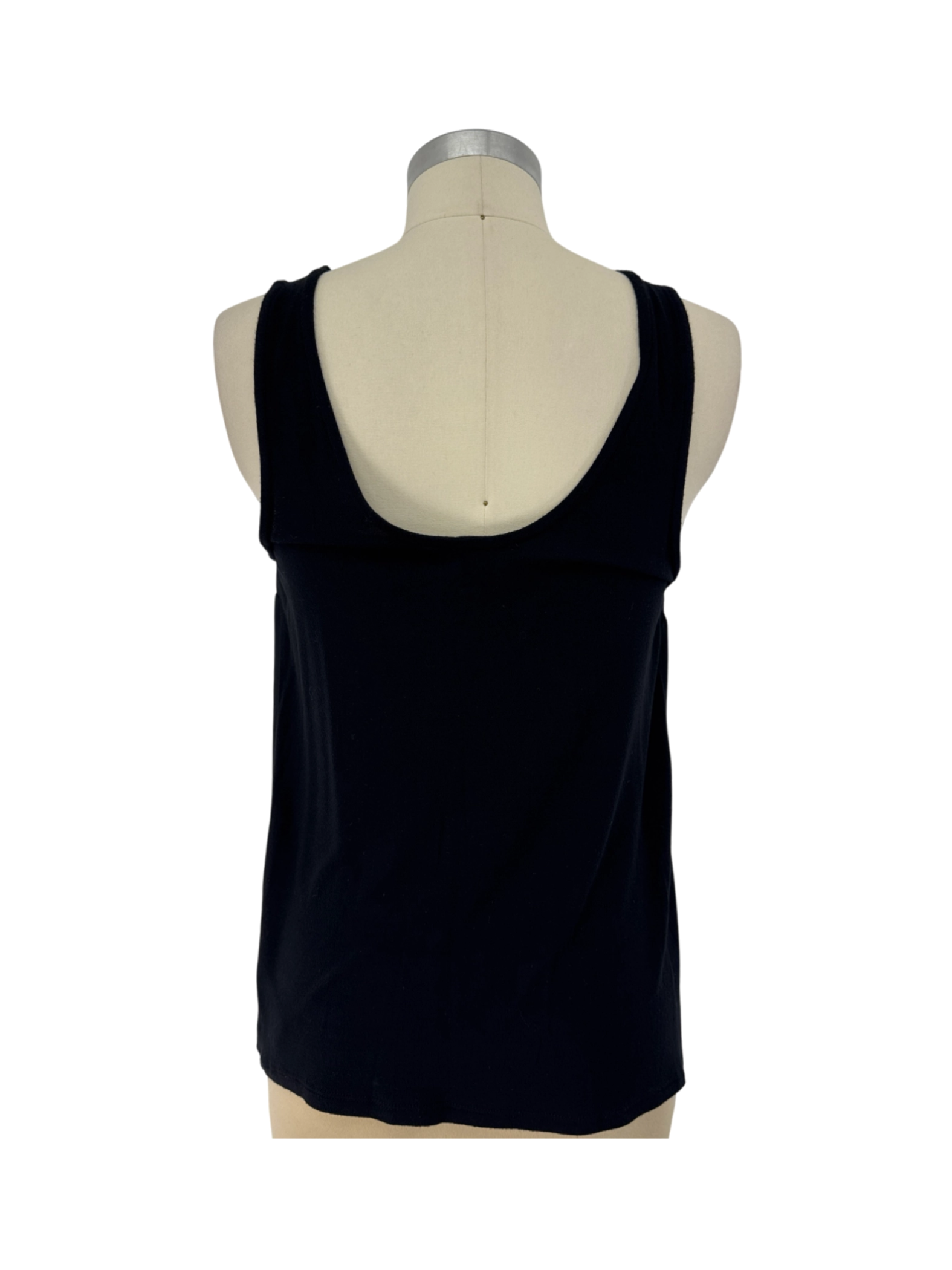 Elevate your wardrobe with this stylish Forever 21 tank top. This black tank top features a scoop neck and is perfect for warm weather. Made from a comfortable blend of polyester and rayon, this tank top is easy to care for and wear. Perfect for layering or wearing on its own, this top is a must-have addition to your collection. The tank top is a versatile piece that can be dressed up or down for any occasion.