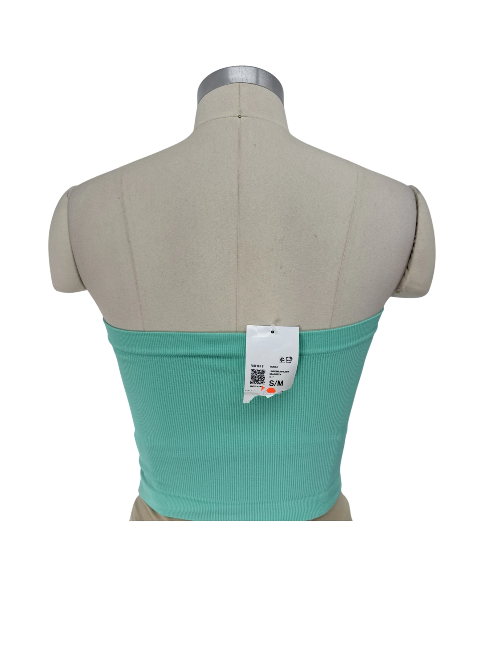 Elevate your summer wardrobe with this stylish Forever 21 tube top in a refreshing teal color. This cropped top is a versatile addition to any closet, perfect for pairing with high-waisted shorts, skirts, or jeans. Made from a comfortable blend of nylon and spandex, this pre-loved top offers a flattering fit and a chic, minimalist design. Ideal for casual outings or layering under a jacket for a night out.