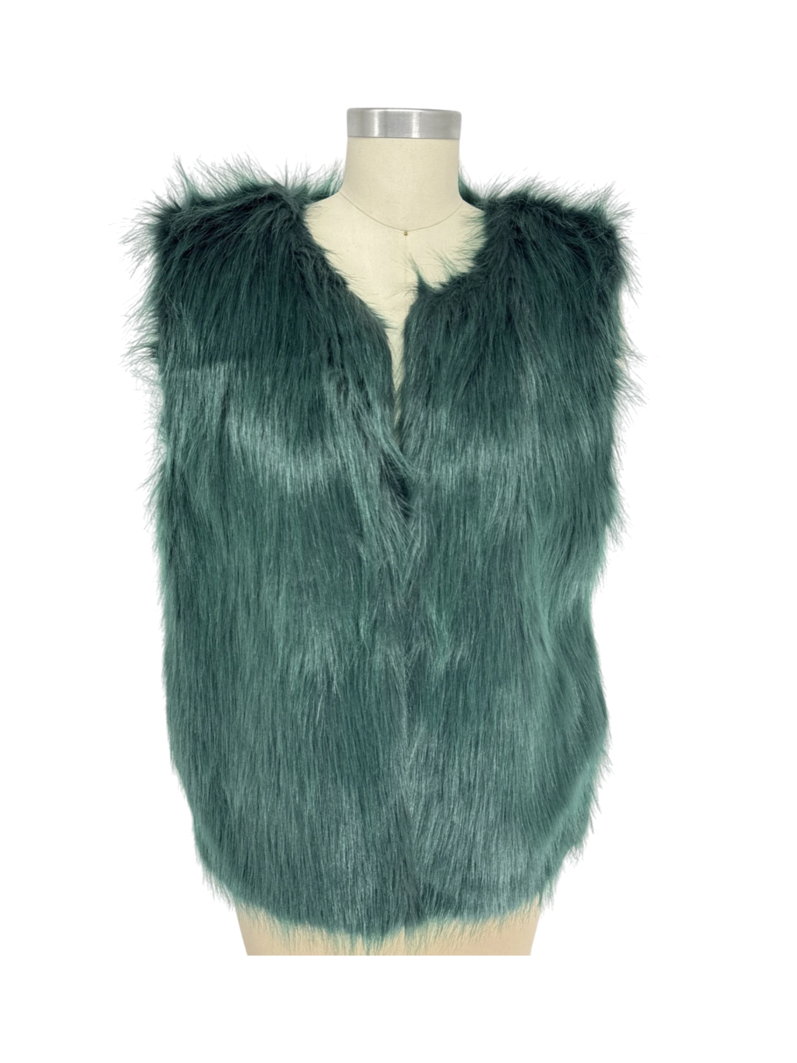 Elevate your style with this pre-owned Forever 21 faux fur vest. This stylish outerwear features a luxurious green faux fur exterior, a flattering V-neckline and an open front design. The vest is perfect for adding a touch of glamour to any outfit. Made with a blend of acrylic and polyester, it offers both comfort and durability. Ideal for layering during colder months, this versatile vest adds a chic edge to both casual and dressy ensembles.