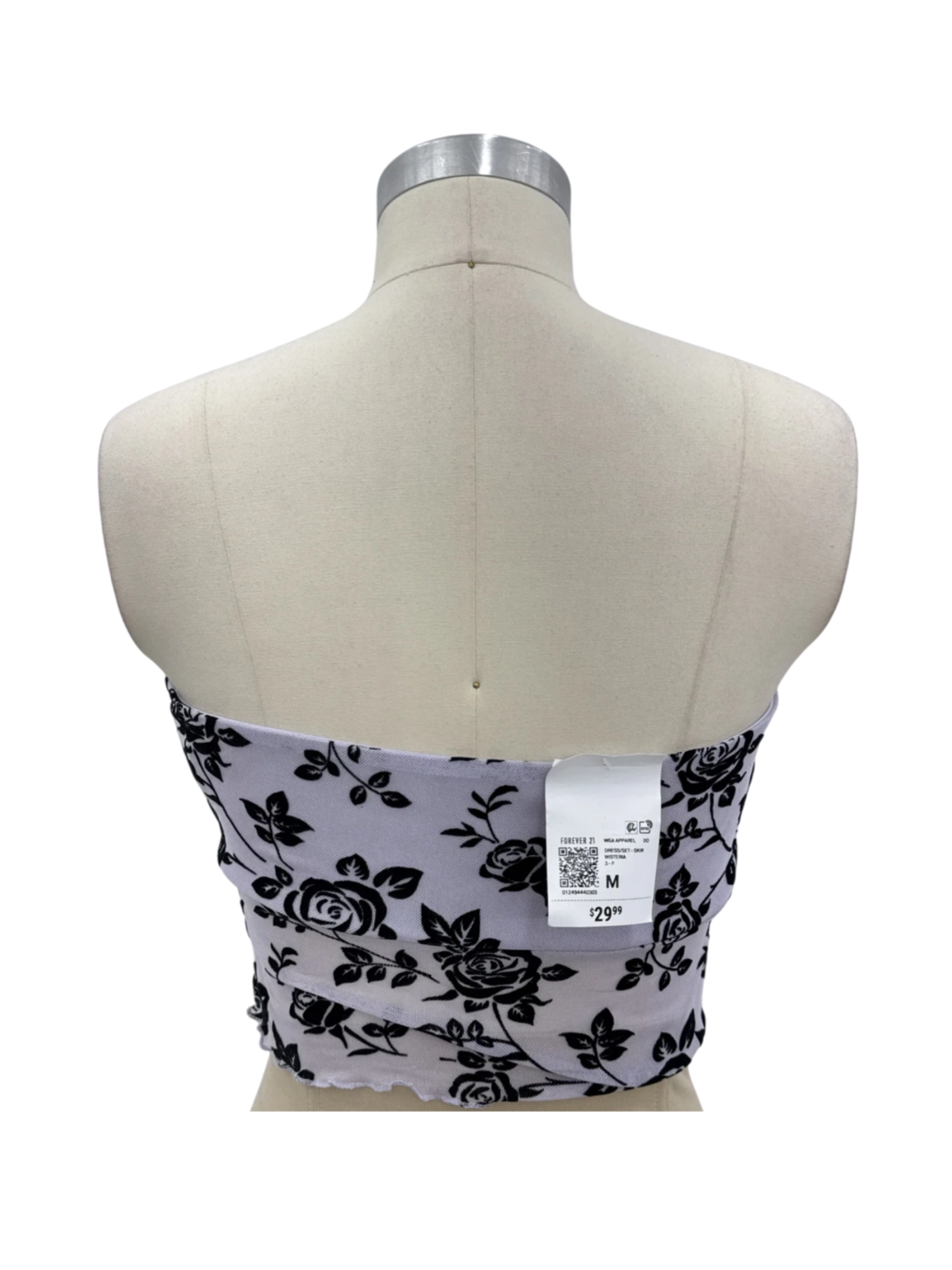 This Forever 21 top is a stylish and trendy choice for any summer day. Featuring a strapless design and cropped length, this top is perfect for pairing with high-waisted bottoms. The allover floral print adds a touch of femininity, while the lightweight fabric keeps you cool and comfortable. Ideal for casual outings, festivals, or a night out. This pre-owned tube top is in great condition and ready to elevate your wardrobe.