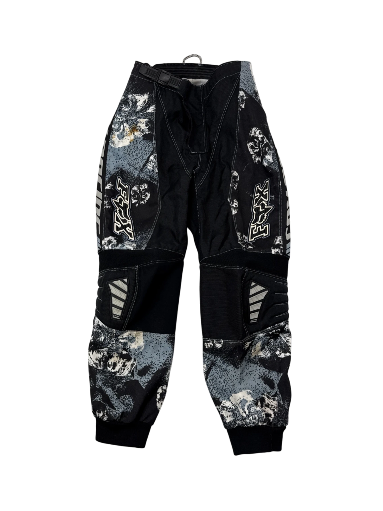 Used Fox Racing 180 motocross pants for boys. These pants are designed for performance and durability with a camouflage and black design. Ideal for motocross enthusiasts, they offer protection and style. These pre-owned pants provide a great value for young riders.