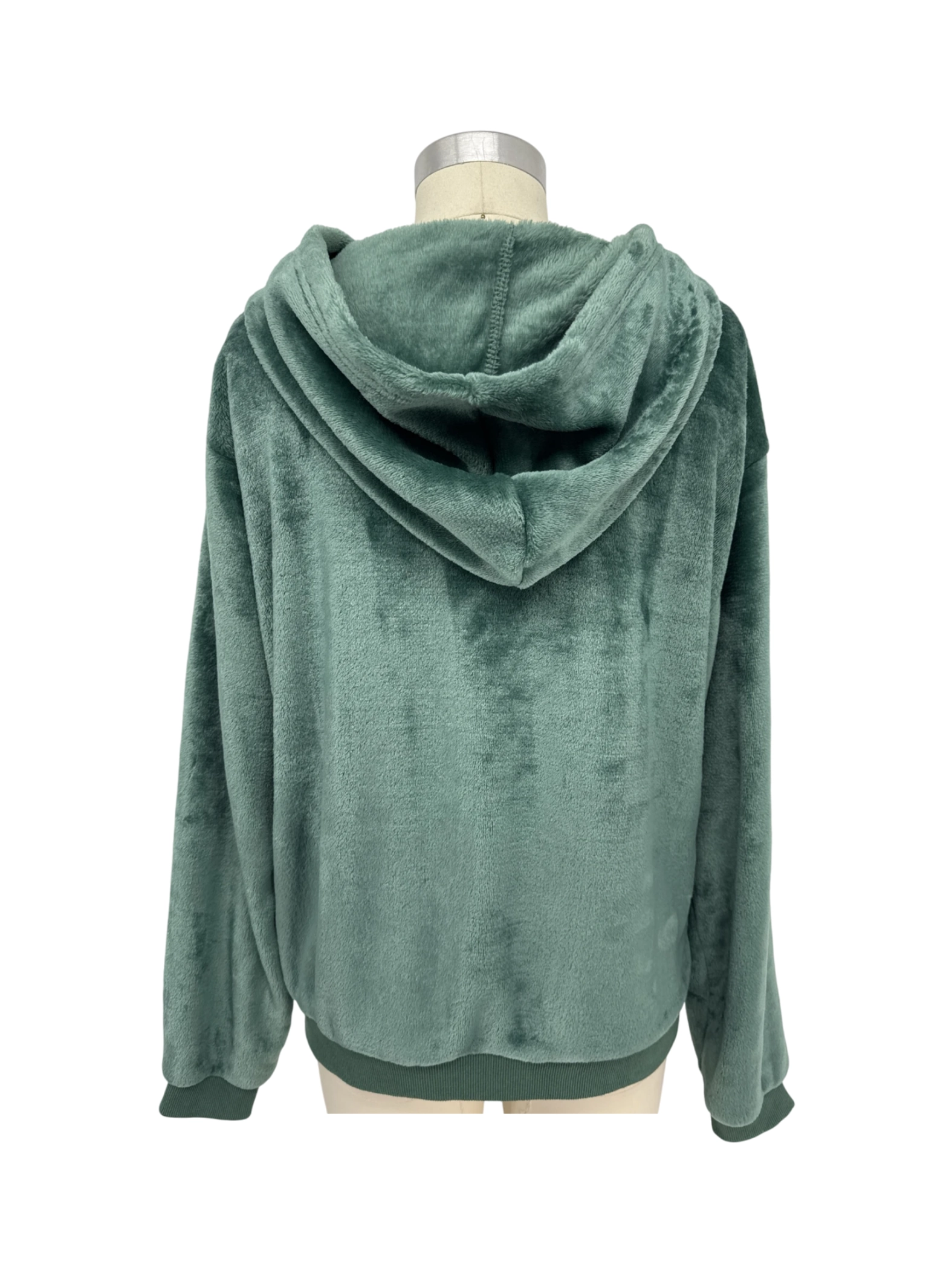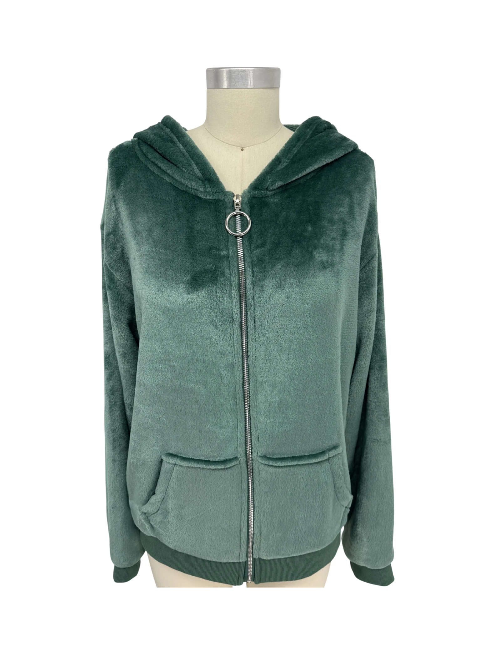 Embrace cozy comfort with this pre-owned FREE HAVEN hooded jacket. Crafted from soft, plush polyester fabric, this jacket offers a luxurious feel and warmth. Featuring a full zip closure, hood and two side pockets, it is perfect for those chilly days. The rich green color adds a touch of elegance to your casual outfits. Available in size M.