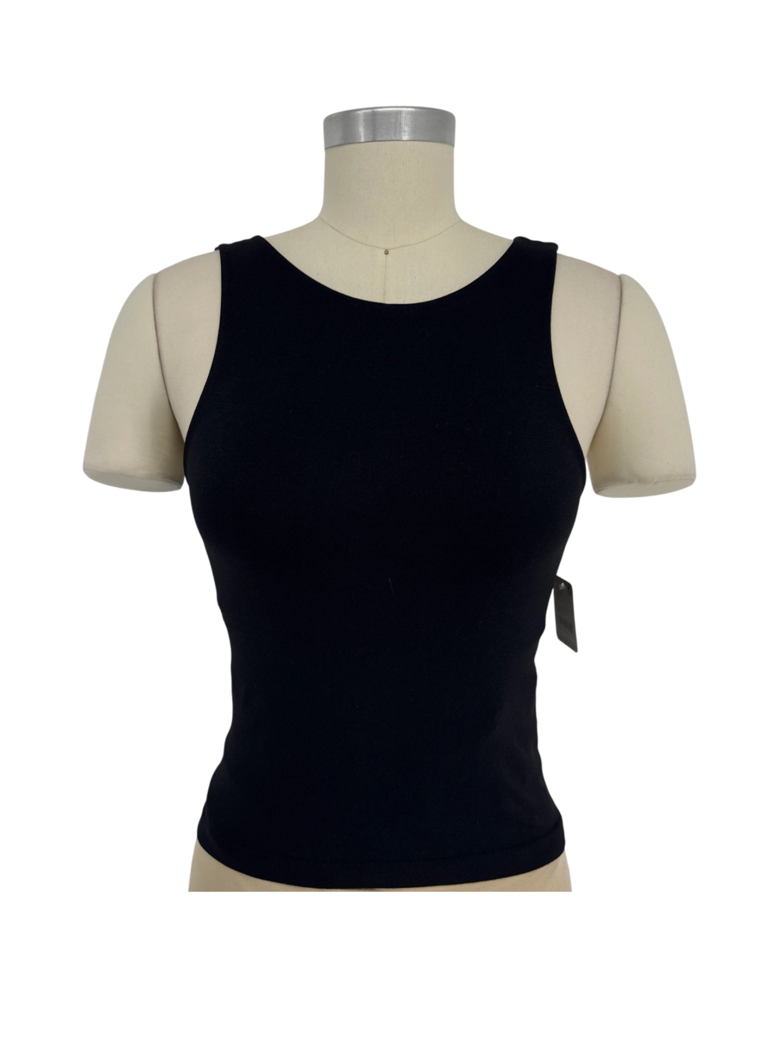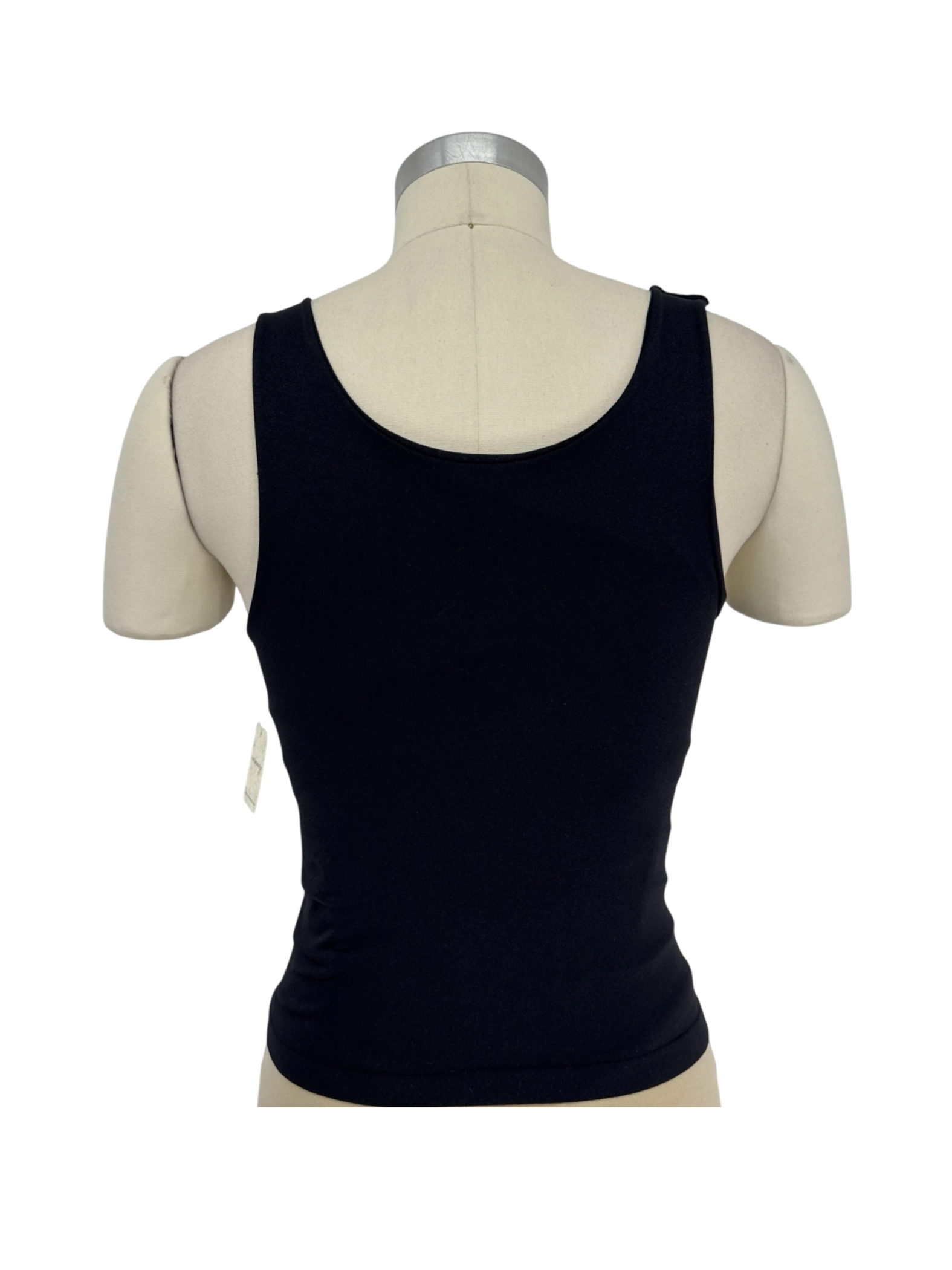 This Free People tank top is a versatile wardrobe essential. Made with a comfortable blend of nylon and spandex, it features a flattering round neckline and a sleeveless design, perfect for warm weather. The sleek black color makes it easy to pair with any outfit, from casual jeans to a dressy skirt. This gently used tank top offers a stylish and sustainable choice for your closet.
