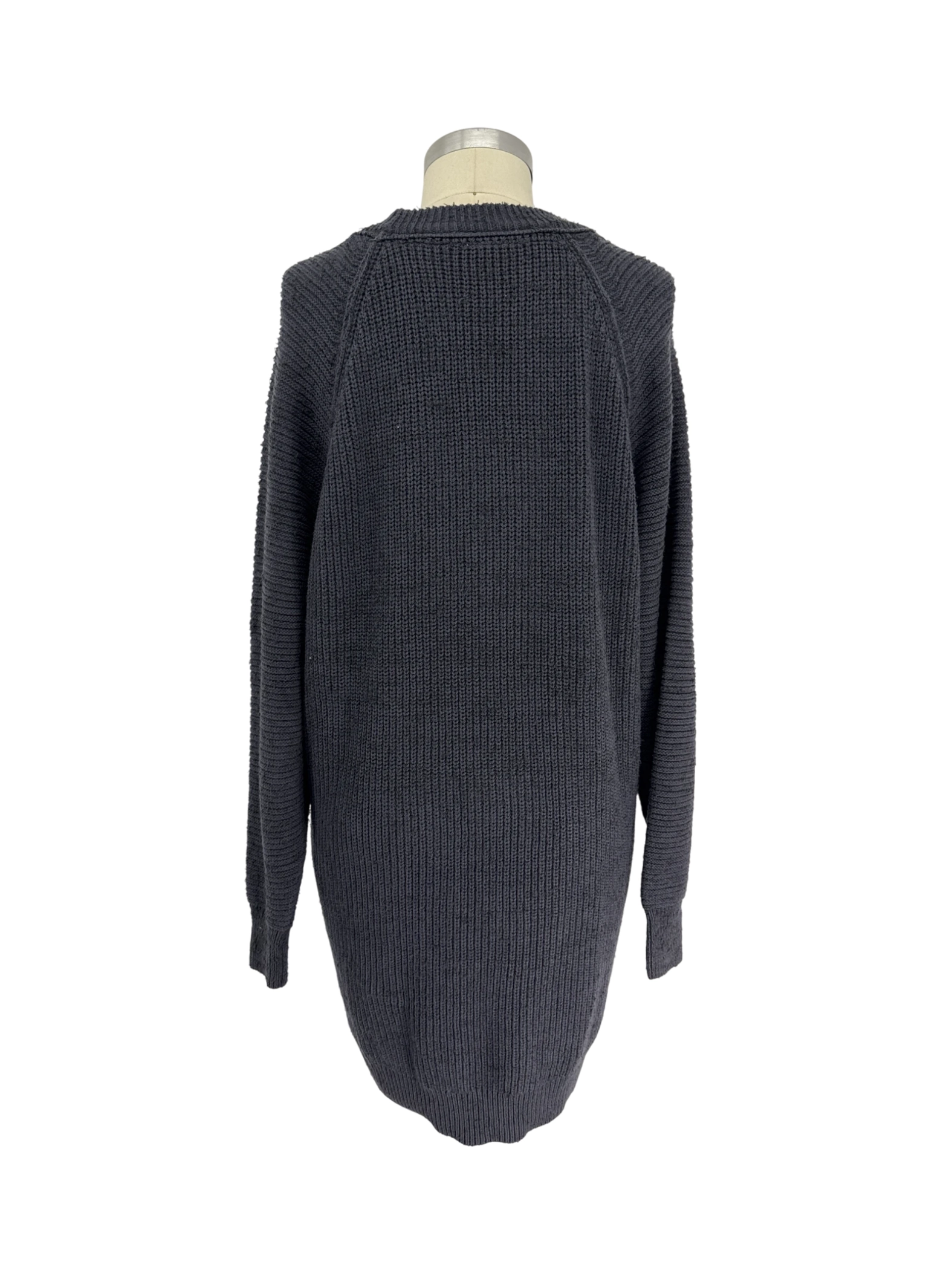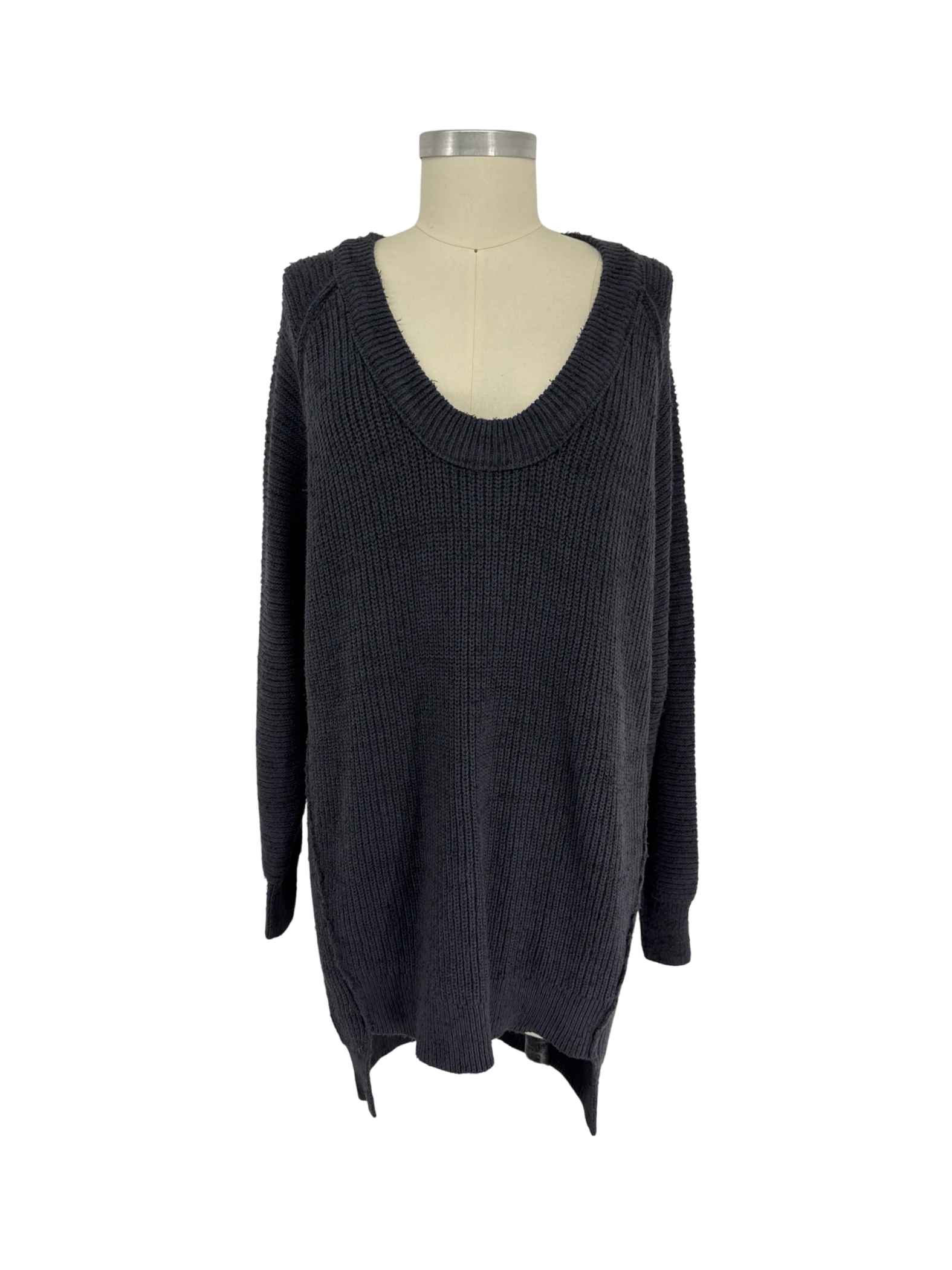 Elevate your fall and winter wardrobe with this pre-loved Free People sweater dress. Crafted from a comfortable cotton blend, this gray mini dress features a flattering scoop neck and long sleeves. Perfect for casual outings, this dress combines style and comfort effortlessly. Add this versatile piece to your collection and experience Free People's signature bohemian chic.
