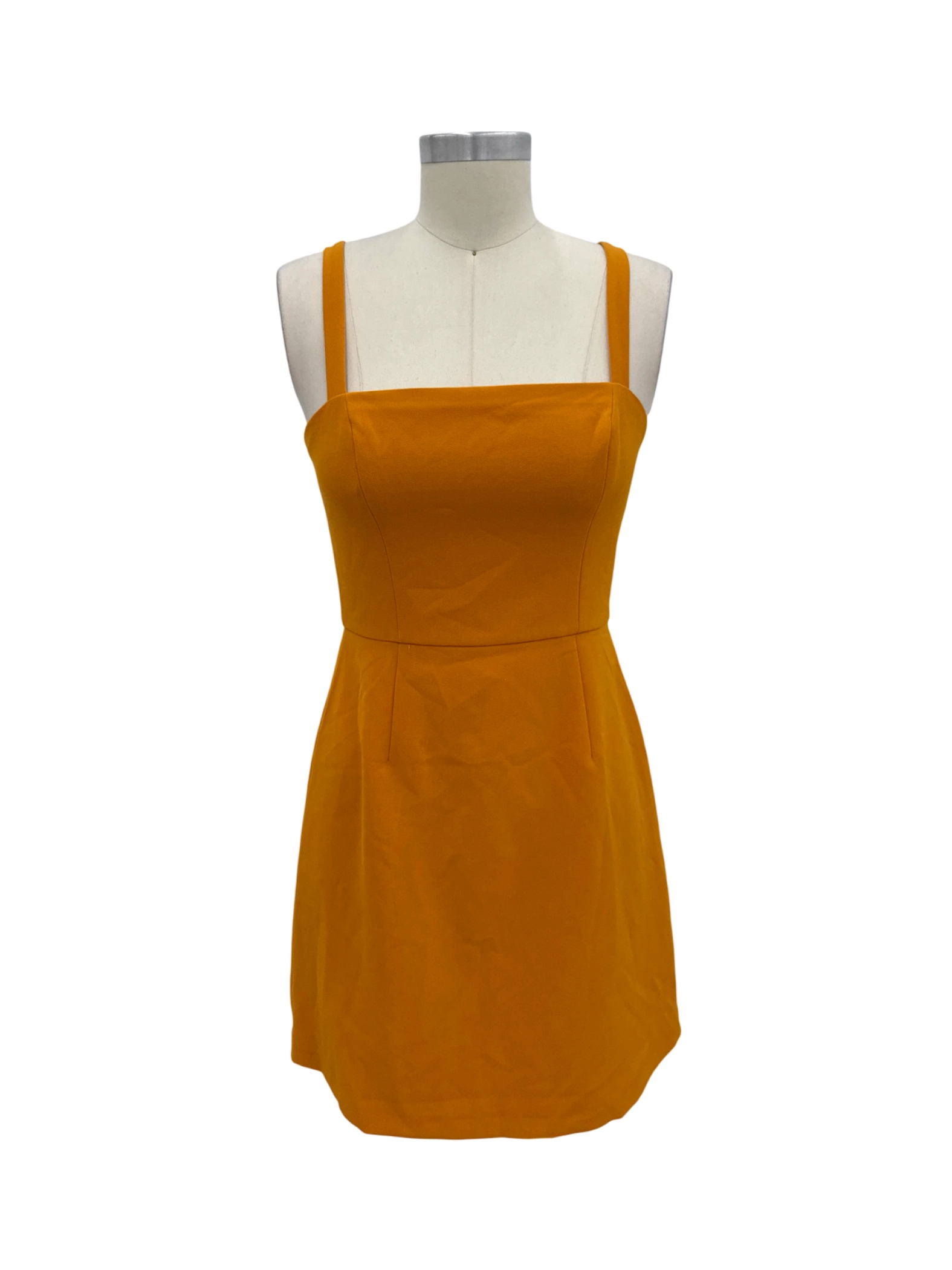 Elevate your summer wardrobe with this stylish pre-owned French Connection mini dress. This vibrant mustard-colored dress features a flattering A-line silhouette, perfect for warm weather. Crafted from a comfortable polyester blend, this dress offers a sleek, modern look. The square neckline and sleeveless design provide a chic touch. Ideal for casual outings, it's a versatile piece that easily transitions from day to night. Get ready to turn heads in this must-have dress!