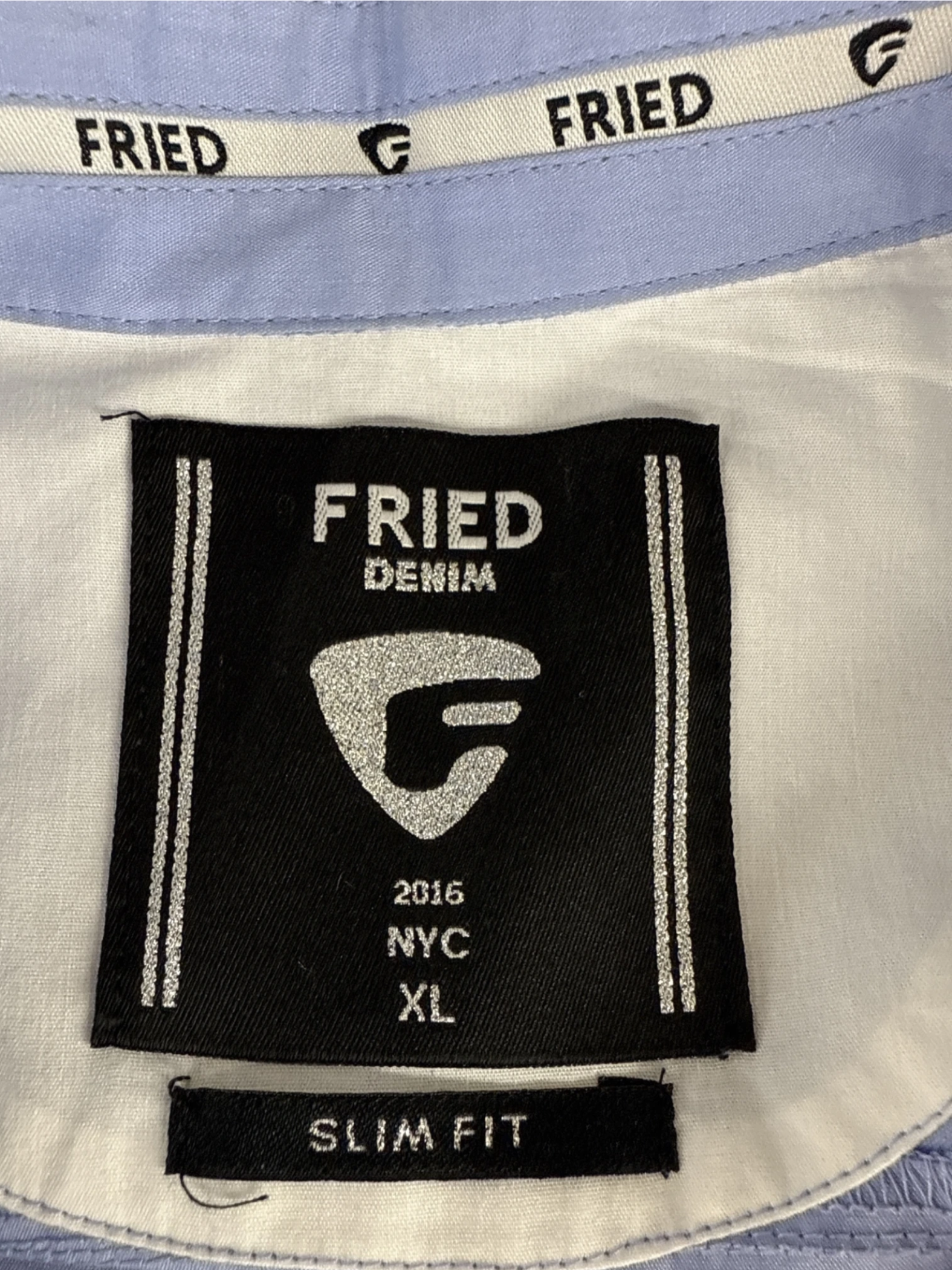 Elevate your wardrobe with this stylish pre-owned FRIED Denim long sleeve shirt. Featuring a classic button-up design and a comfortable cotton fabric, this shirt is perfect for any casual occasion. The blue color is accented with white stripes, creating a modern look. Ideal for spring, this shirt combines comfort and style, making it a versatile addition to your collection. Shop now and add a touch of cool sophistication to your everyday wear.