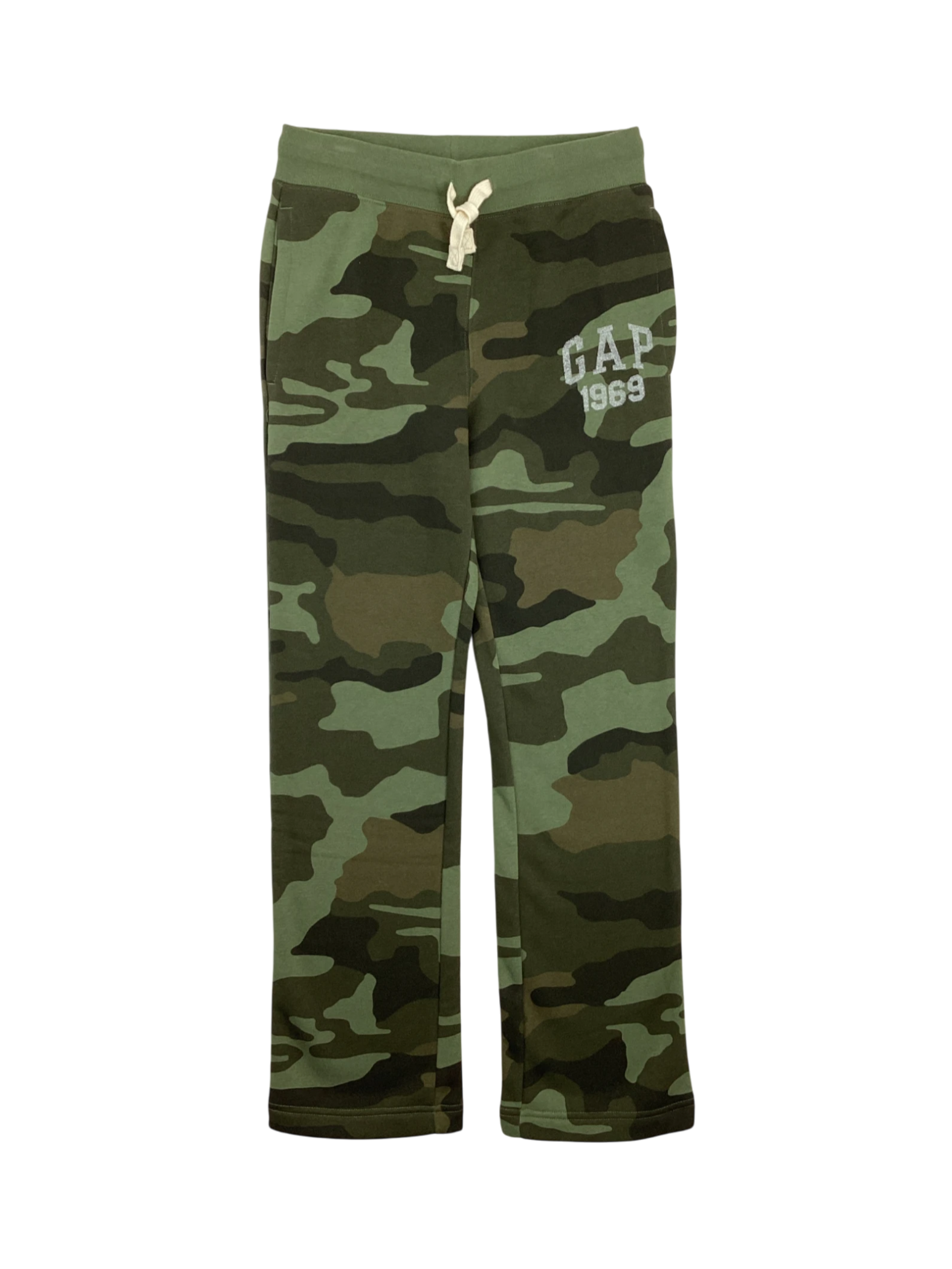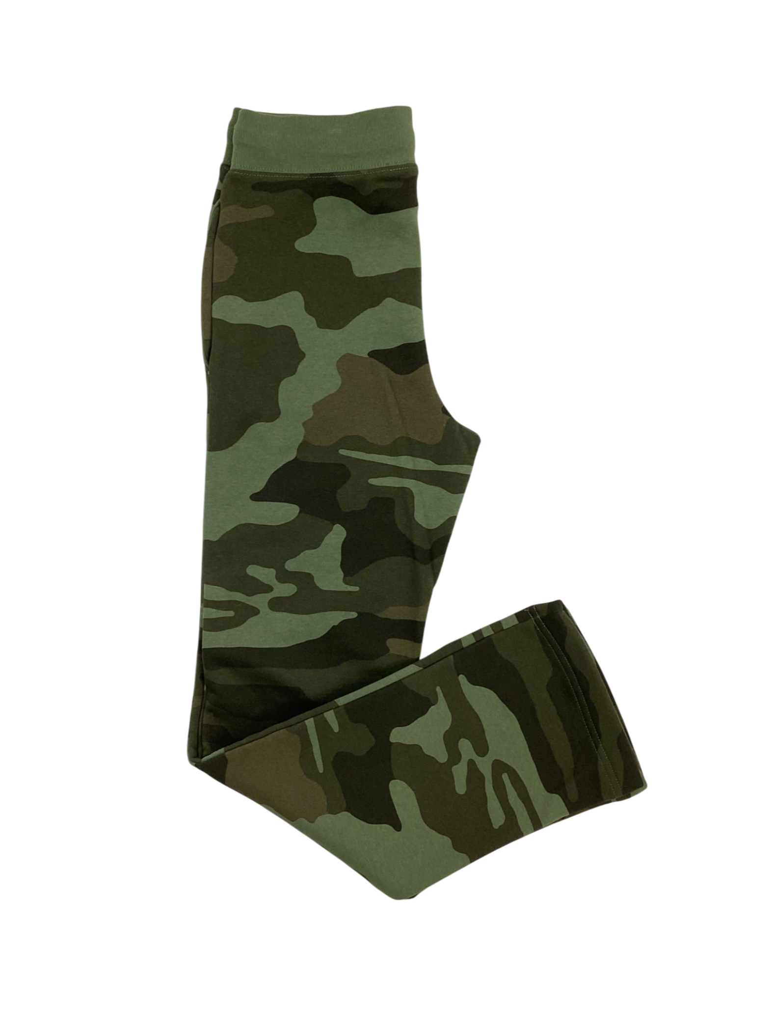 Girls' camouflage sweatpants with drawstrings in size XL for kids.