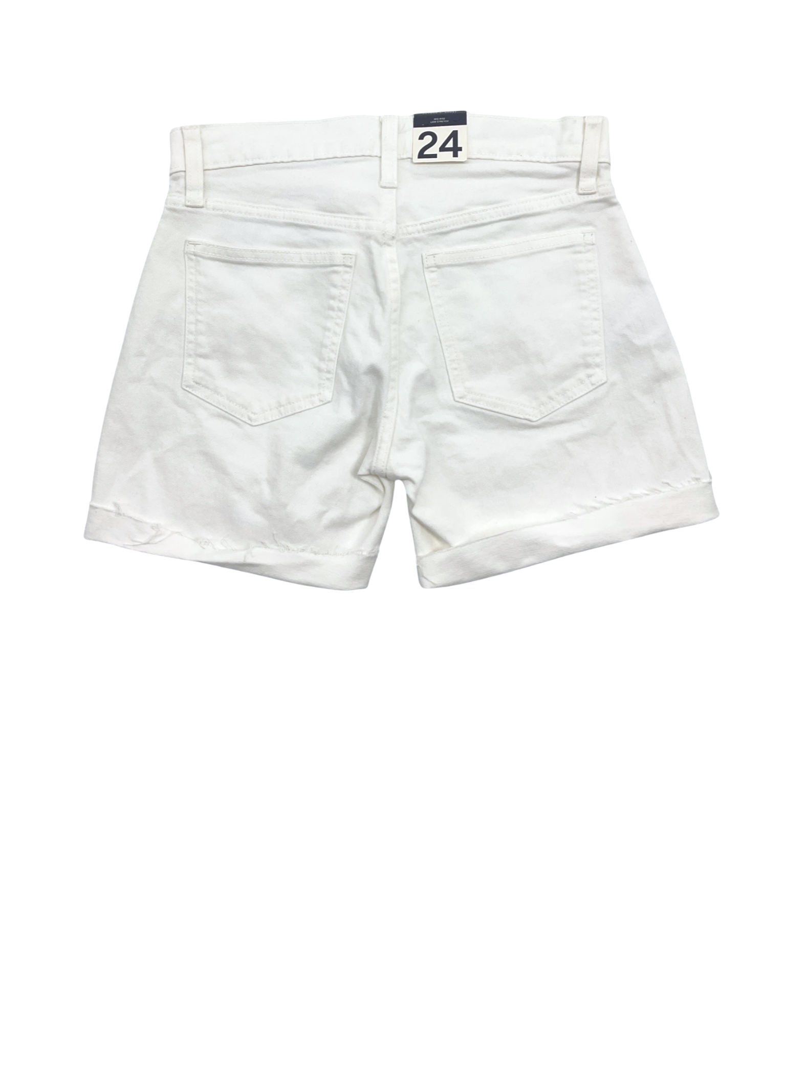 These pre-owned GAP denim shorts are the perfect addition to your summer wardrobe. They feature a classic high-waisted design and a crisp white color, making them versatile for any outfit. Made from a durable cotton blend with a touch of spandex for comfort, these shorts offer a flattering fit. In excellent condition, these GAP shorts are a stylish and sustainable choice. The 5" inseam gives a flattering look, ideal for everyday wear or a casual outing.
