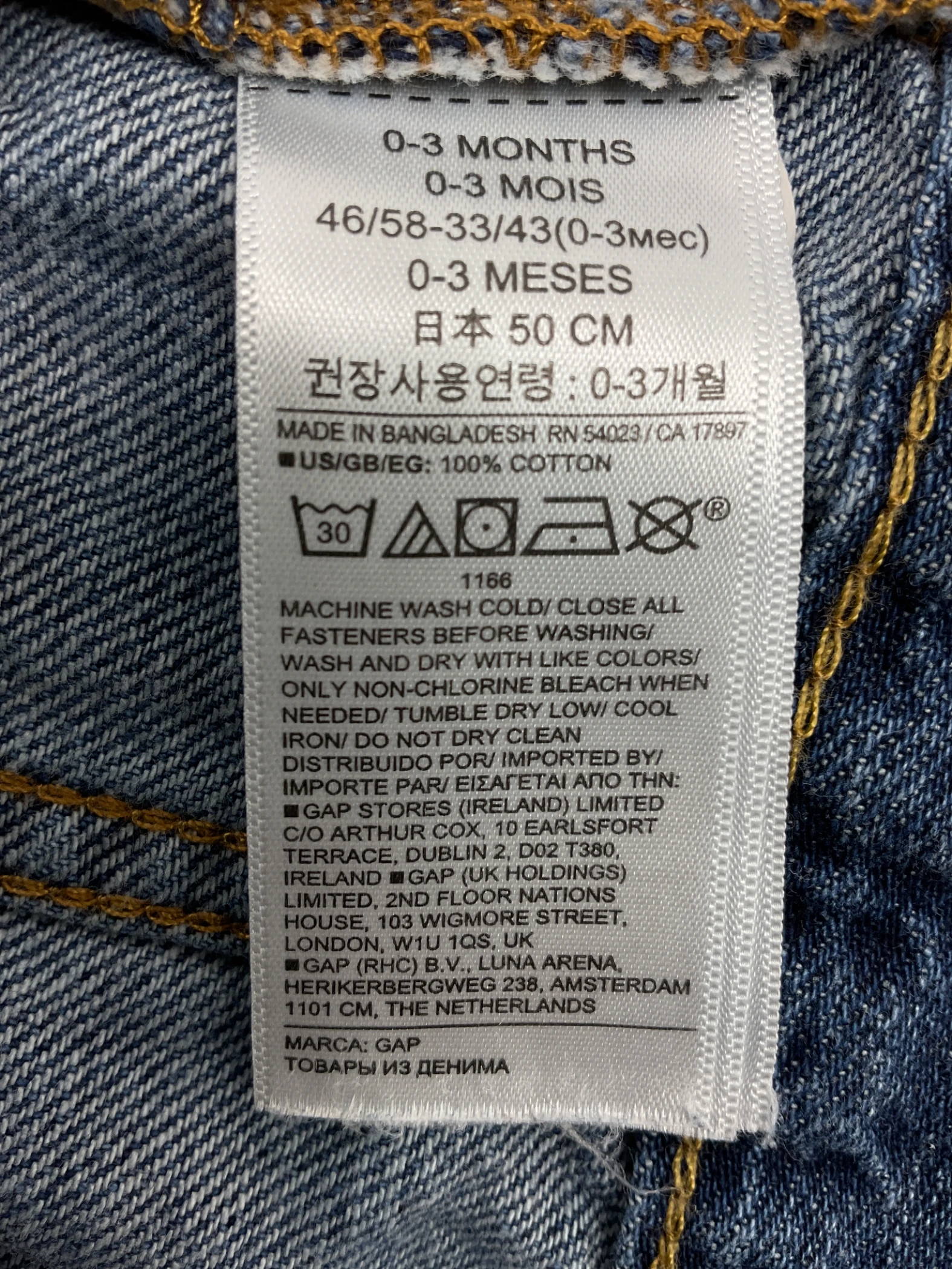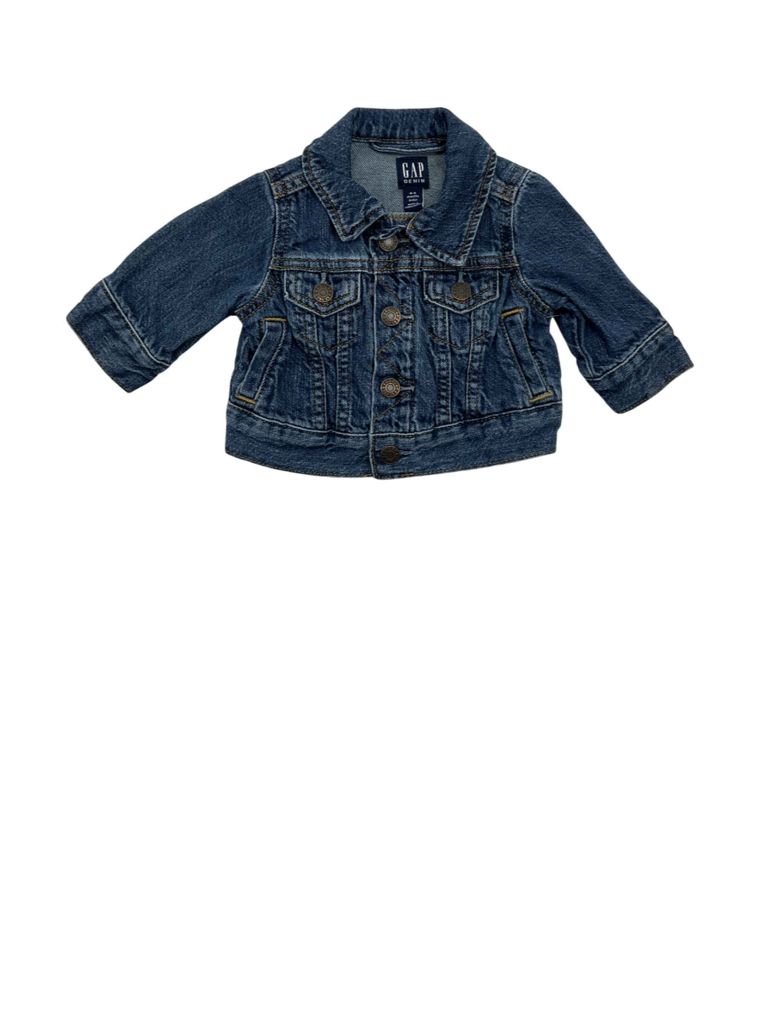 Long-sleeved denim jacket with a collar for a baby boy, size 0-3 months, from the brand GAP.