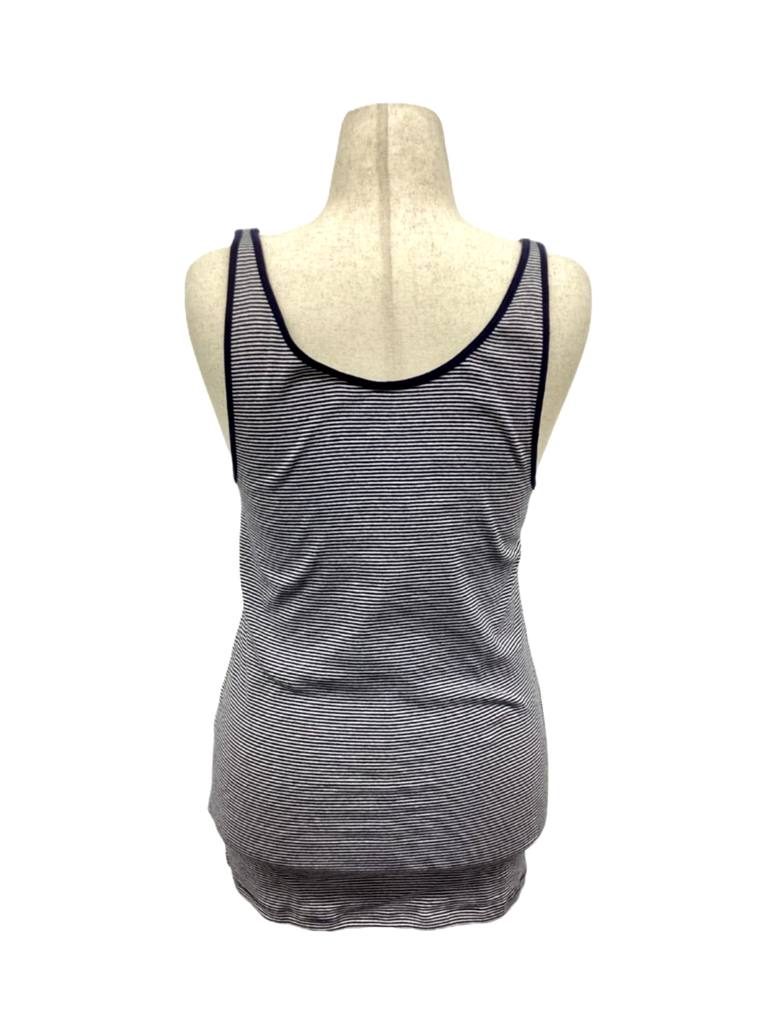 This pre-owned Gap tank top is perfect for adding a touch of classic style to your wardrobe. Featuring a timeless striped pattern in black and white, this tank top is made from a soft cotton blend for a comfortable fit. The scoop neckline and sleeveless design make it ideal for warmer weather, and it's versatile enough to be dressed up or down. A great addition to any collection of women's tops.