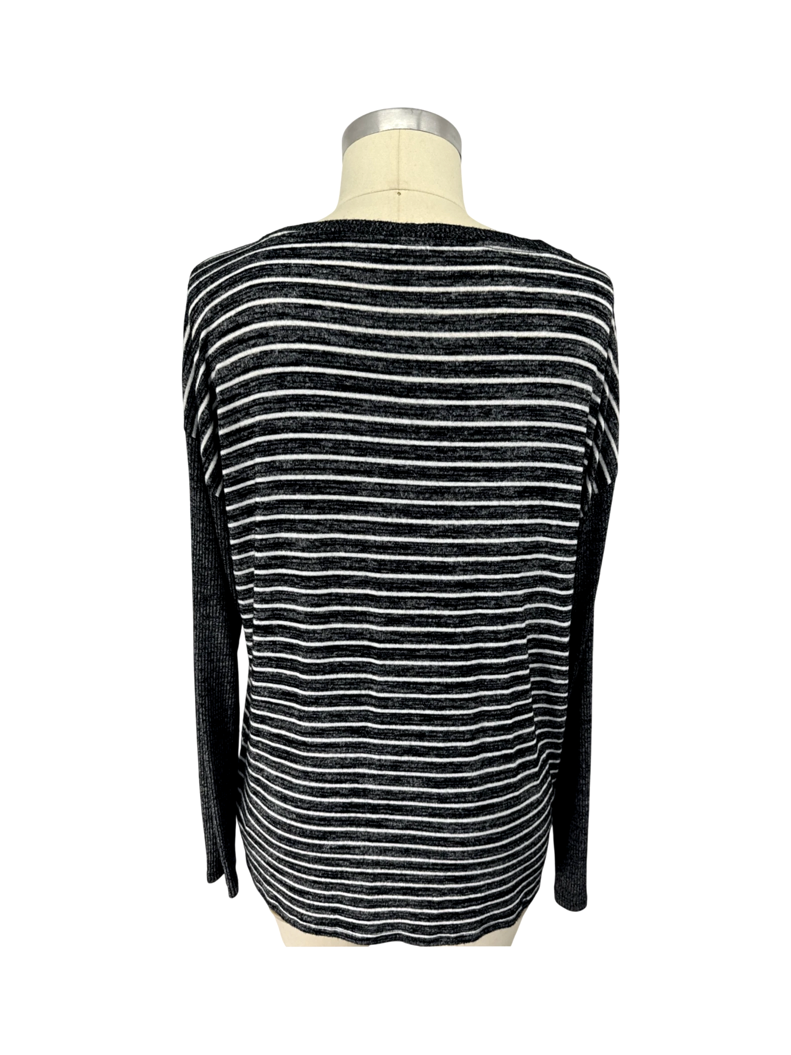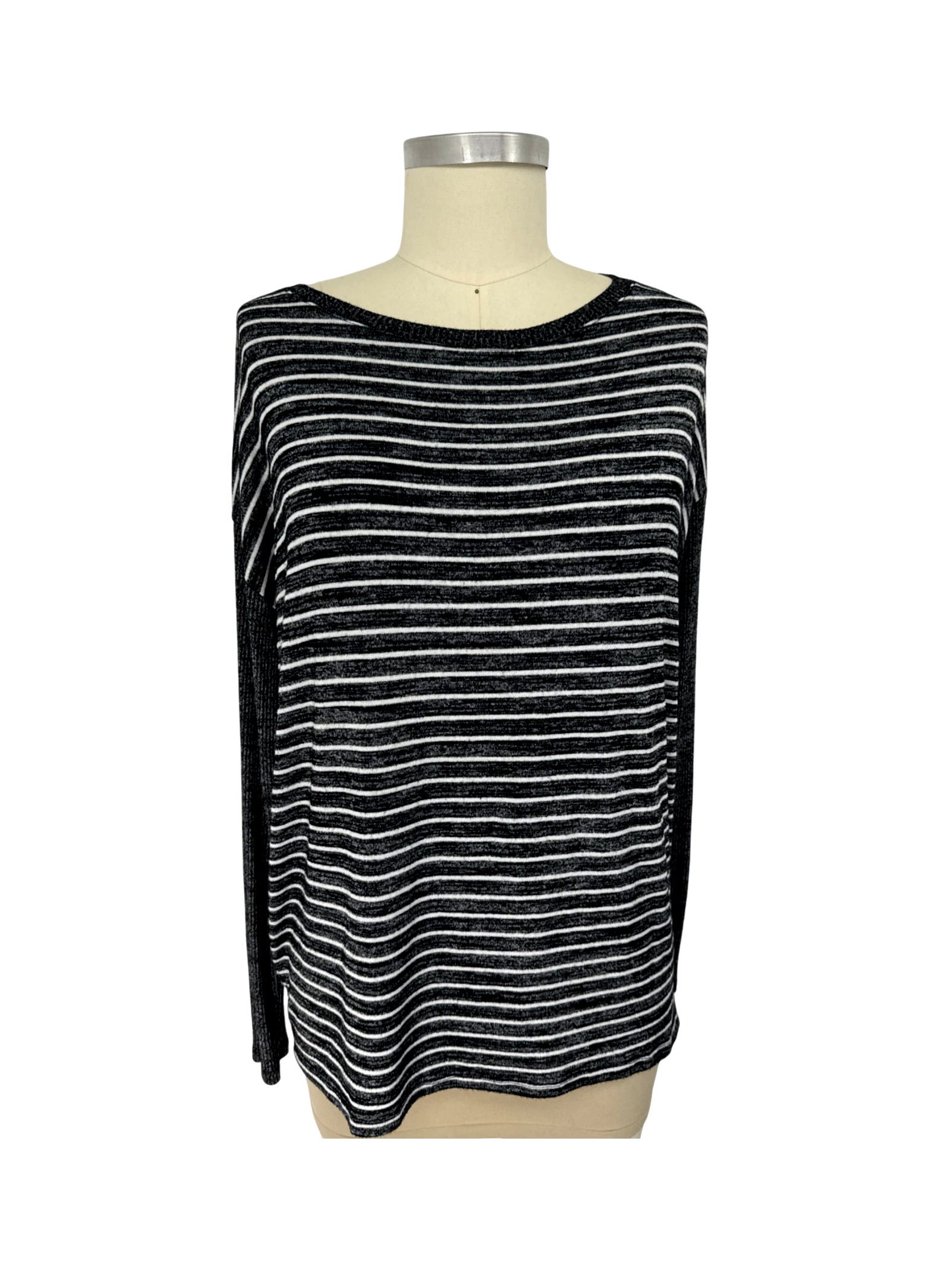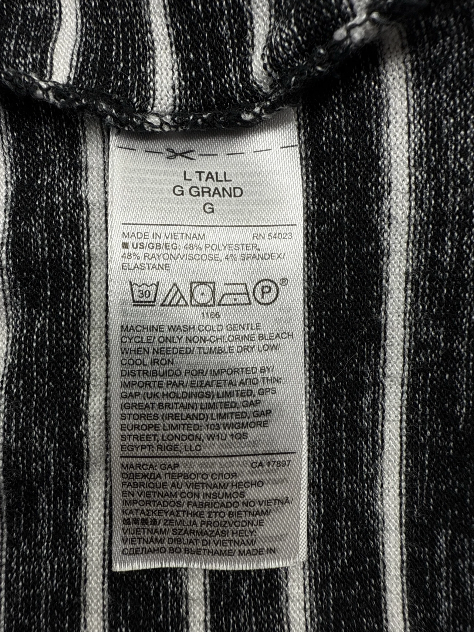 This pre-owned GAP sweater is a stylish and comfortable addition to any wardrobe. Featuring a classic striped pattern in shades of gray and white, this pullover sweater is perfect for cooler seasons. Made with a blend of polyester, rayon, and spandex, it offers a soft feel and a comfortable fit. The round neck and long sleeves make it versatile for both casual and semi-formal occasions. This GAP sweater combines timeless design with everyday wearability.