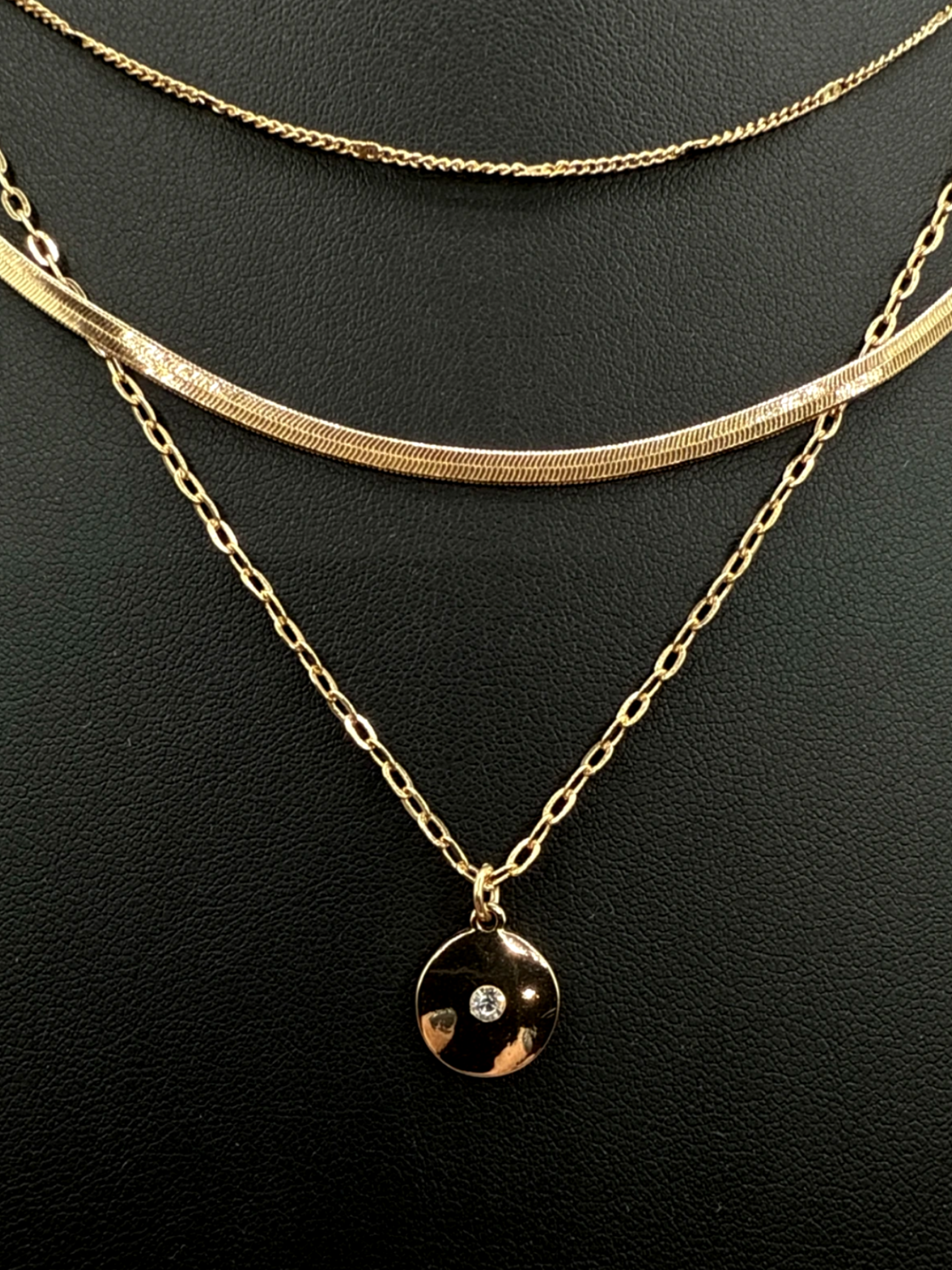 This stunning pre-owned layered necklace from GAP features a delicate gold finish and a stylish design. Perfect for women, it adds a touch of elegance to any outfit. The necklace includes a chain with a pendant, showcasing timeless charm. Ideal for everyday wear or special occasions, this beautiful piece is a must-have addition to any jewelry collection. Pre-owned, but in excellent condition, it represents a fantastic value.